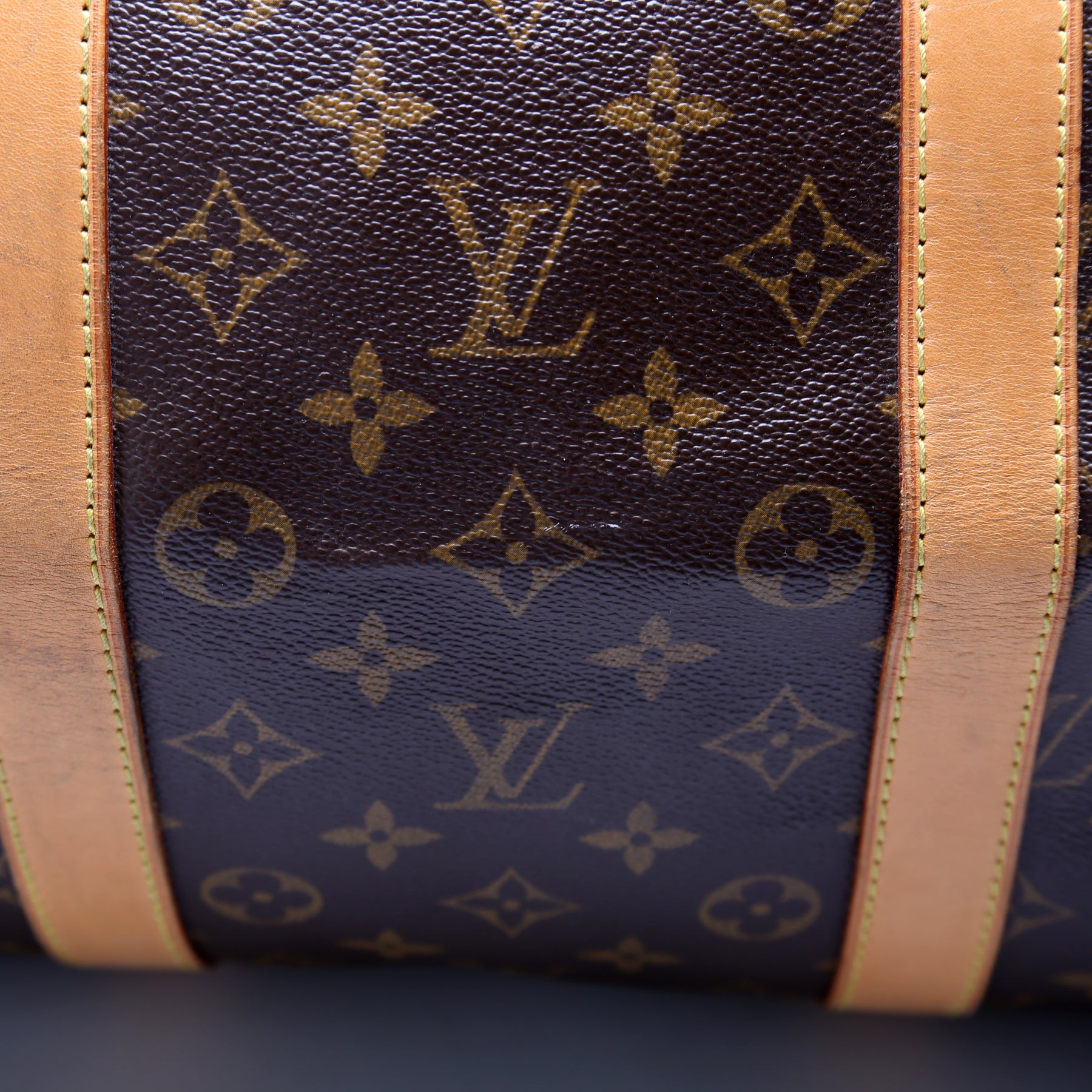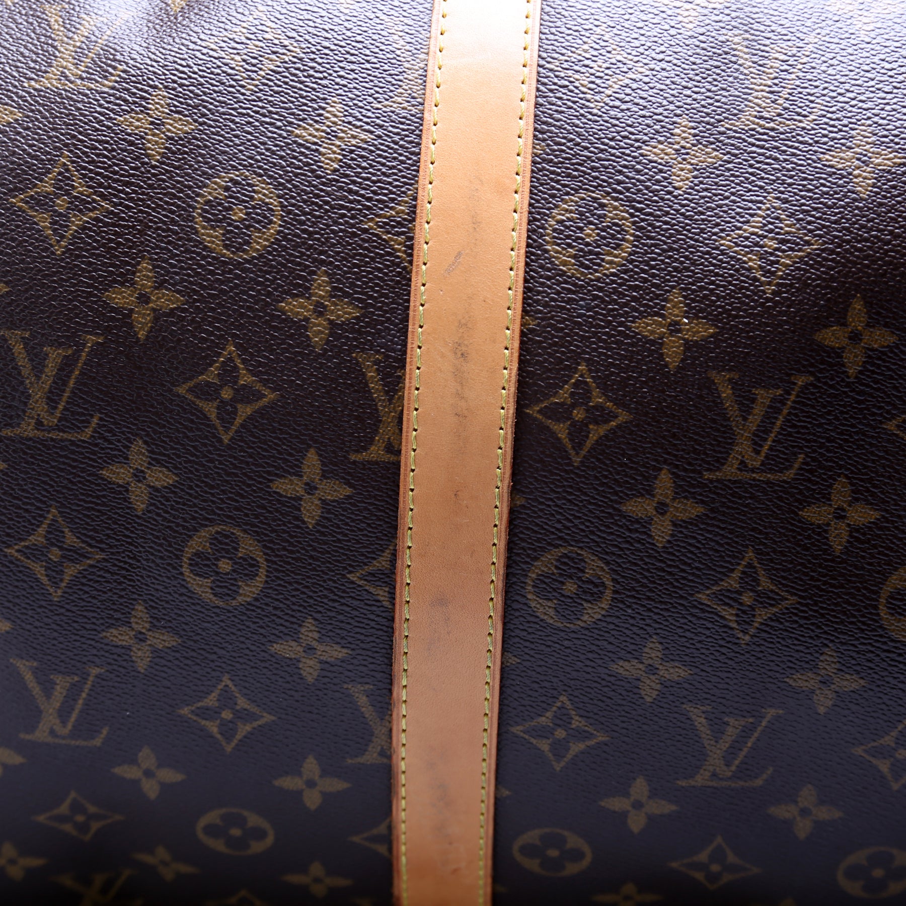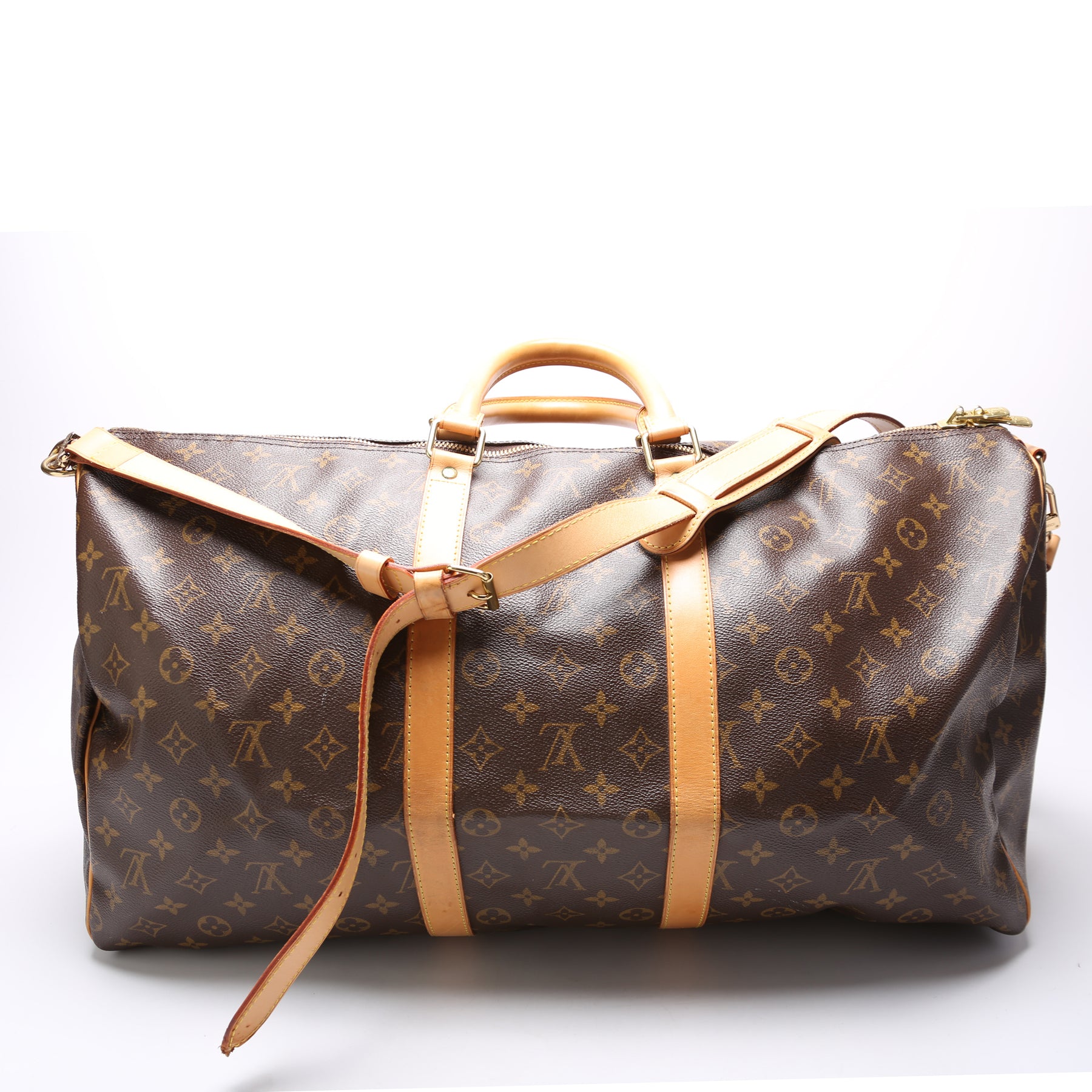 This pre-owned Louis Vuitton Keepall 55 Bandouliere without Strap is guaranteed 100% authentic. The exterior is in the classic Louis Vuitton Monogram coated canvas.