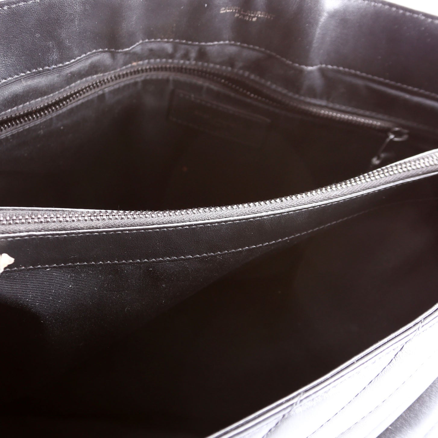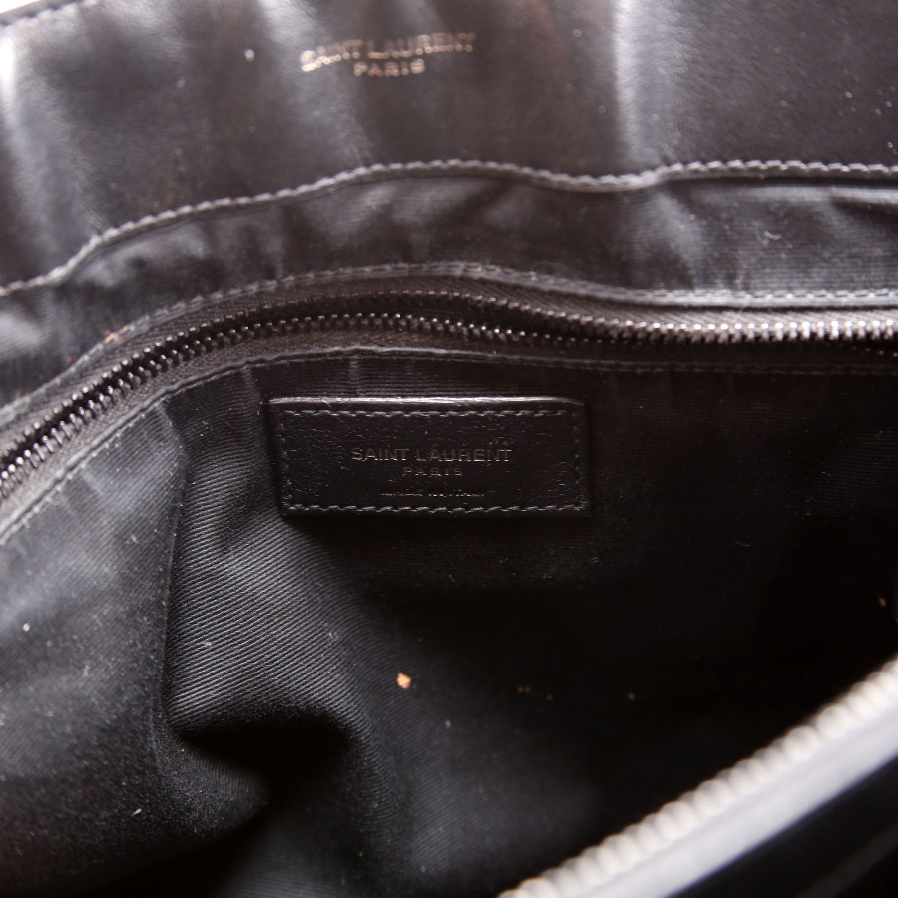 Interior: The interior features wear throughout and features two zip closure pockets.