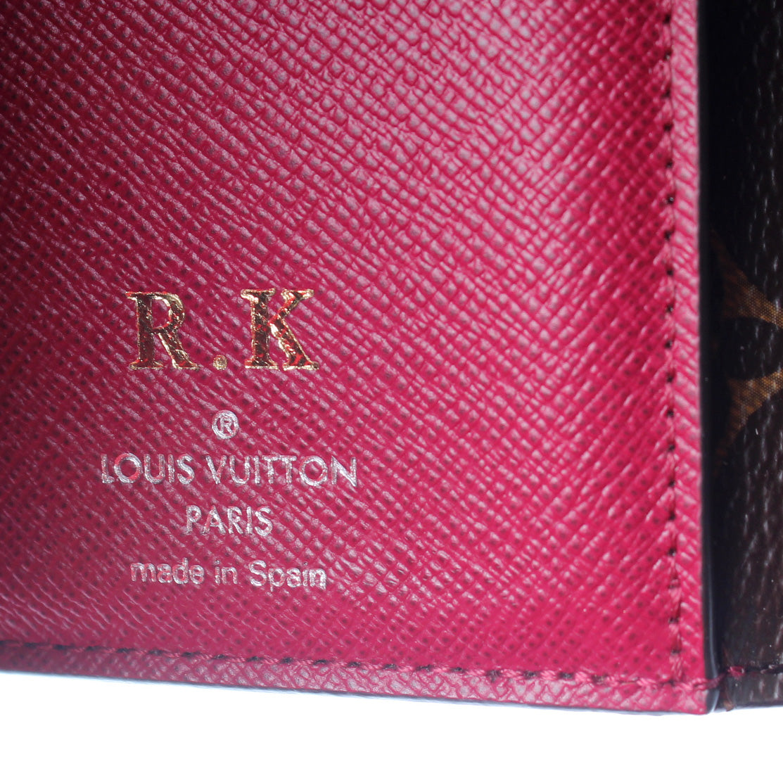 Interior: The interior is clean and free of rips or tears. The interior features eight card slots, one snap closure bill slot, and three open slots. The interior features the monogrammed initials "R.K" as pictured.