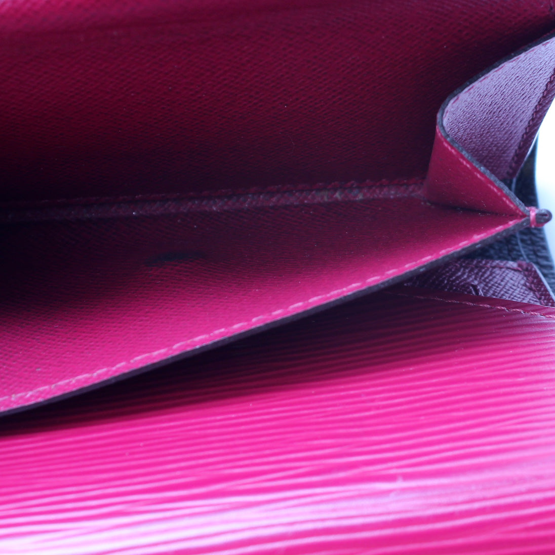 This pre-owned Louis Vuitton Mary Lou Long is guaranteed 100% authentic. The exterior is in the classic Louis Vuitton Monogram Epi coated canvas.