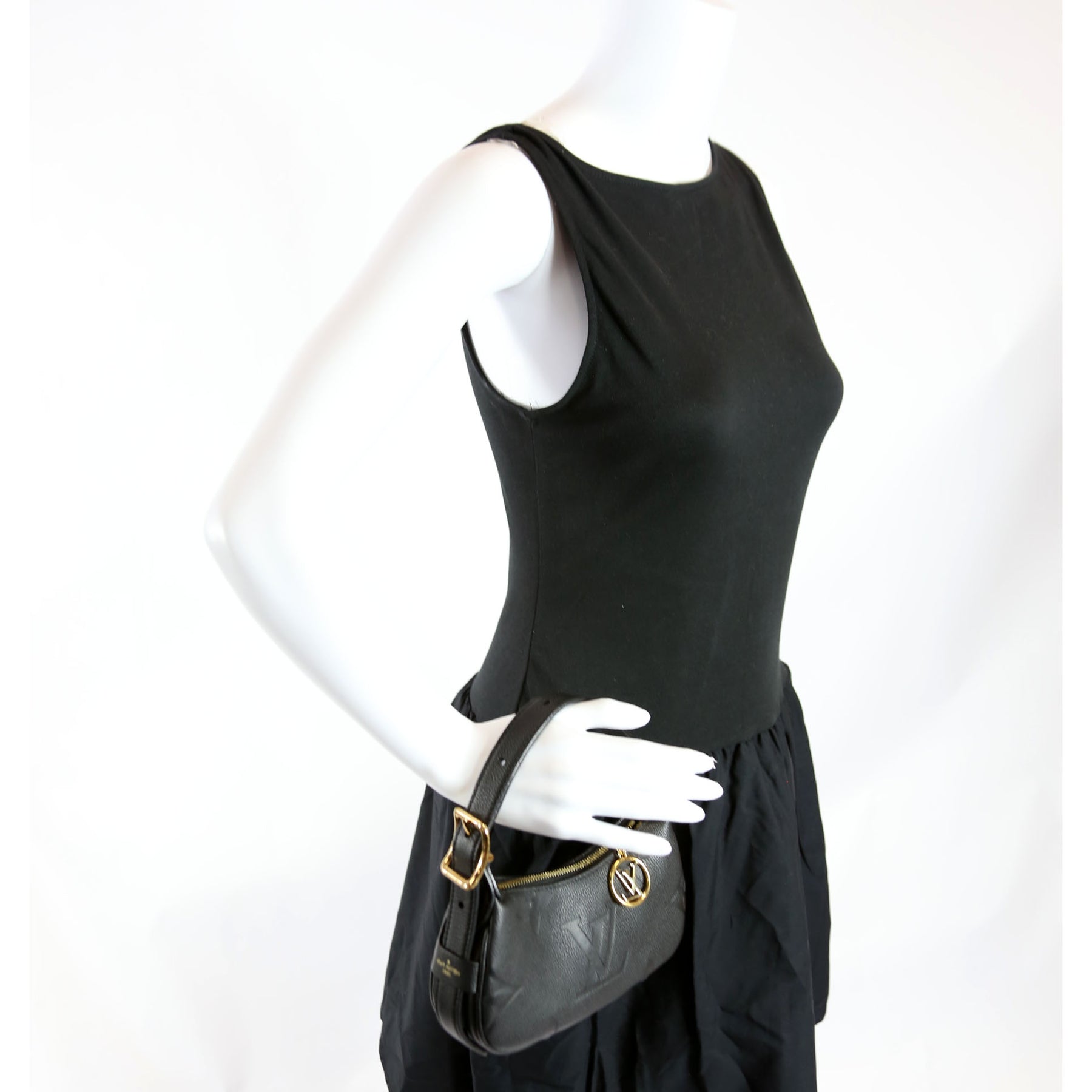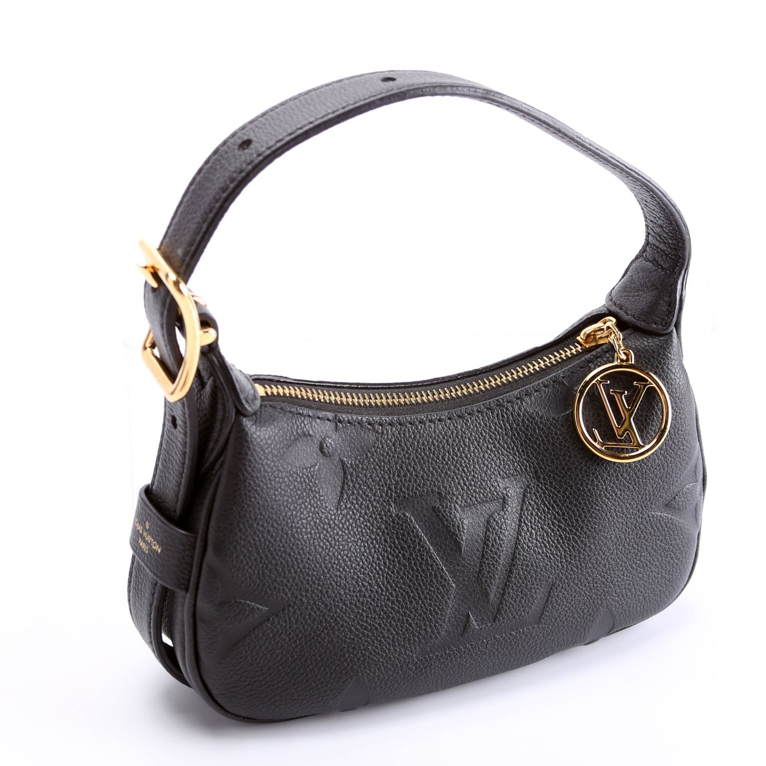 This pre-owned Louis Vuitton Mini Moon is guaranteed 100% authentic. The exterior is in the classic Louis Vuitton Empreinte leather.
