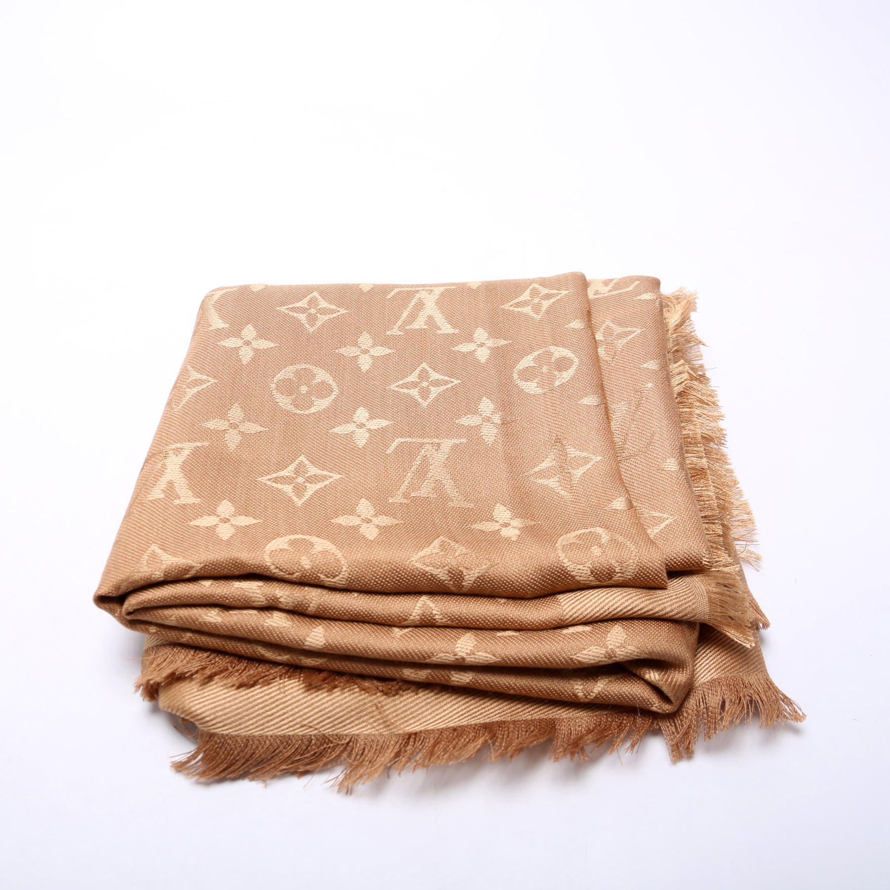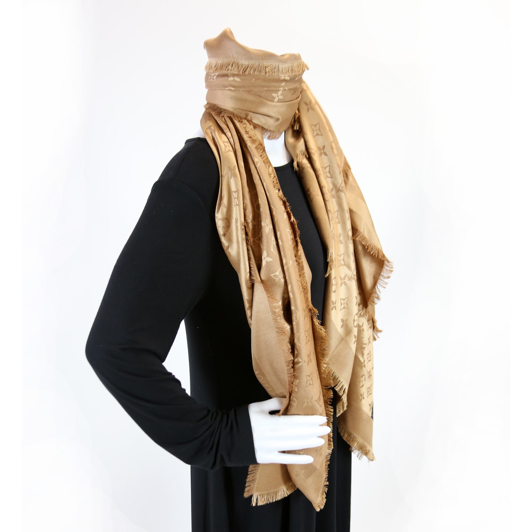 This pre-owned Louis Vuitton Monogram Shawl Silk/Wool Scarf is guaranteed 100% authentic.