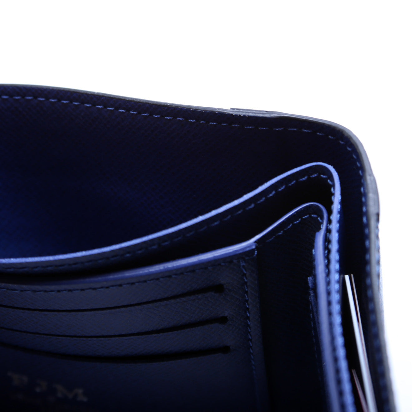 Interior: The interior shows wear throughout. The interior features two bills slots and seven card slots. Initials FMJ stamped on the inside.