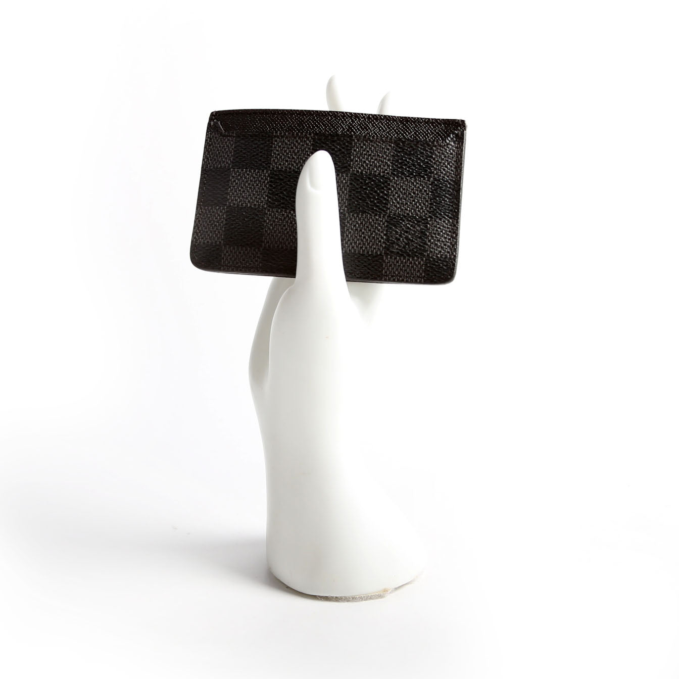 This pre-owned Louis Vuitton Neo Porte-Cartes Card Holder is guaranteed 100% authentic. The exterior is in the classic Louis Vuitton Damier Graphite Coated Canvas.