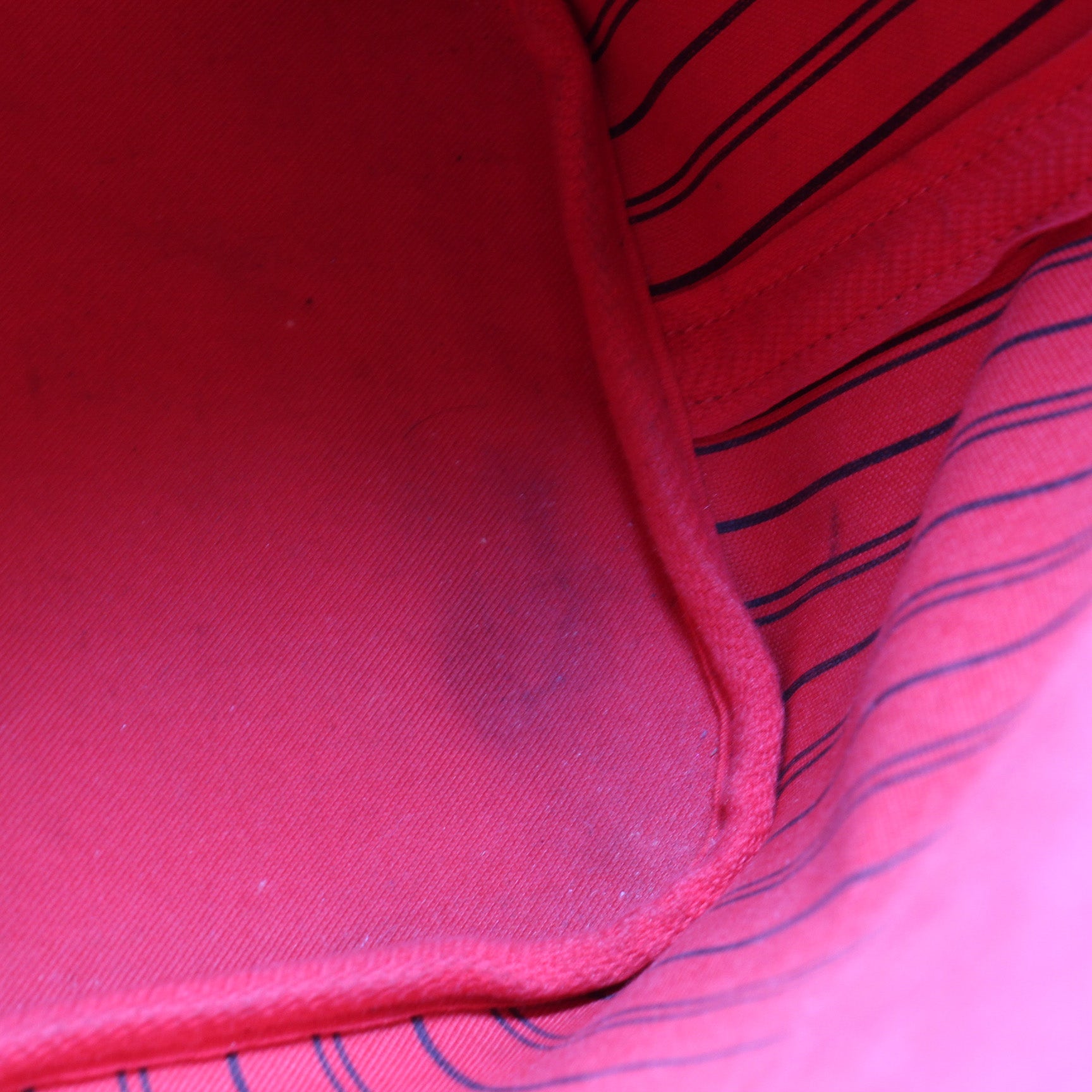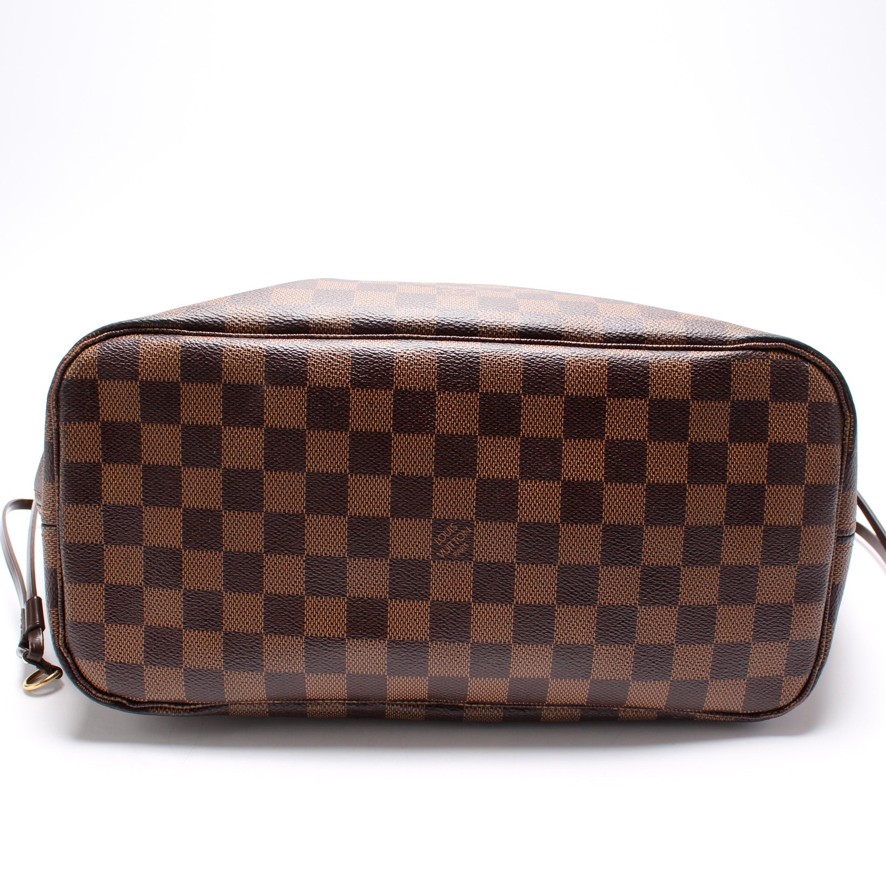 This pre-owned Louis Vuitton Neverfull MM is guaranteed 100% authentic. The exterior is in the classic Louis Vuitton Damier Ebene coated canvas.