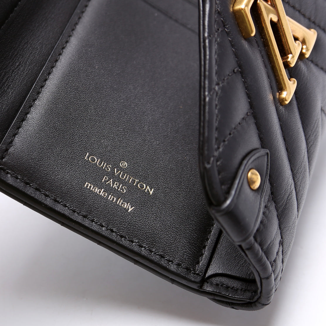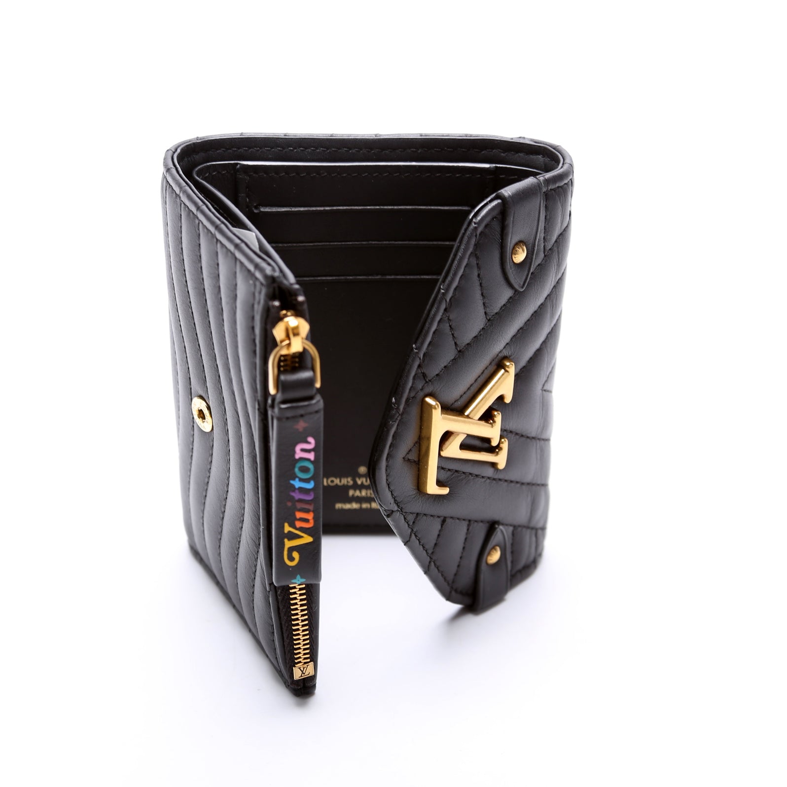 This pre-owned Louis Vuitton New Wave Compact Wallet is guaranteed 100% authentic.