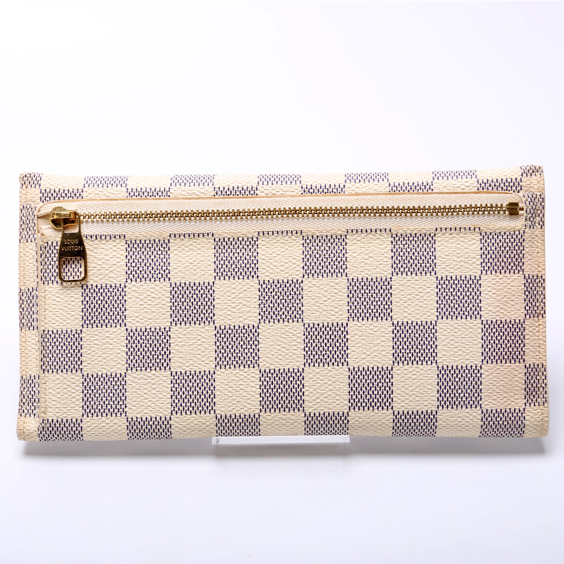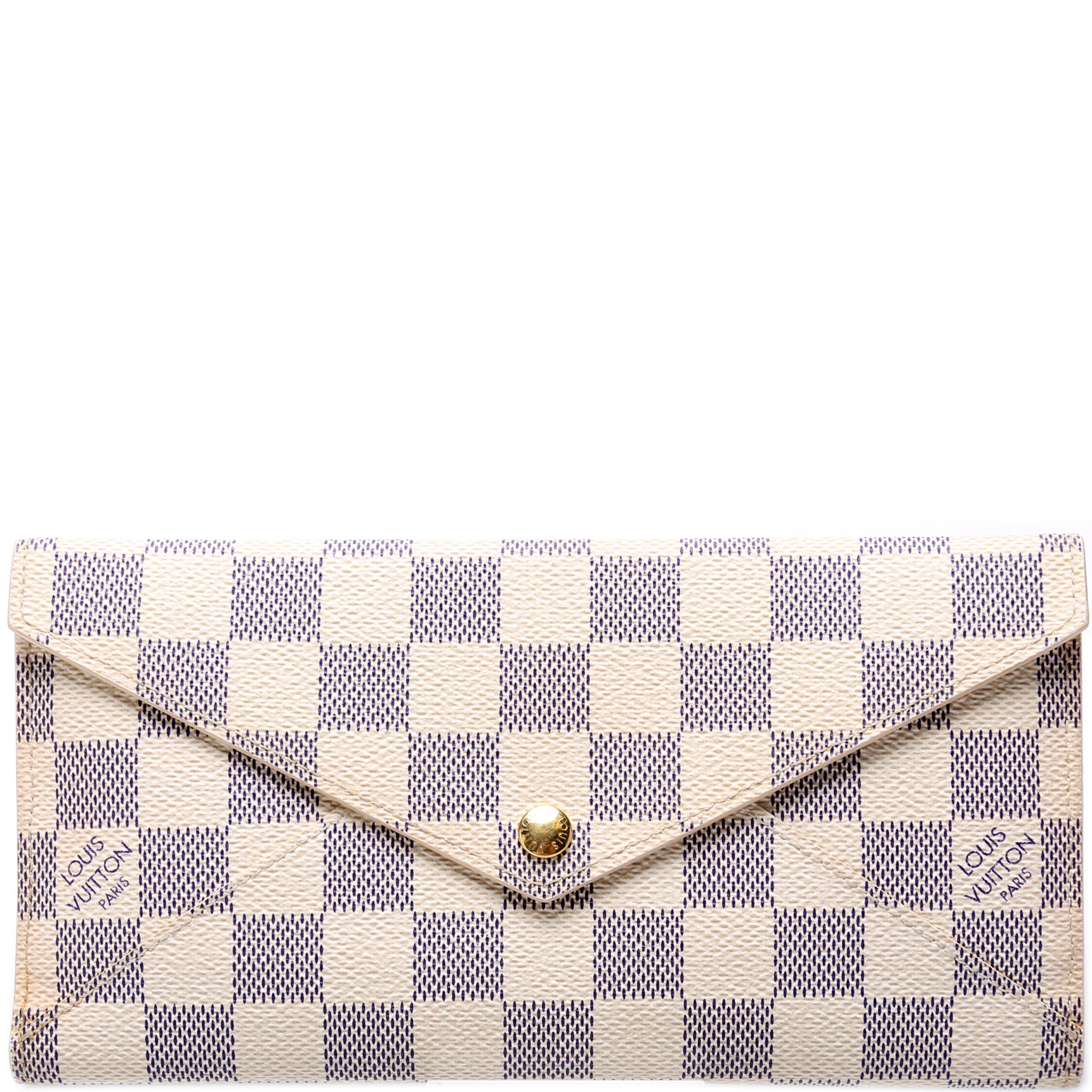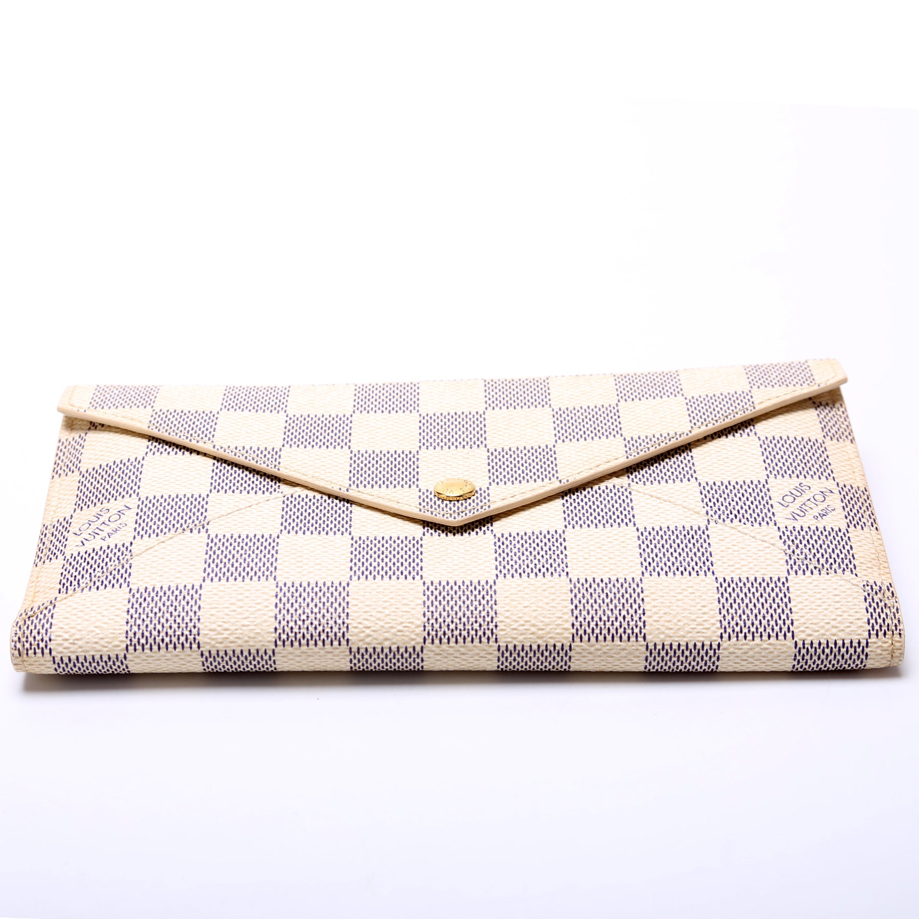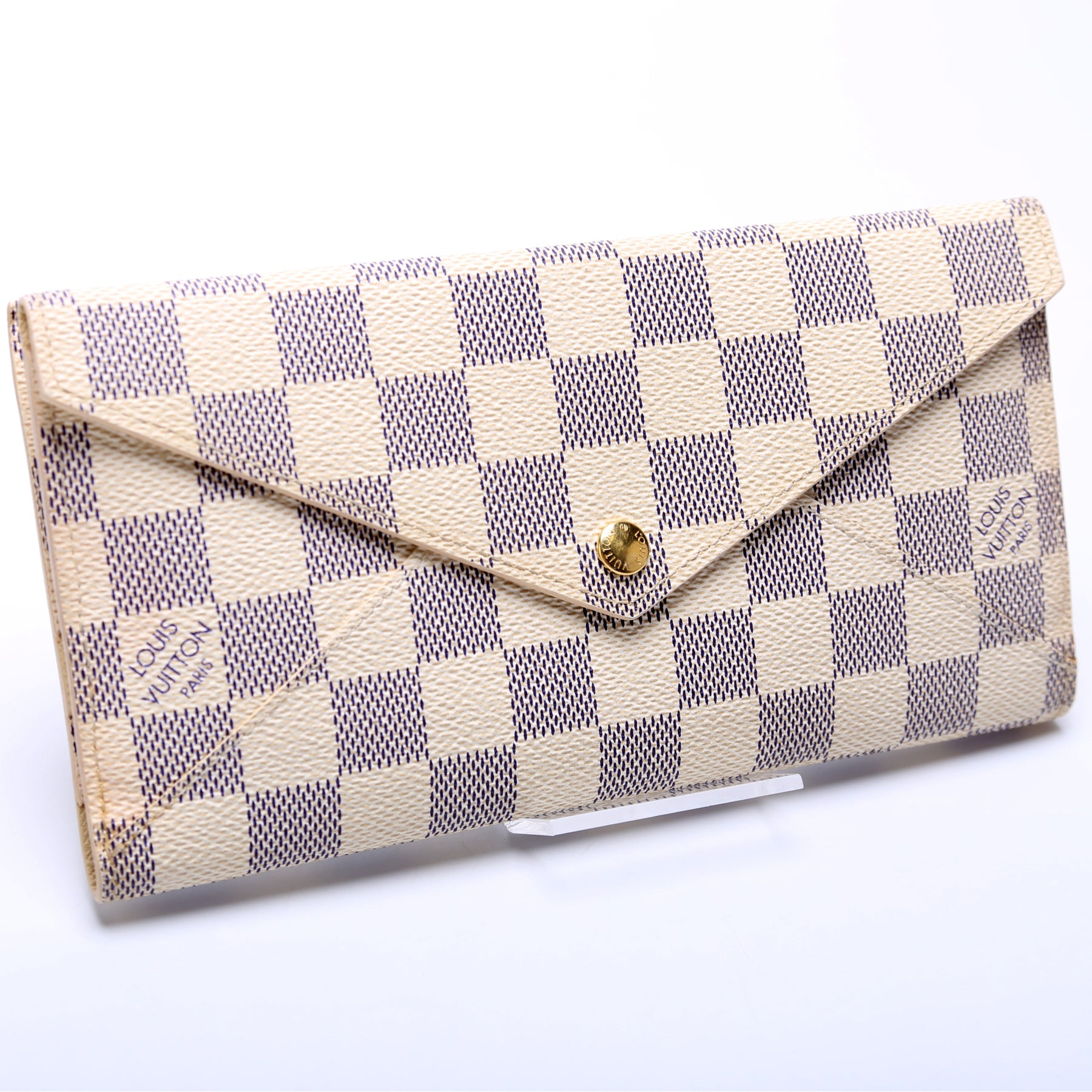 This pre-owned Louis Vuitton Origami Long Wallet is guaranteed 100% authentic. The exterior is in the classic Louis Vuitton Damier Azur coated canvas.