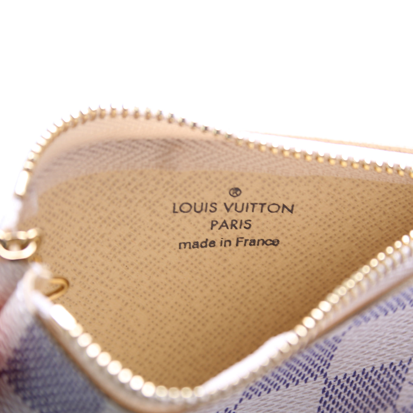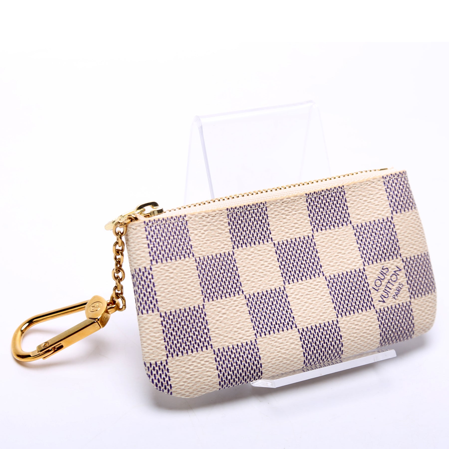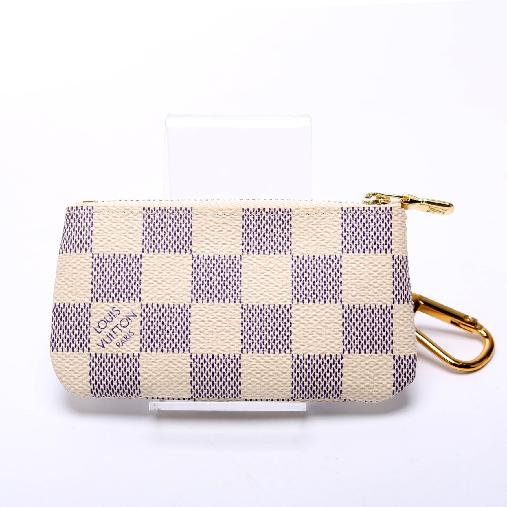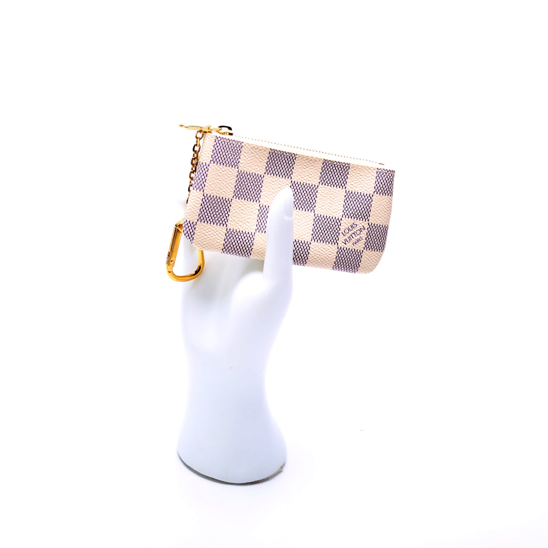 This pre-owned Louis Vuitton Pochette Cles is guaranteed 100% authentic. The exterior is in the classic Louis Vuitton Damier Azur coated canvas.