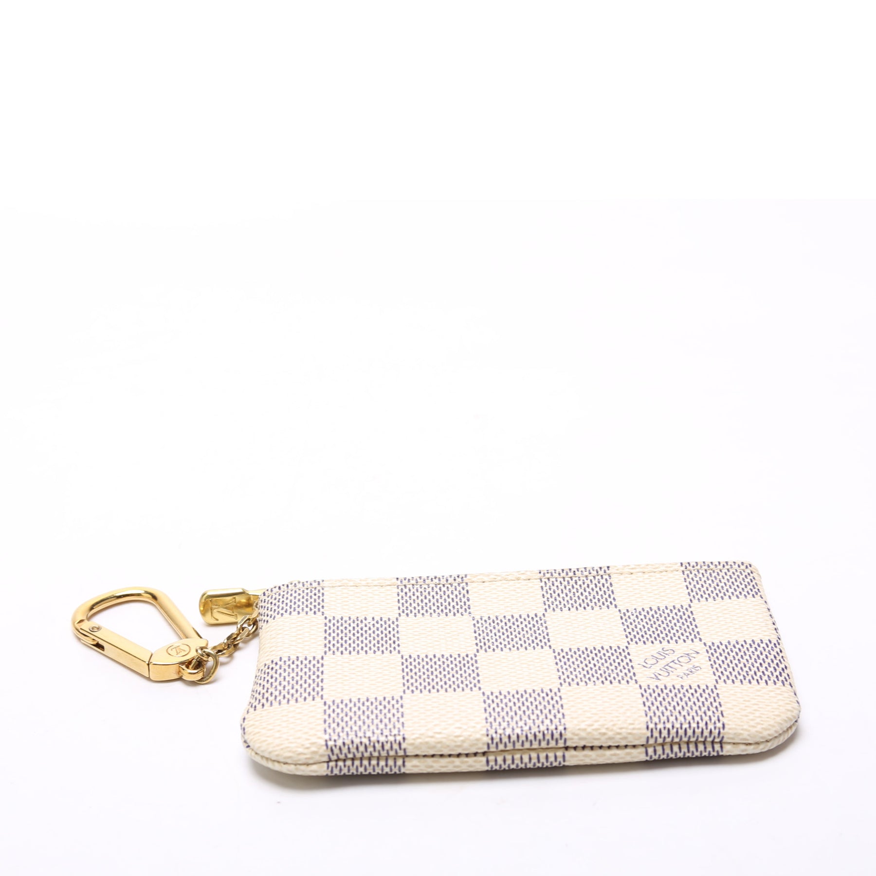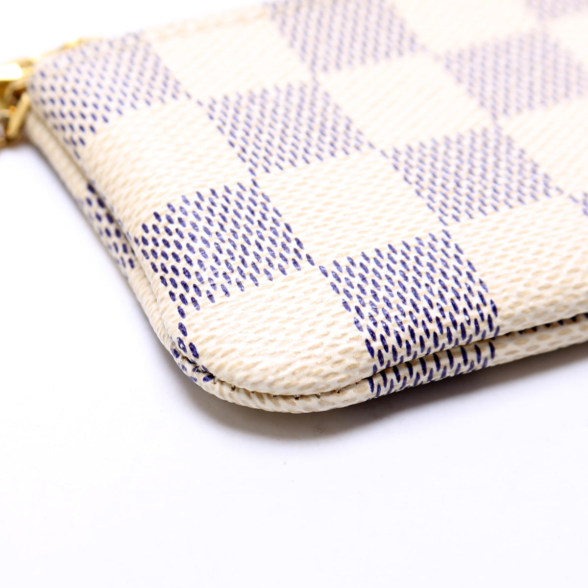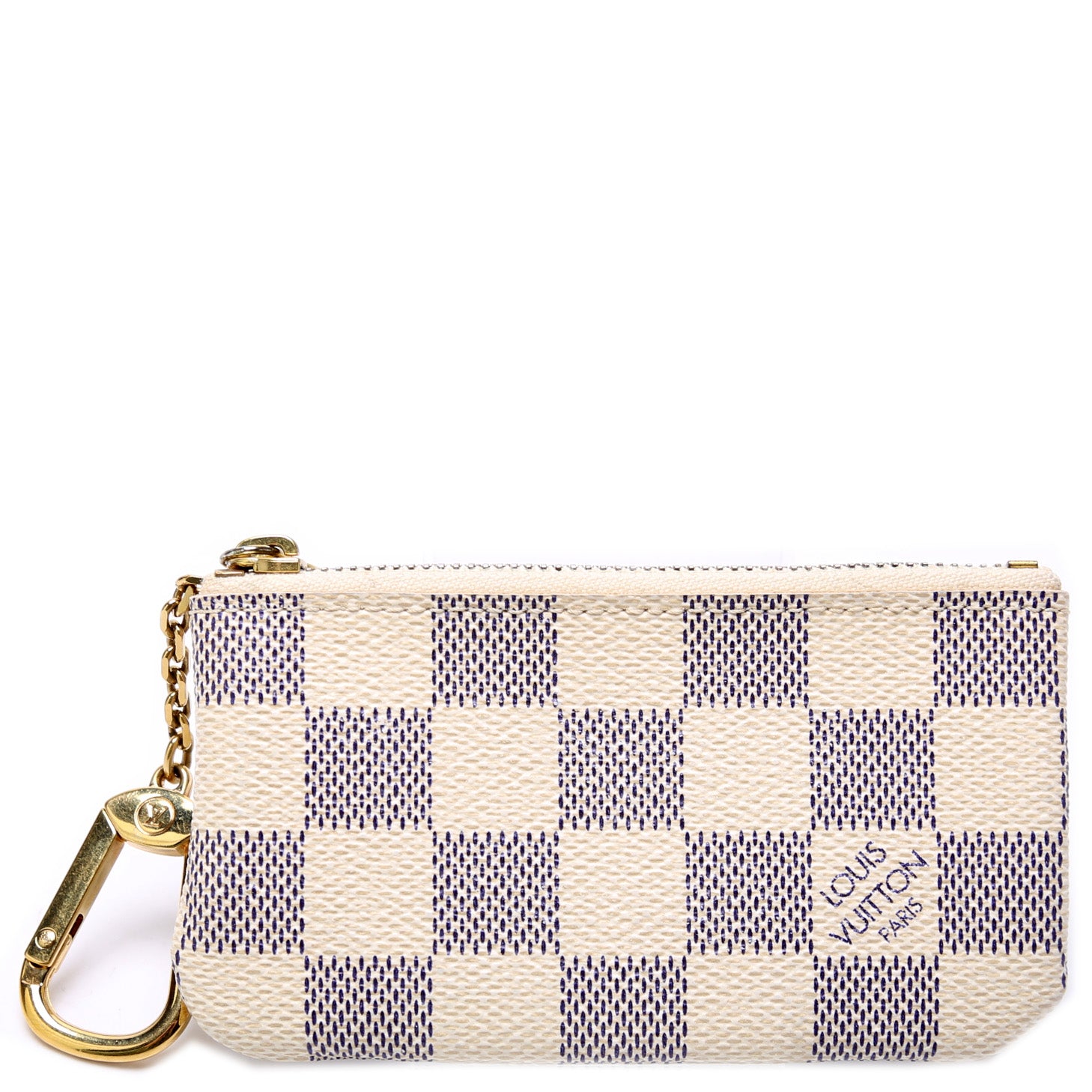 This pre-owned Louis Vuitton Pochette Cles is guaranteed 100% authentic. The exterior is in the classic Louis Vuitton Damier Azur coated canvas.