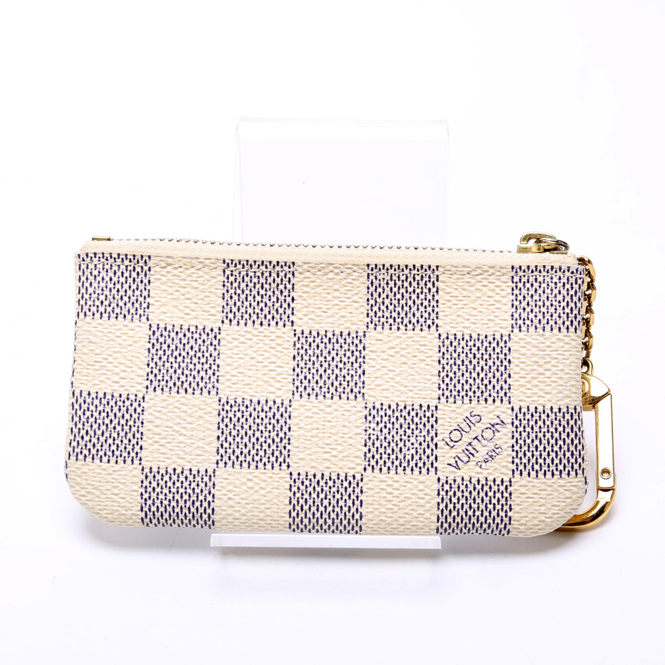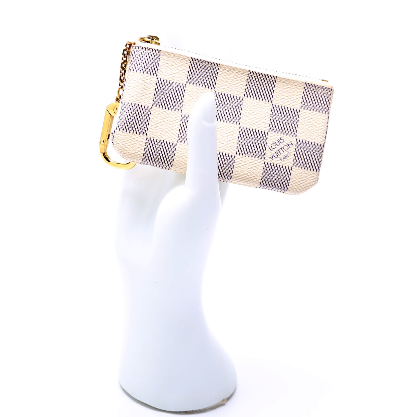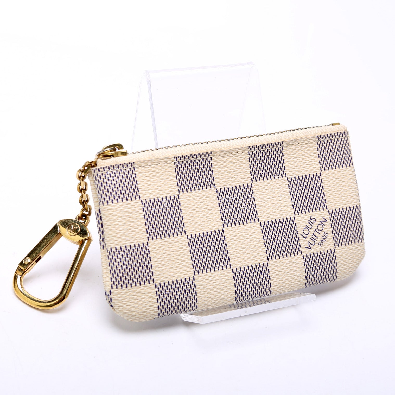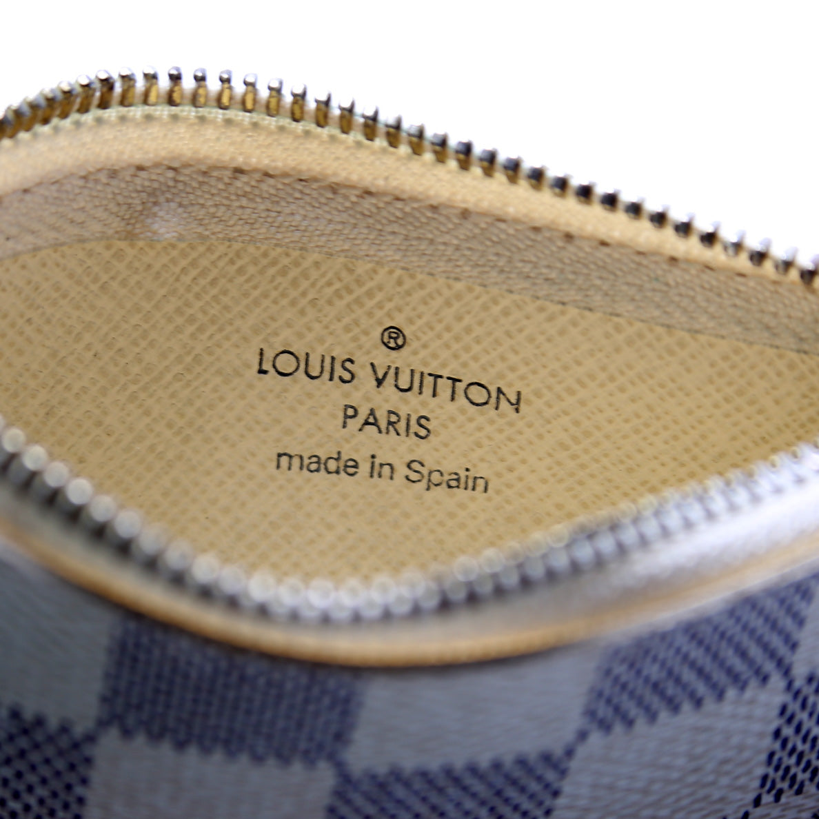 This pre-owned Louis Vuitton Pochette Cles is guaranteed 100% authentic. The exterior is in the classic Louis Vuitton Damier Azur coated canvas.