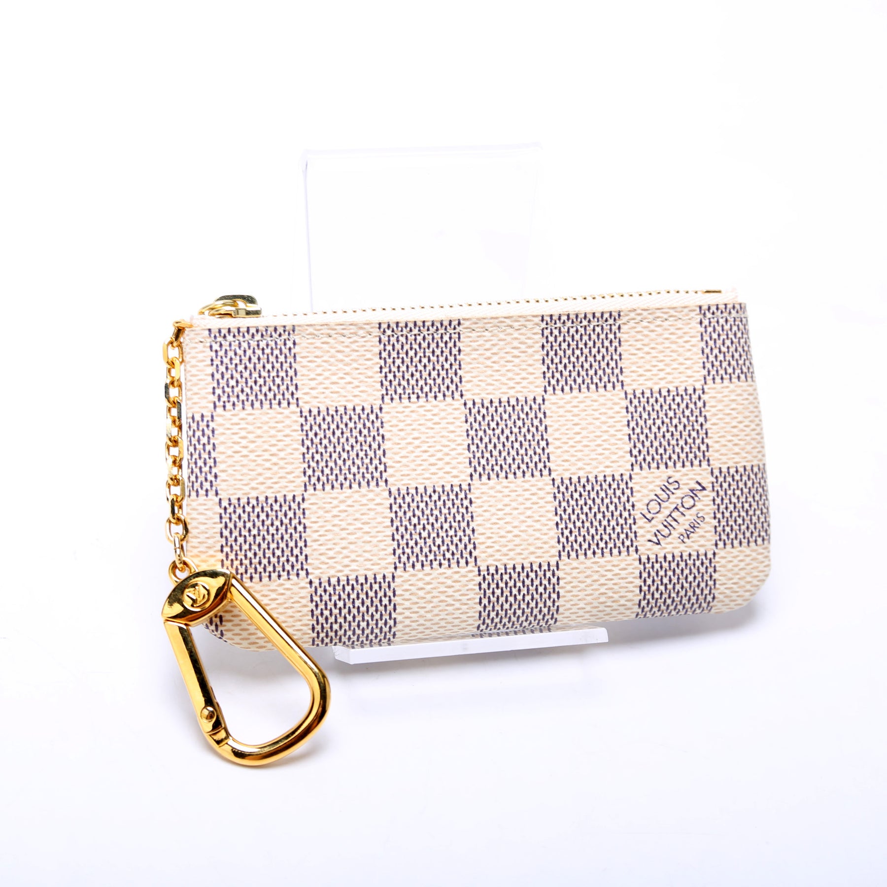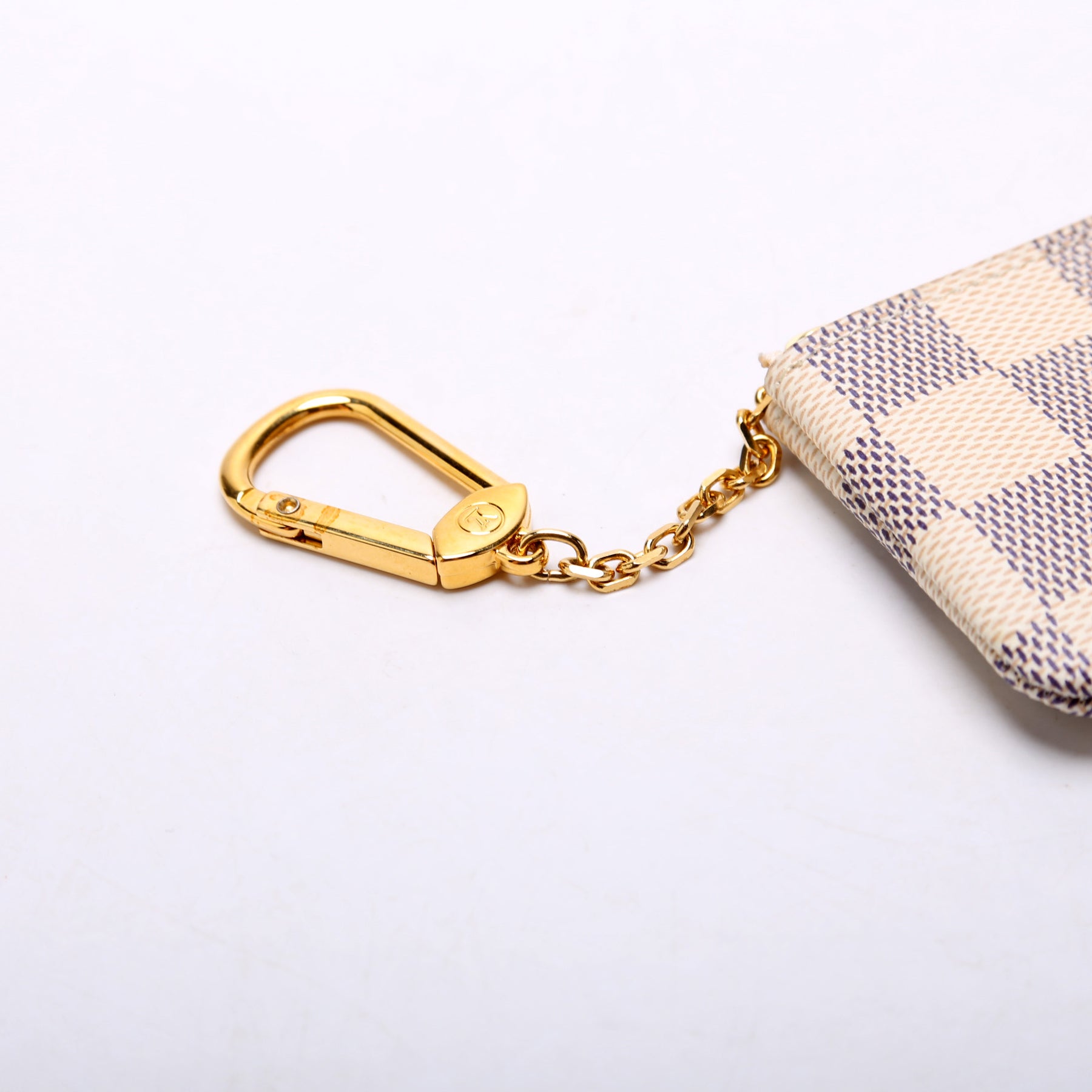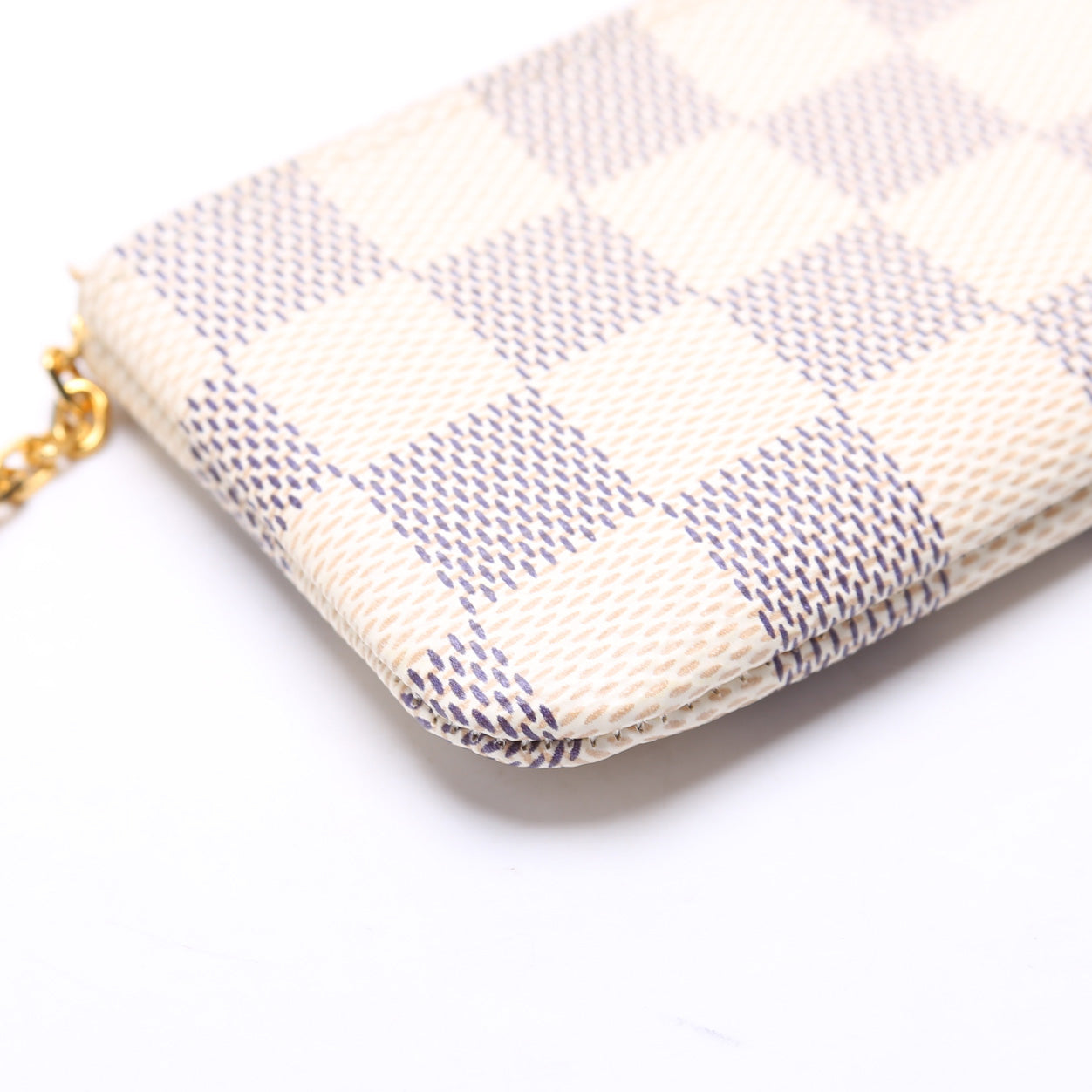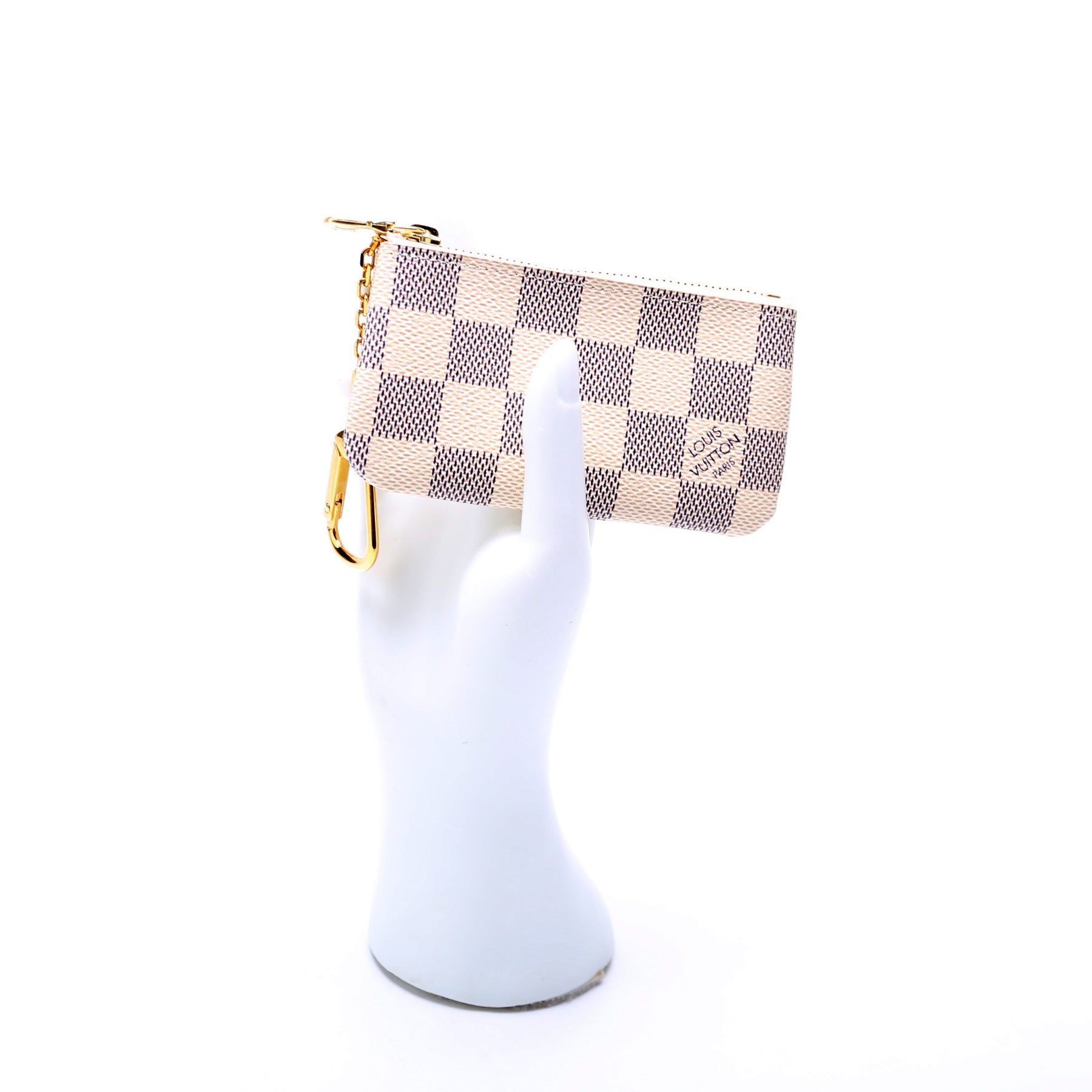 This pre-owned Louis Vuitton Pochette Cles is guaranteed 100% authentic. The exterior is in the classic Louis Vuitton Damier Azur coated canvas.