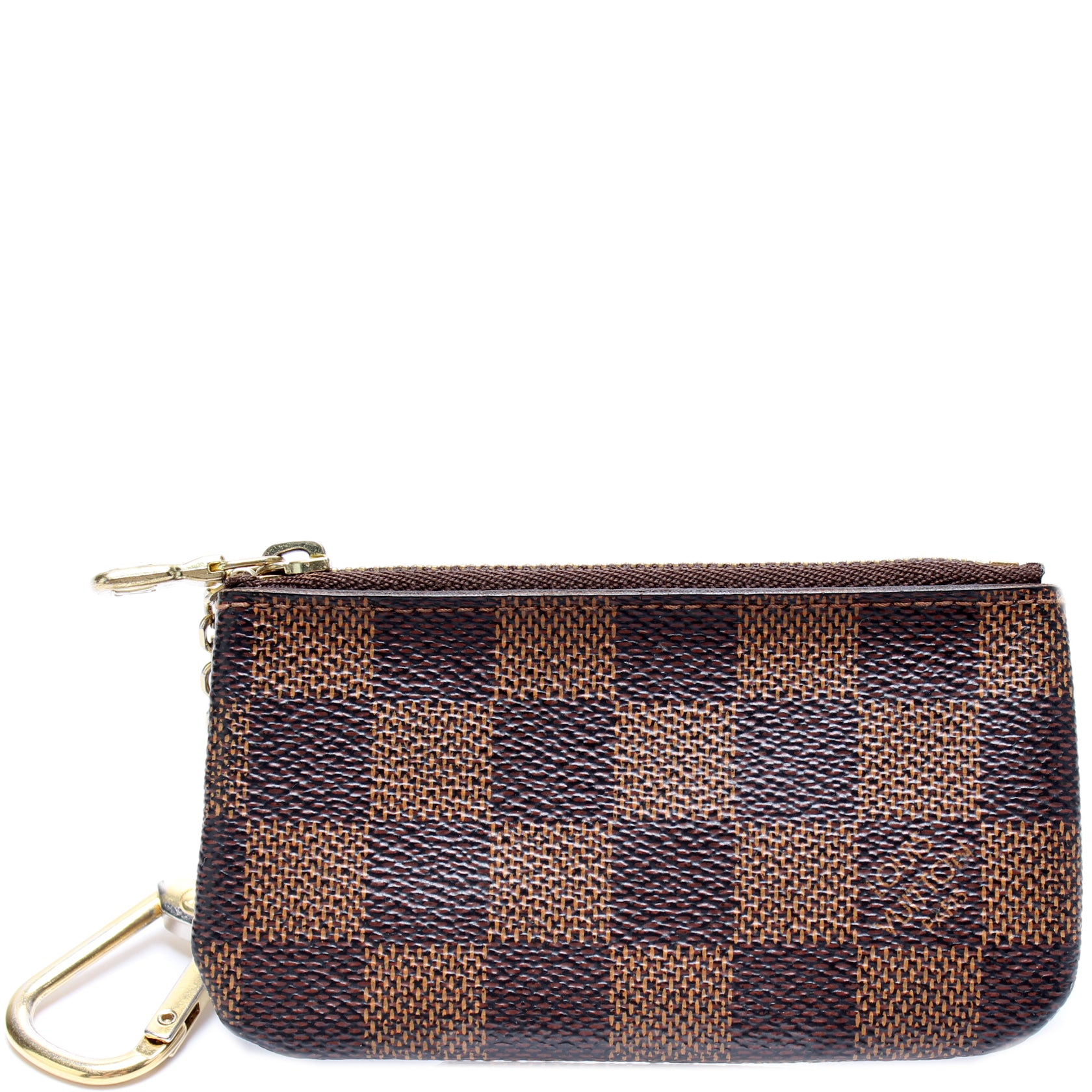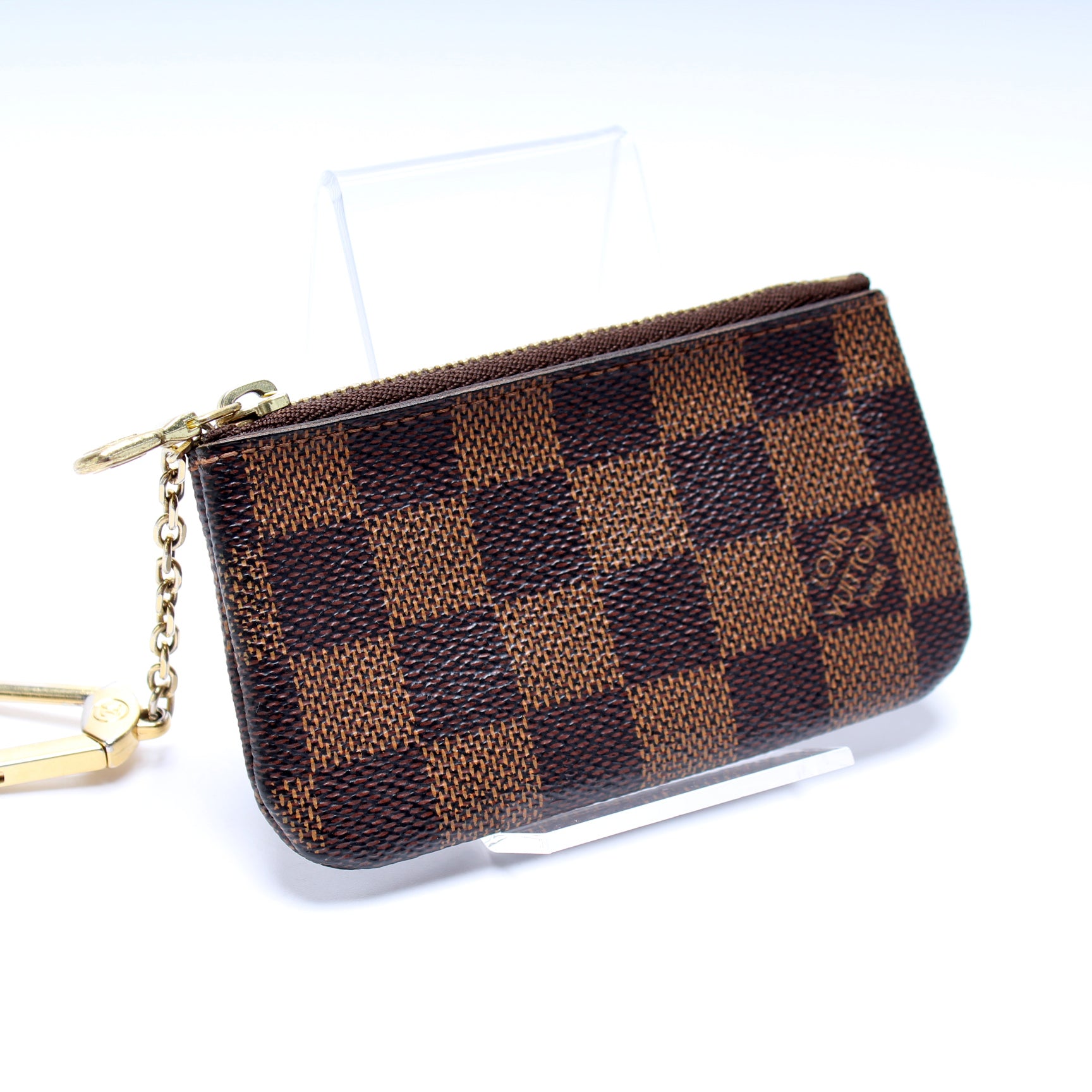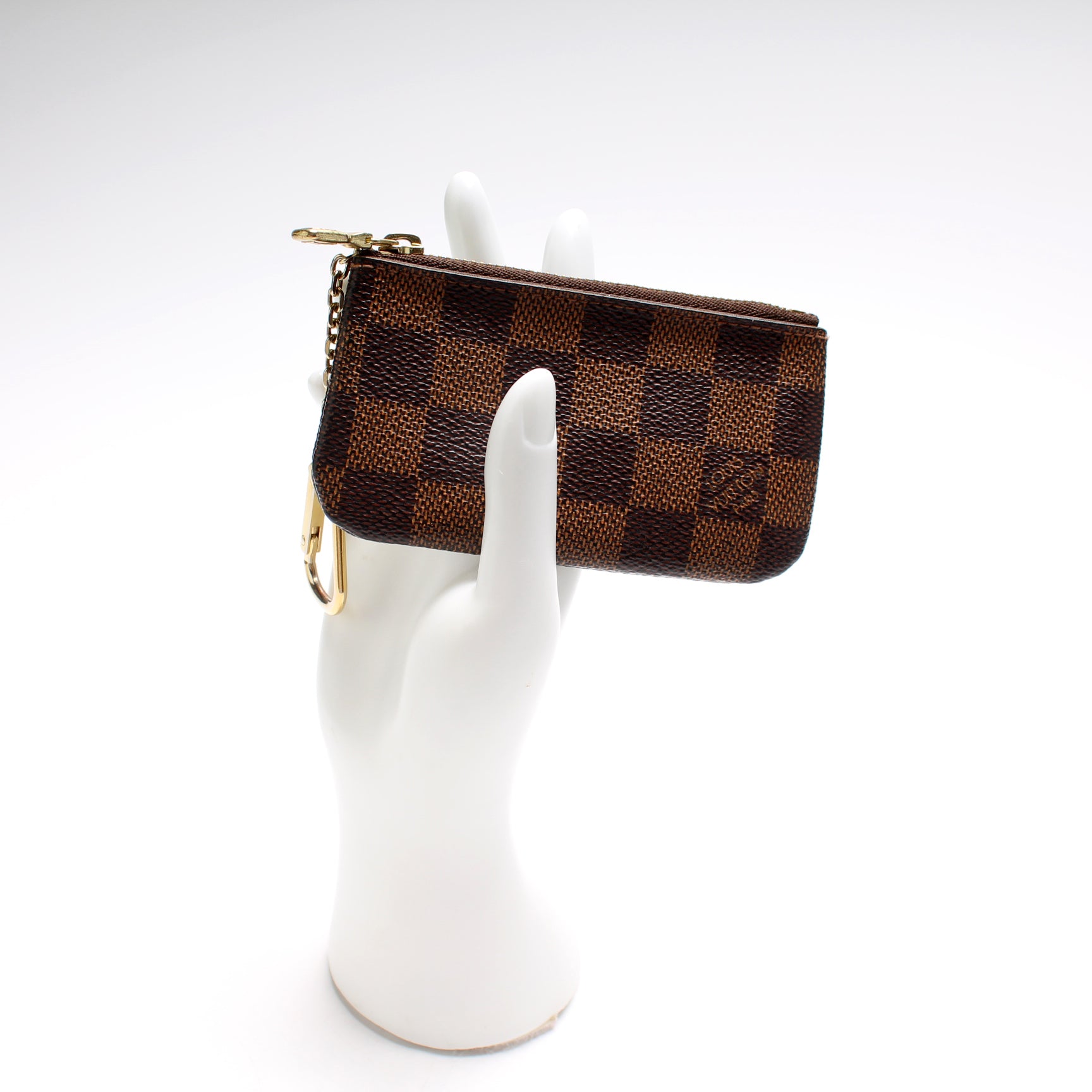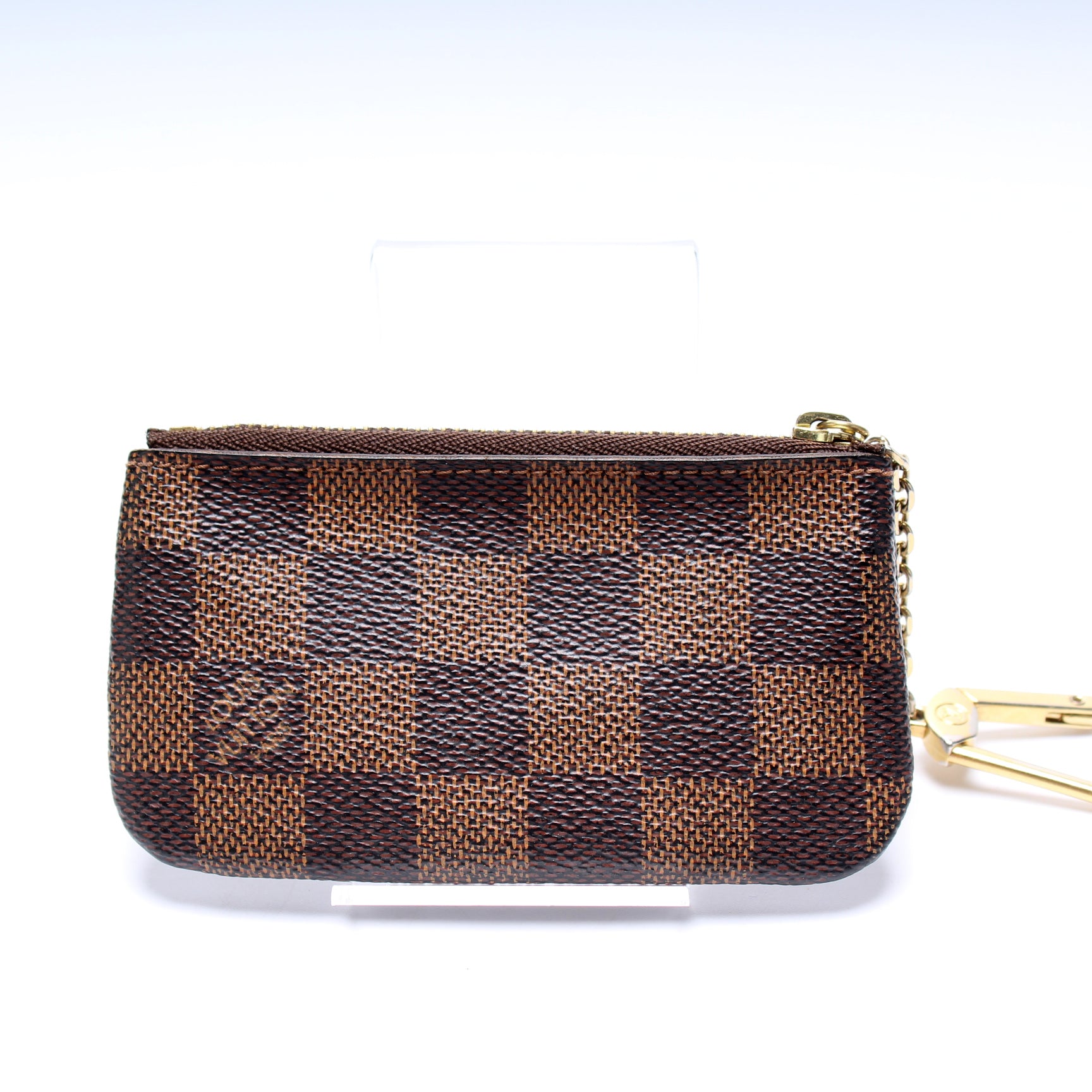 This pre-owned Louis Vuitton Pochette Cles is guaranteed 100% authentic. The exterior is in the classic Louis Vuitton Damier Ebene coated canvas.