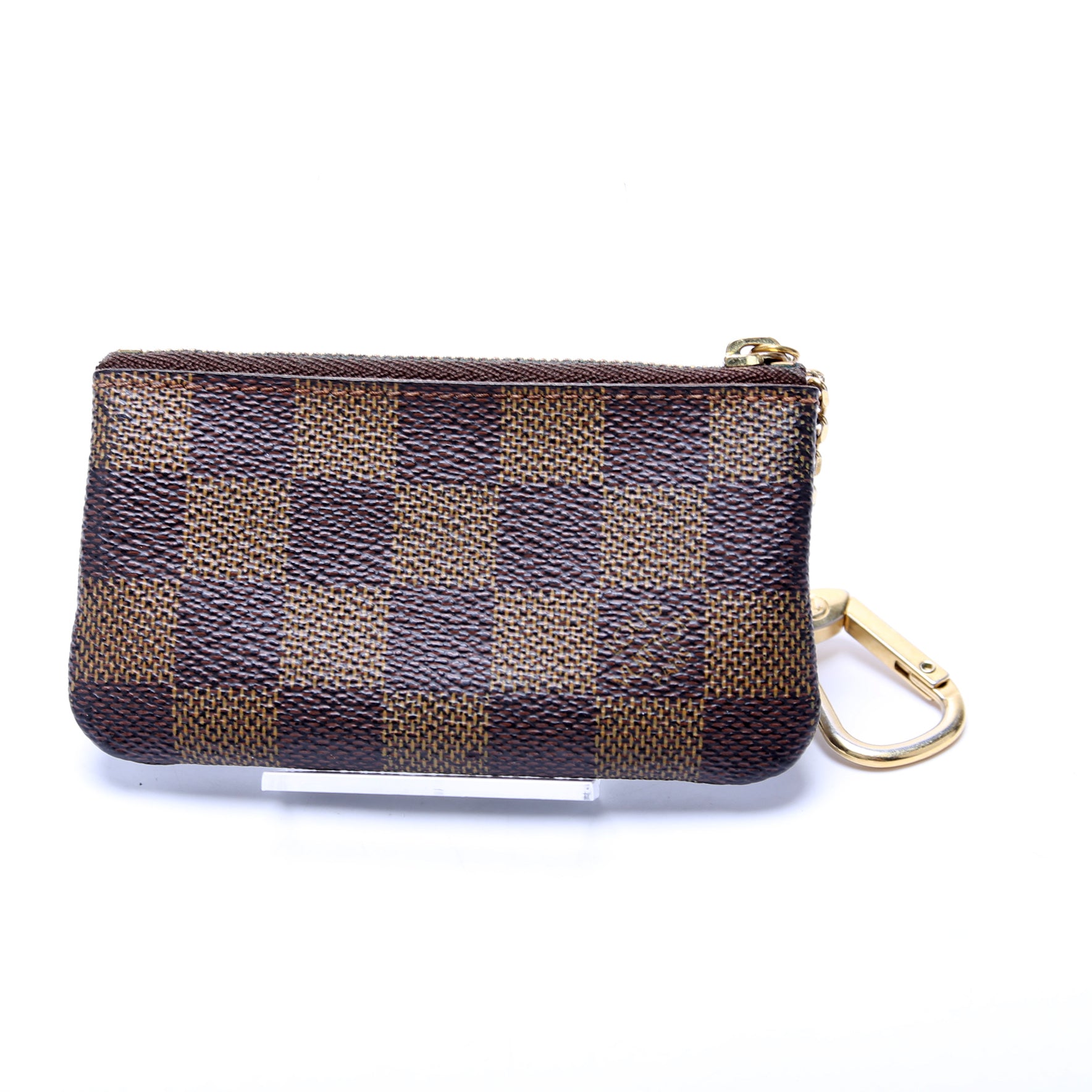 This pre-owned Louis Vuitton Pochette Cles is guaranteed 100% authentic. The exterior is in the classic Louis Vuitton Damier Ebene coated canvas.
