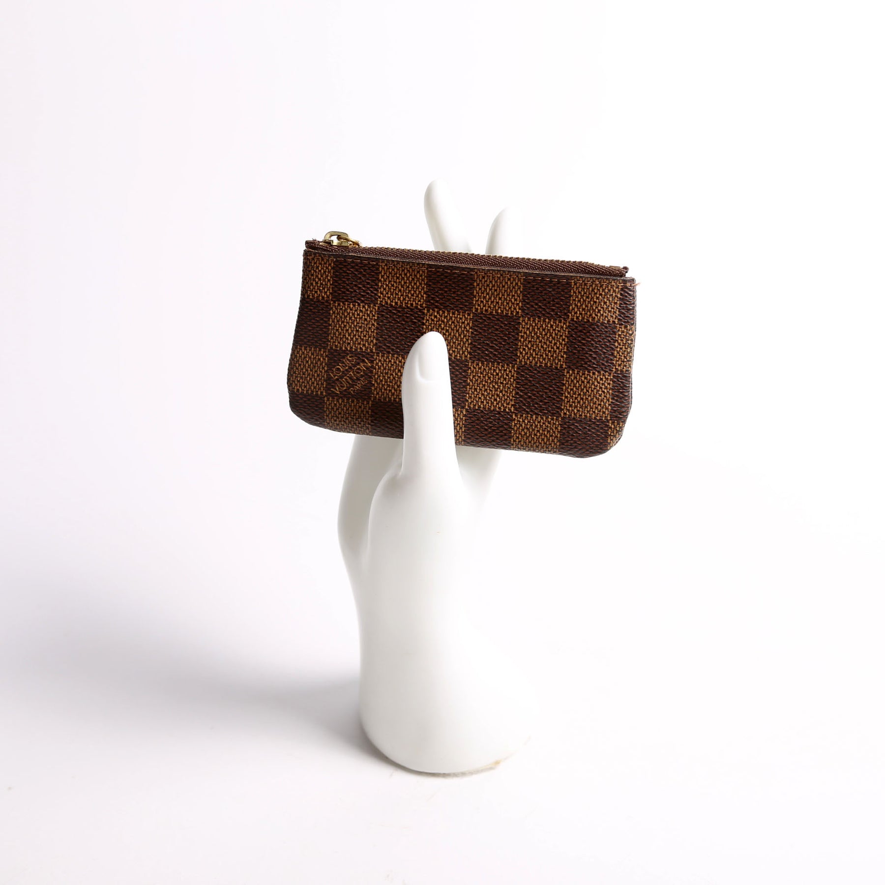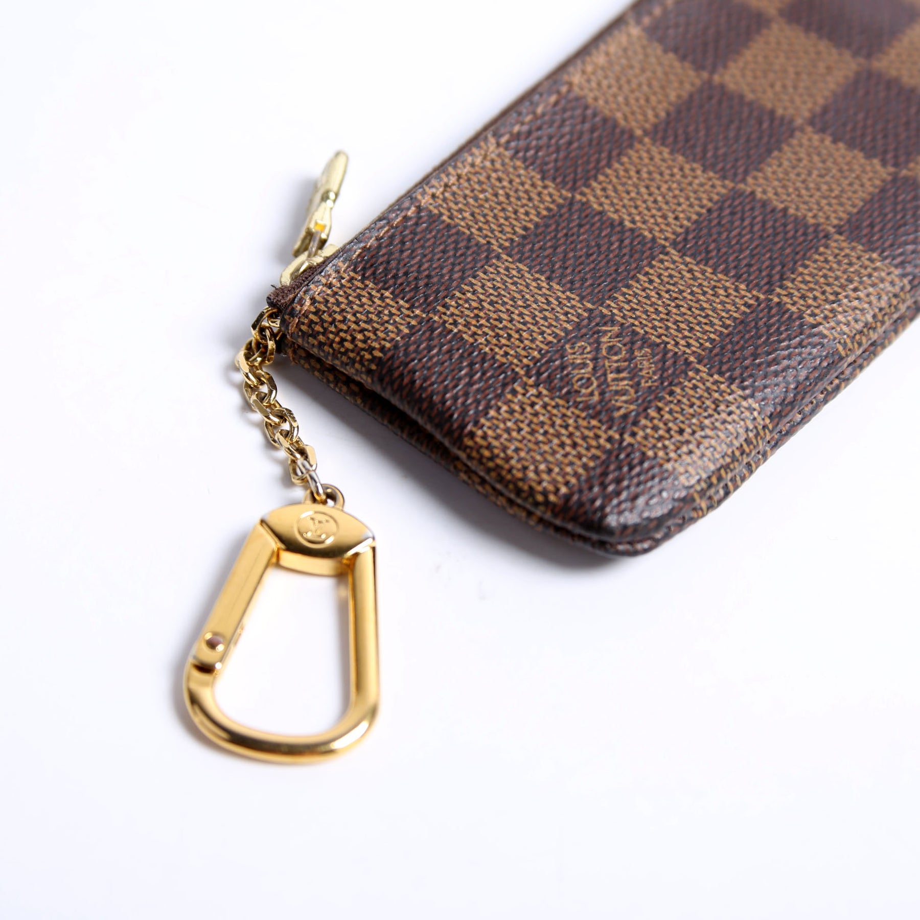 This pre-owned Louis Vuitton Pochette Cles is guaranteed 100% authentic. The exterior is in the classic Louis Vuitton ebene.