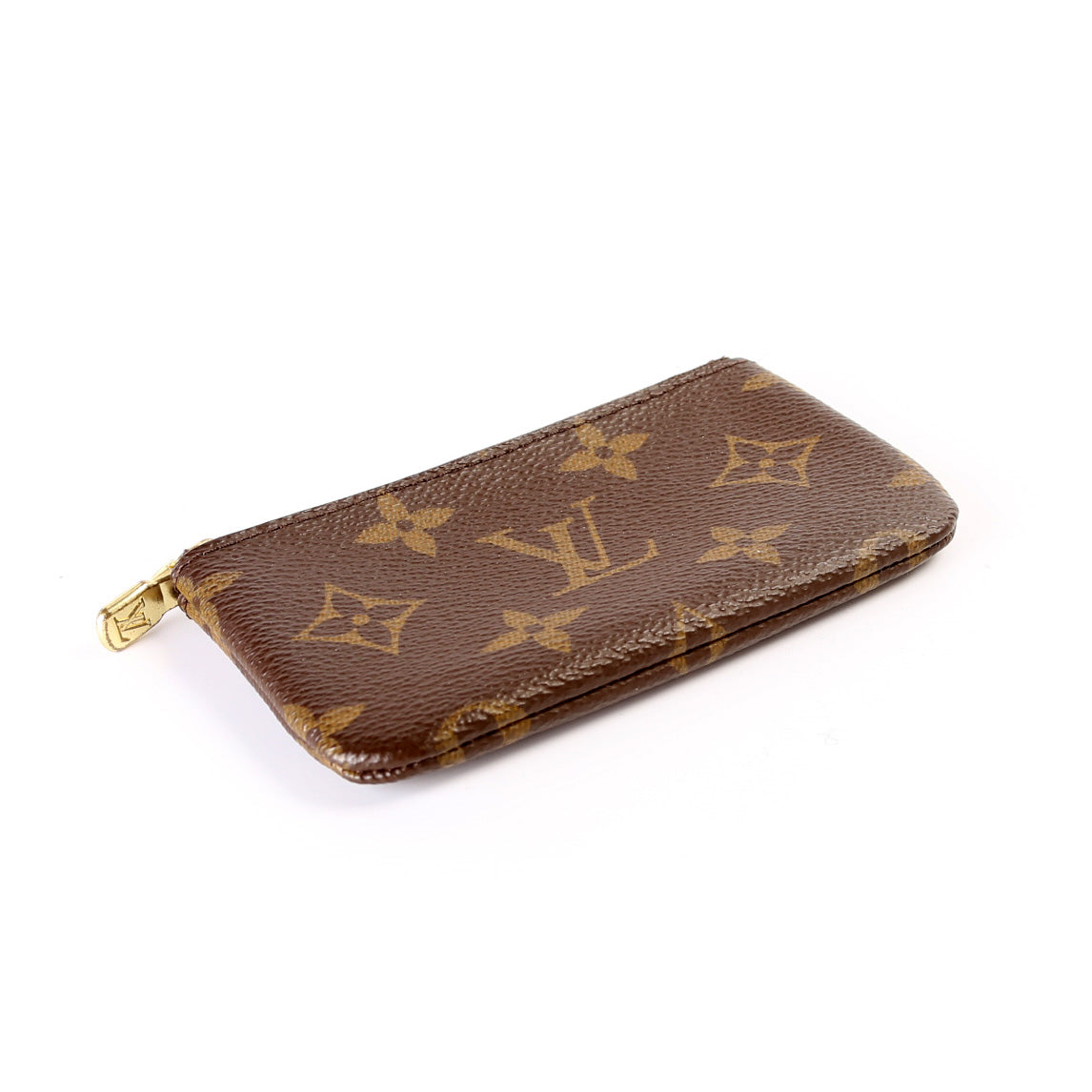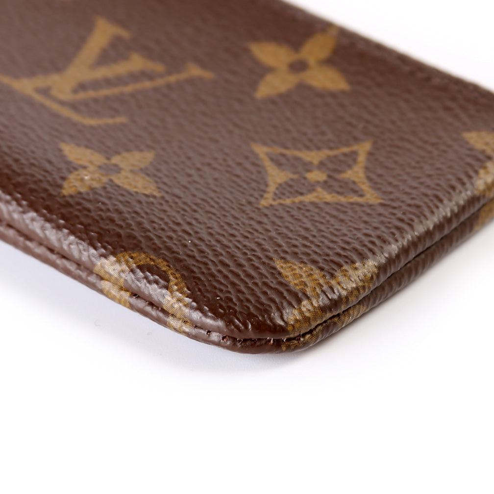 This pre-owned Louis Vuitton Pochette Cles is guaranteed 100% authentic. The exterior is in the classic Louis Vuitton Monogram coated canvas.