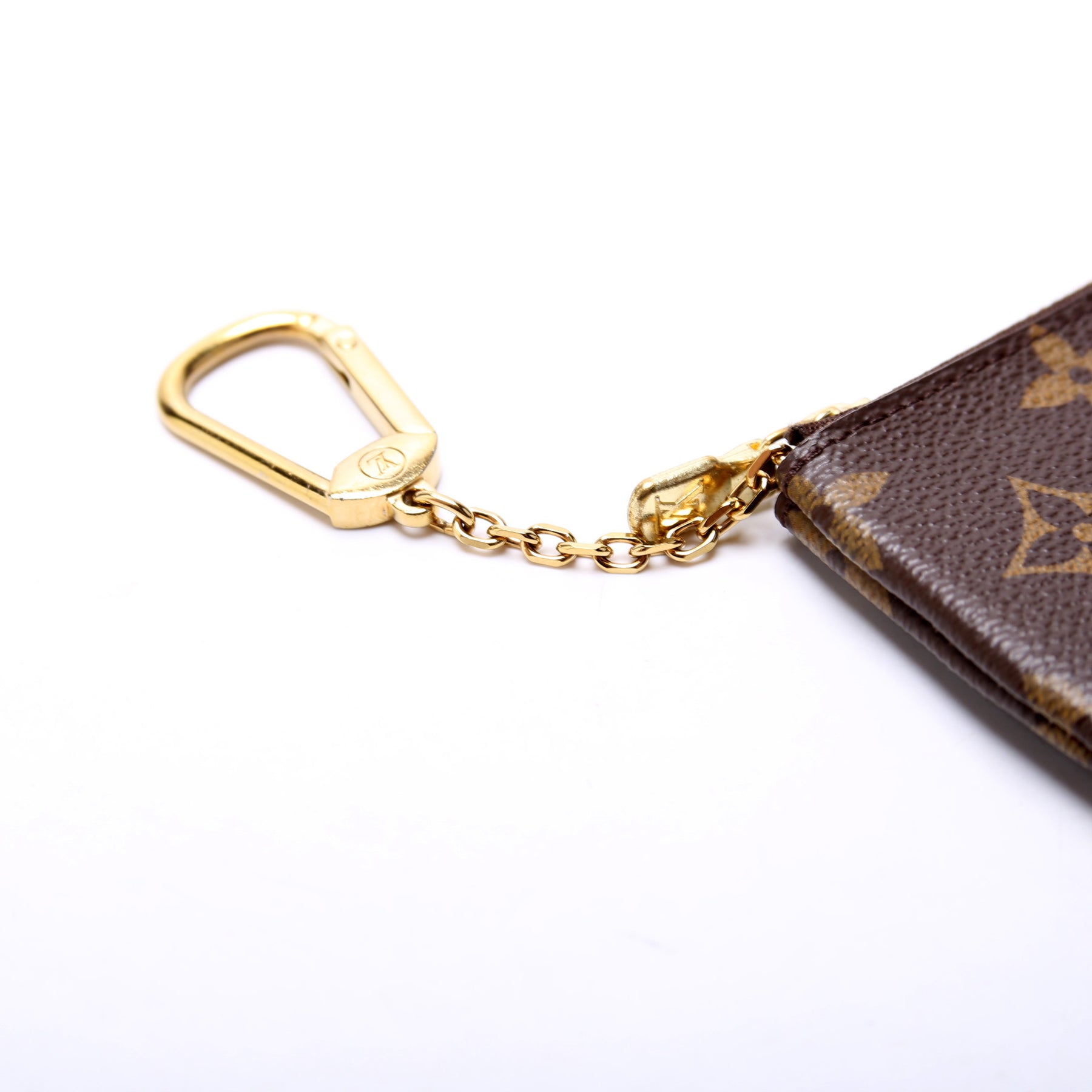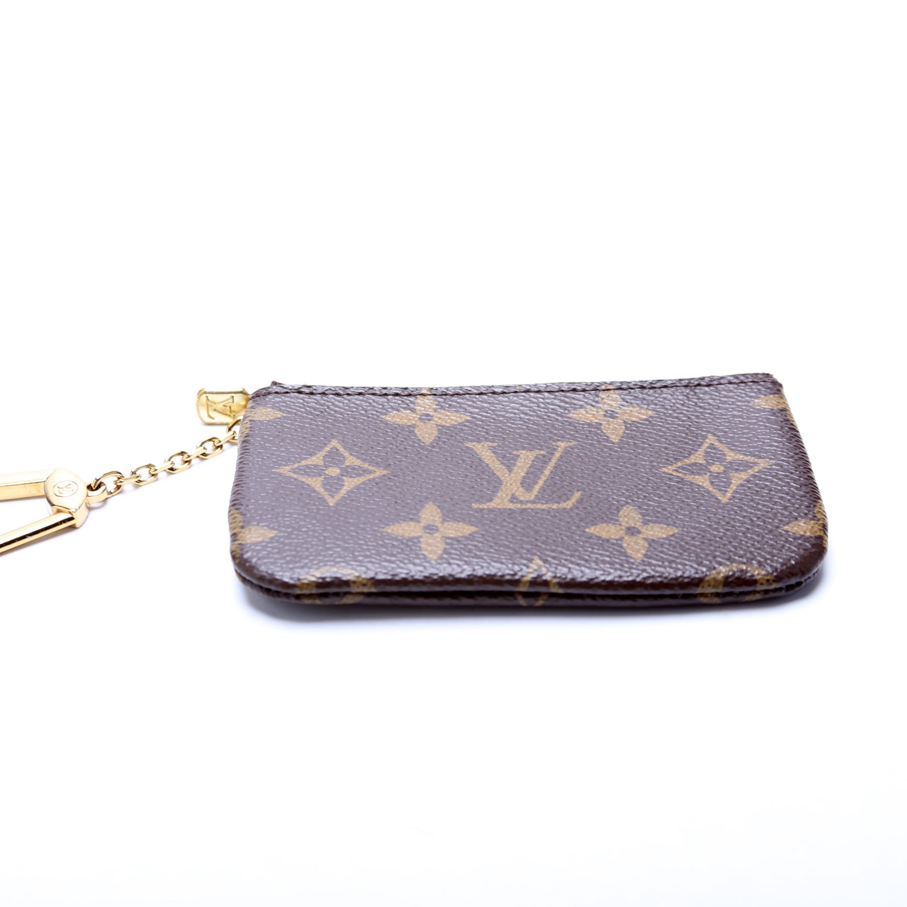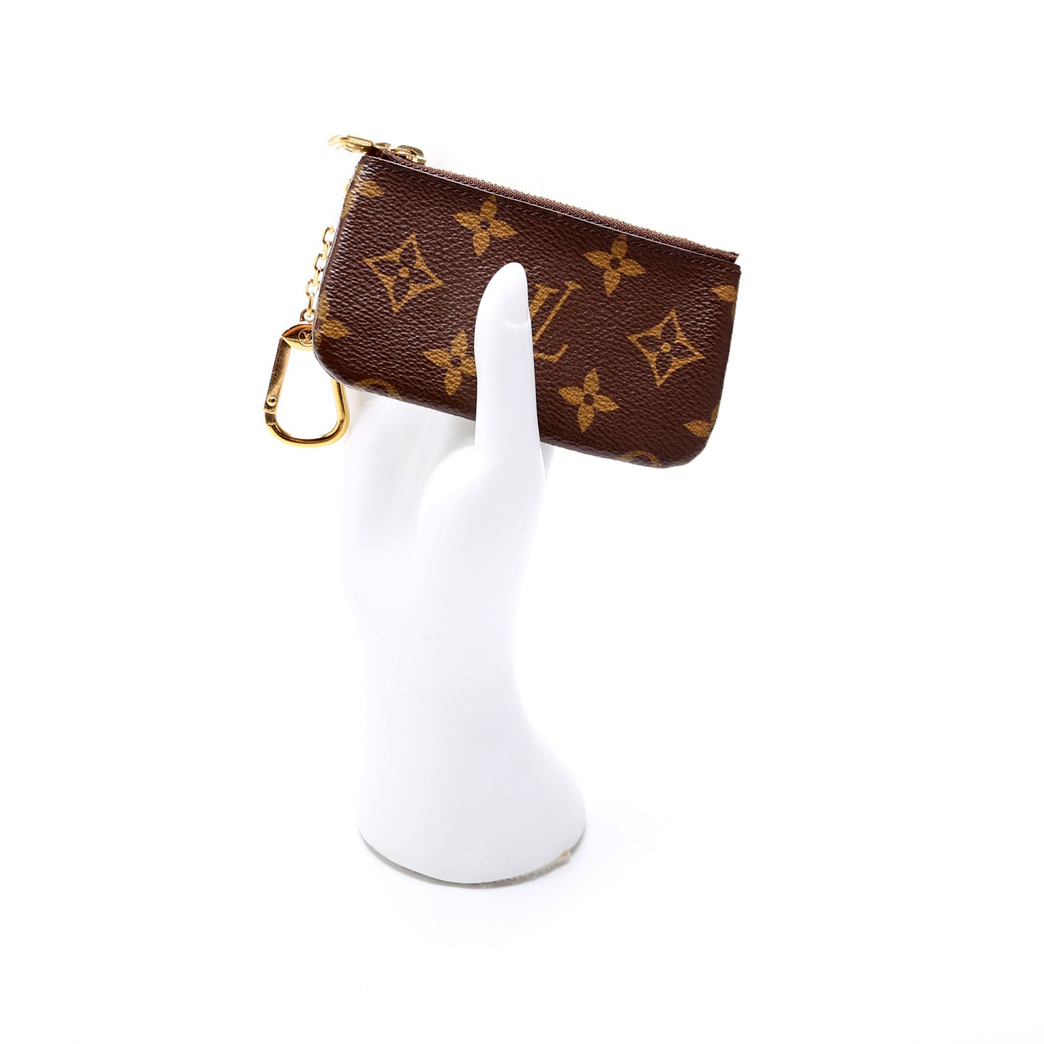 This pre-owned Louis Vuitton Pochette Cles is guaranteed 100% authentic. The exterior is in the classic Louis Vuitton Monogram coated canvas.