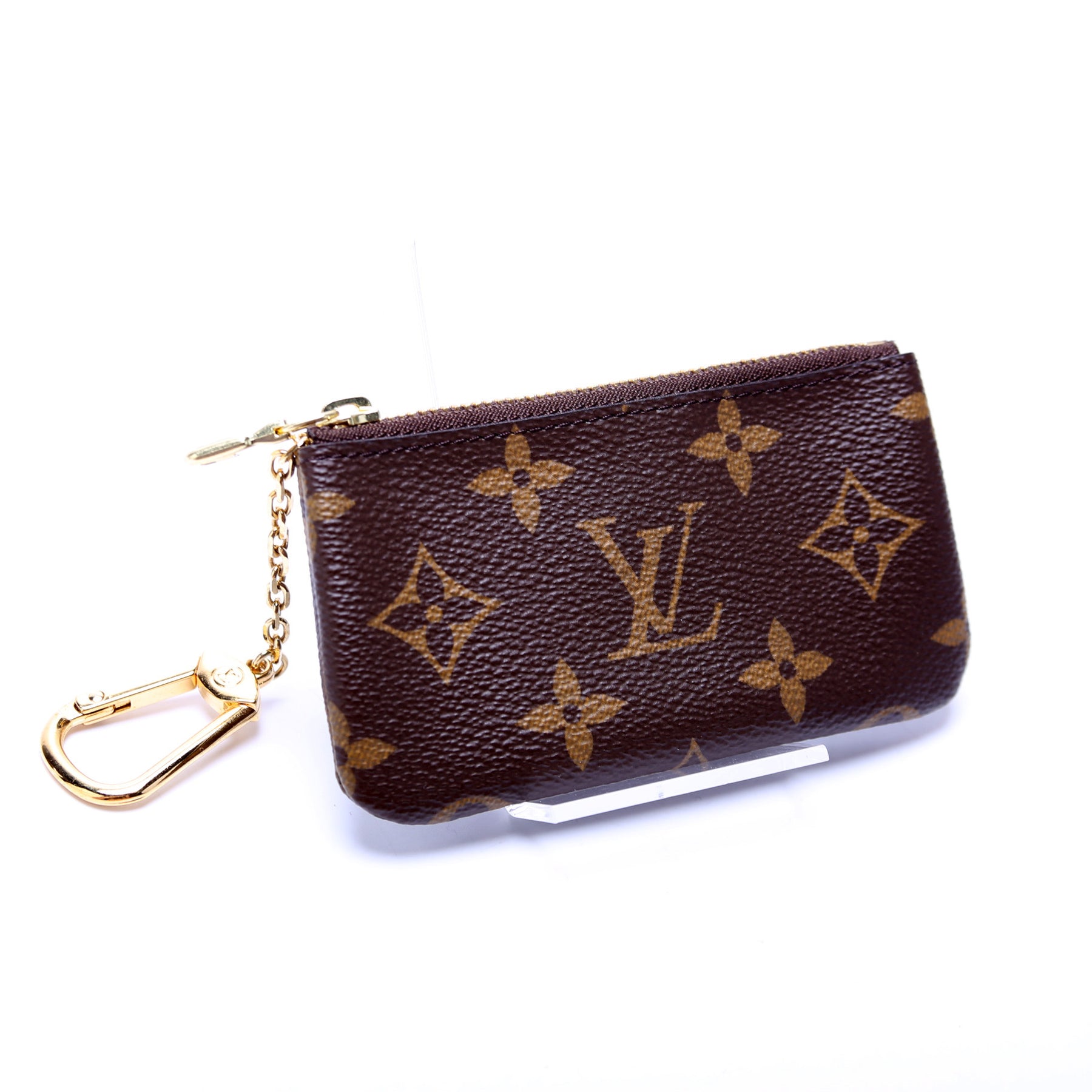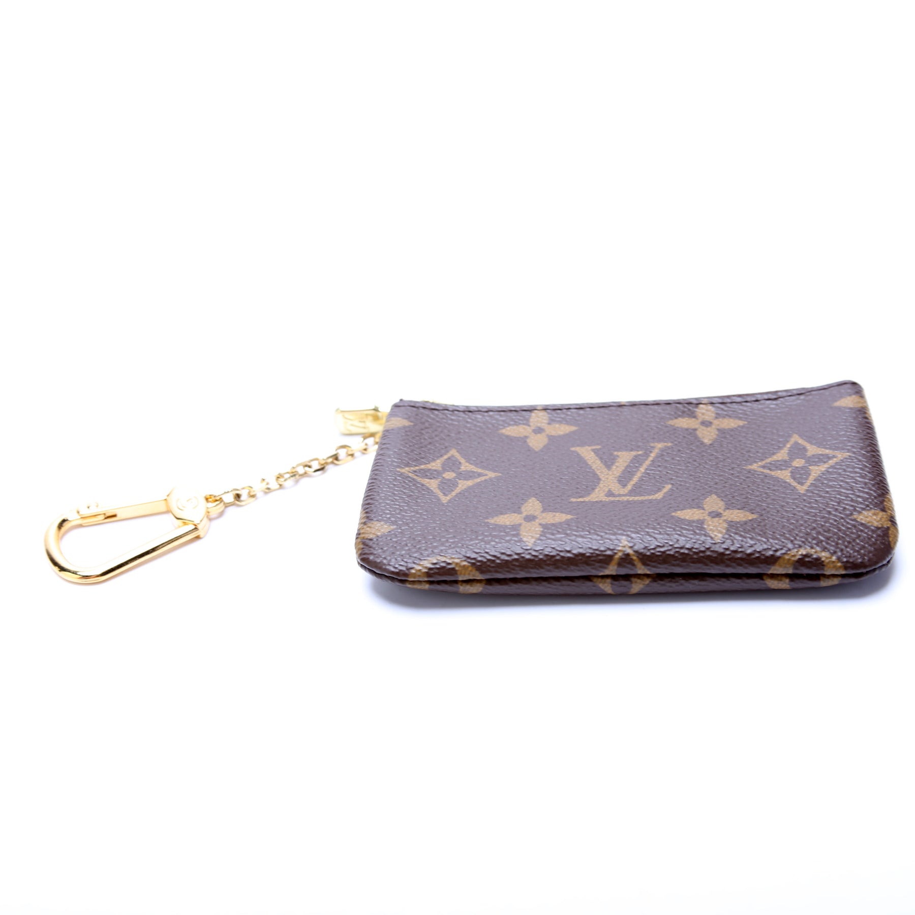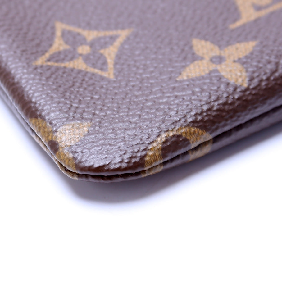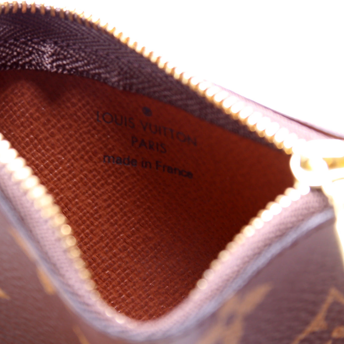 This pre-owned Louis Vuitton Pochette Cles is guaranteed 100% authentic. The exterior is in the classic Louis Vuitton Monogram coated canvas.