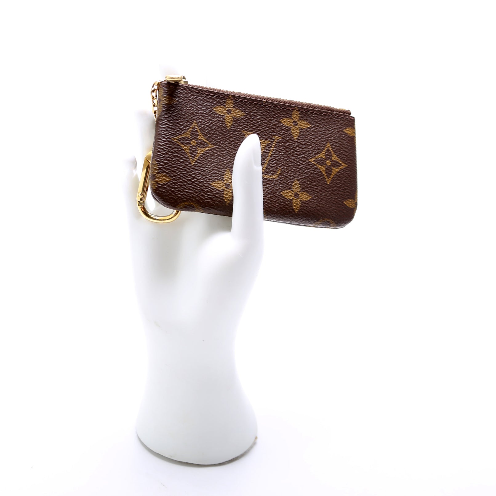 This pre-owned Louis Vuitton Pochette Cles is guaranteed 100% authentic. The exterior is in the classic Louis Vuitton Monogram coated canvas.