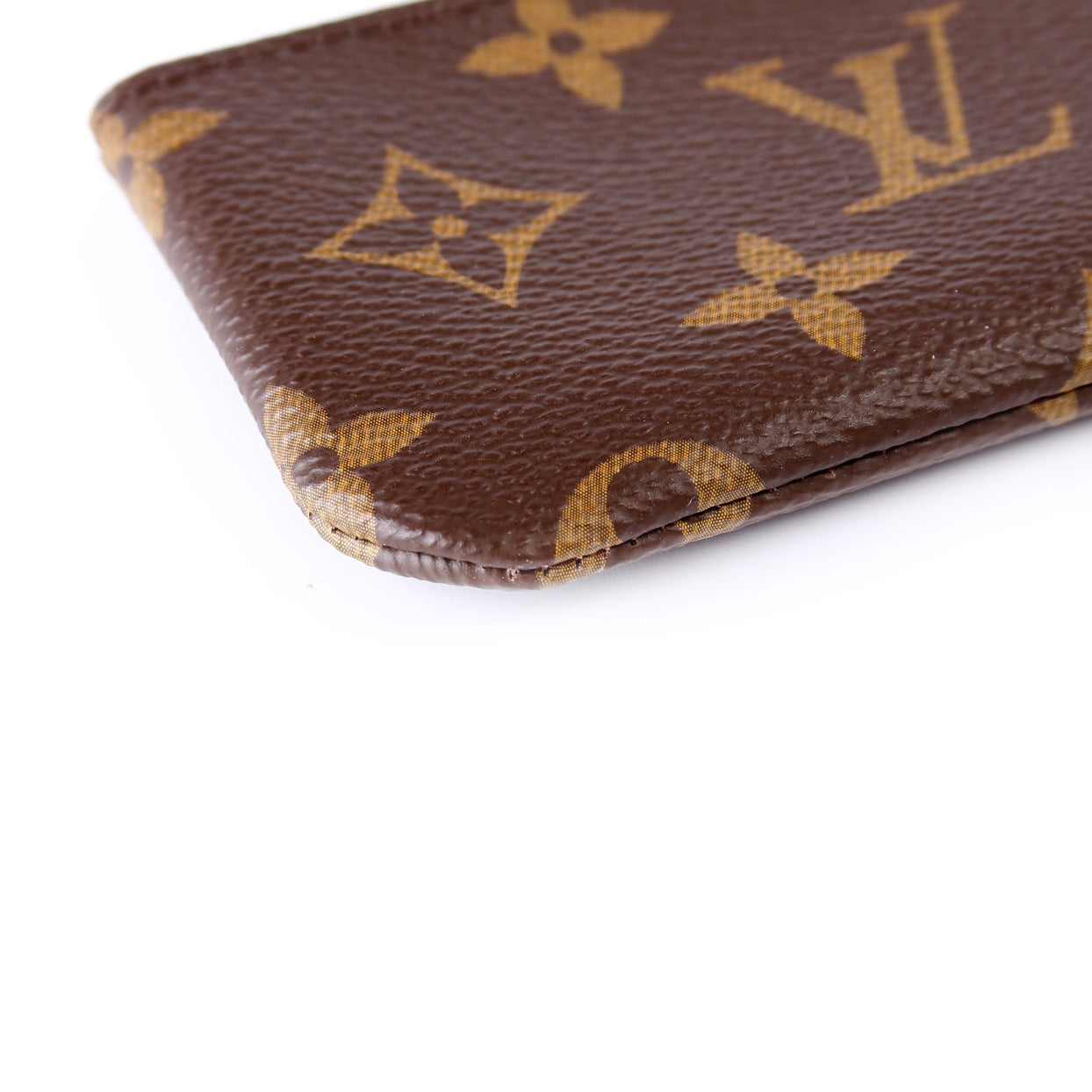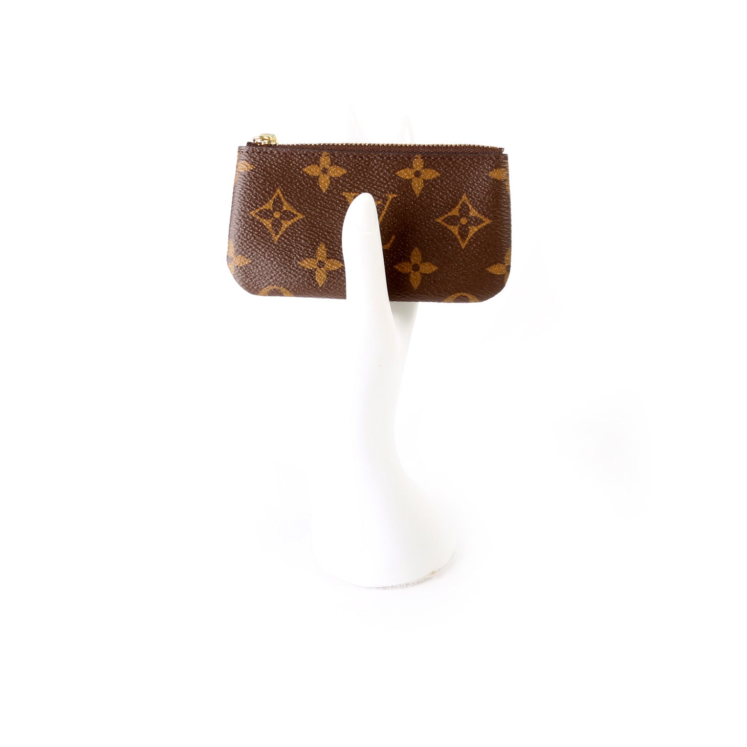 This pre-owned Louis Vuitton Pochette Cles is guaranteed 100% authentic. The exterior is in the classic Louis Vuitton Monogram coated canvas.