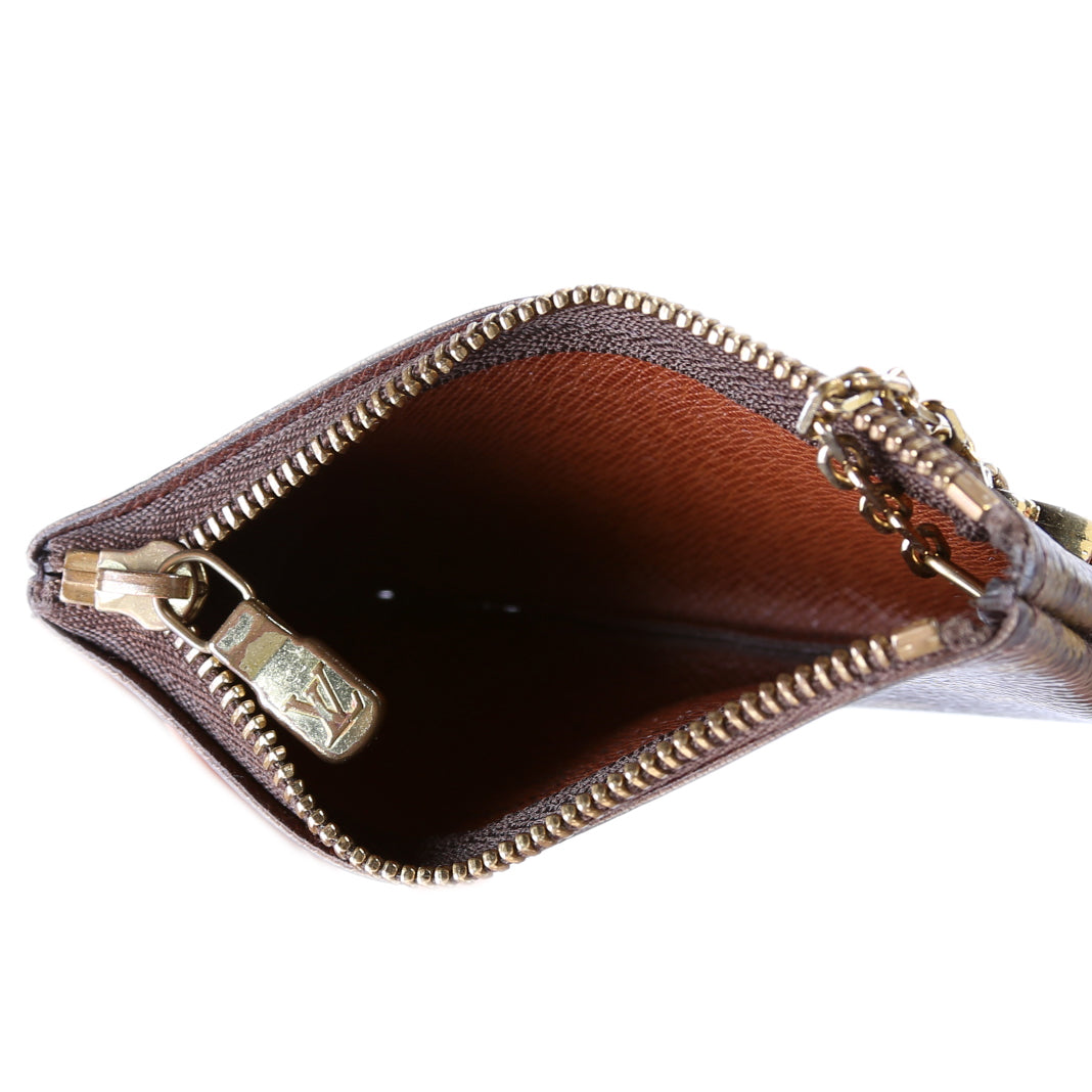 This pre-owned Louis Vuitton Pochette Cles is guaranteed 100% authentic. The exterior is in the classic Louis Vuitton Monogram coated canvas.