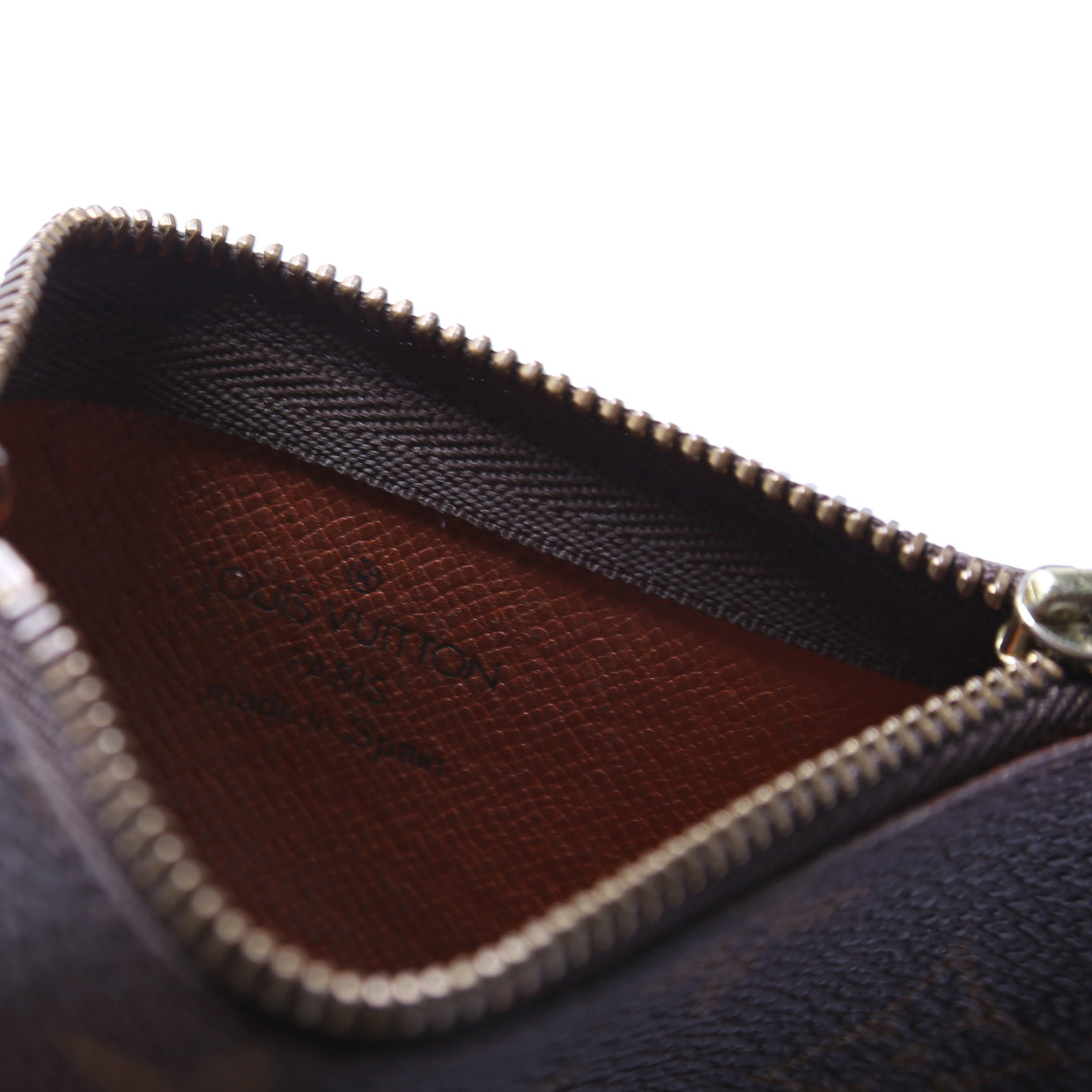 This pre-owned Louis Vuitton Pochette Cles is guaranteed 100% authentic. The exterior is in the classic Louis Vuitton Monogram coated canvas.