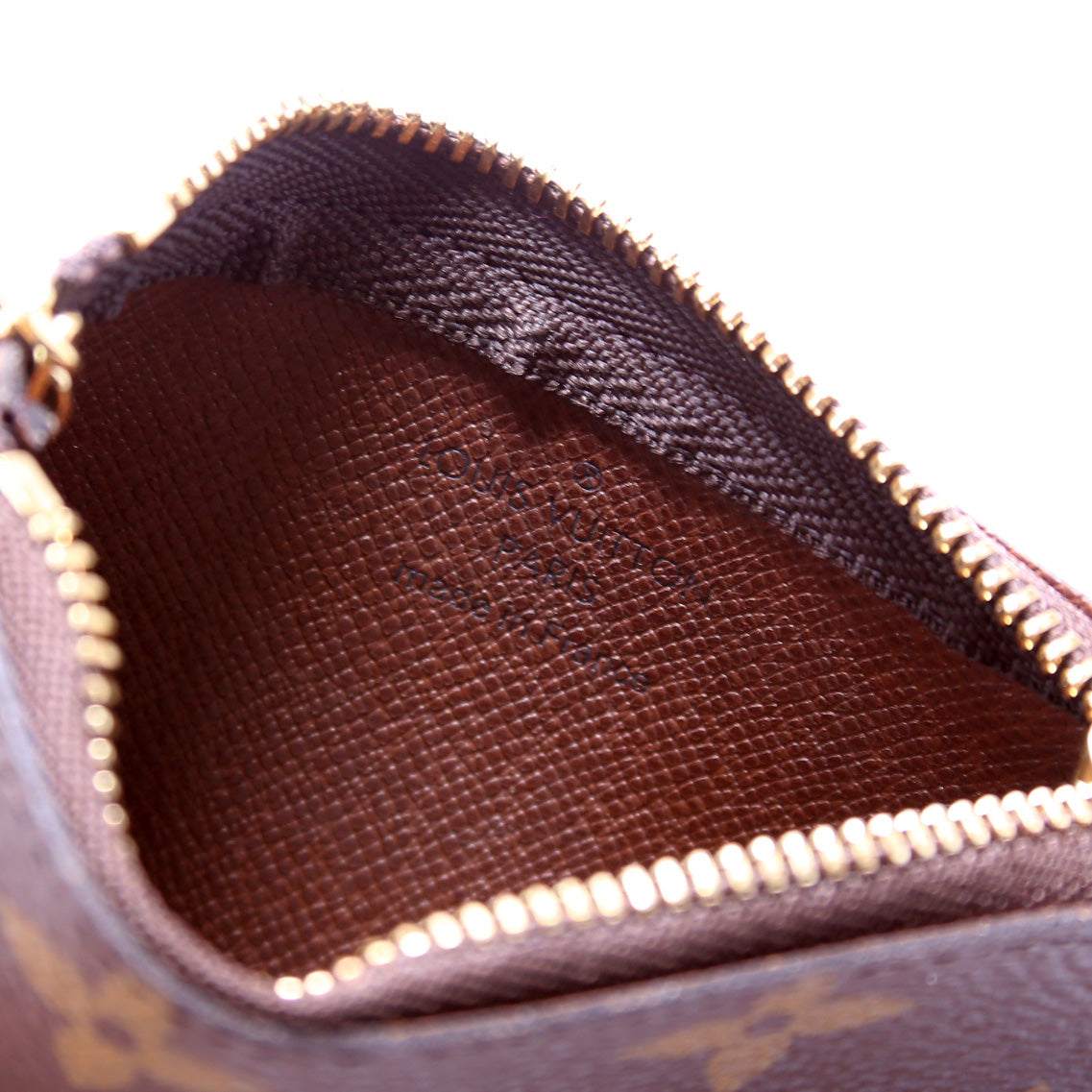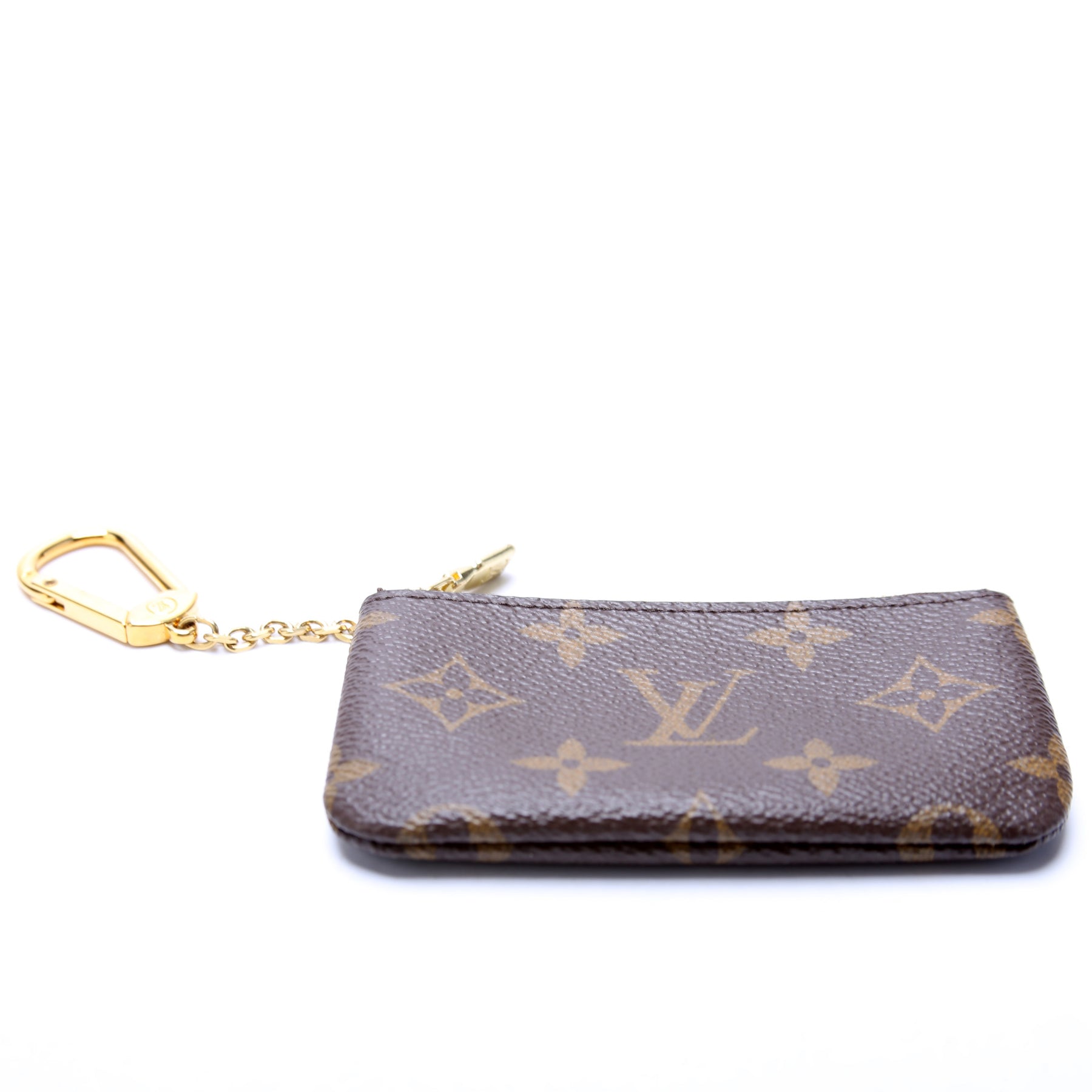 This pre-owned Louis Vuitton Pochette Cles is guaranteed 100% authentic. The exterior is in the classic Louis Vuitton Monogram coated canvas.