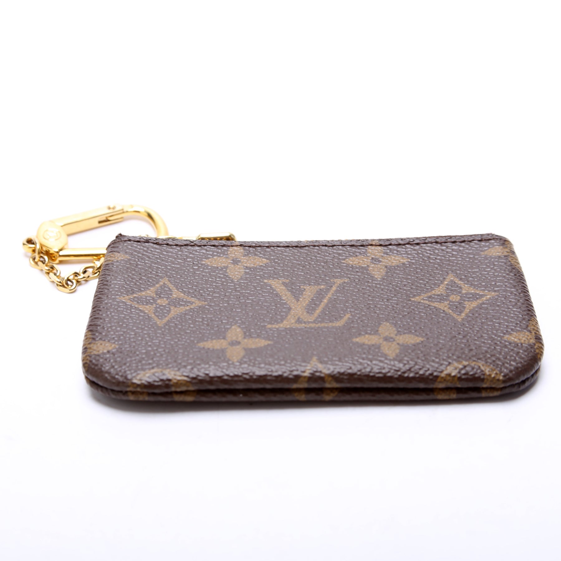 This pre-owned Louis Vuitton Pochette Cles is guaranteed 100% authentic. The exterior is in the classic Louis Vuitton Monogram coated canvas.