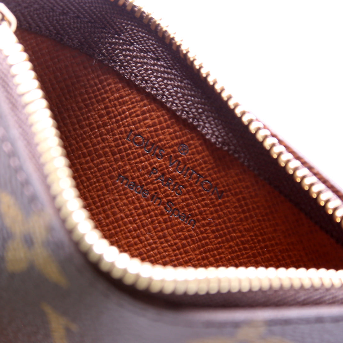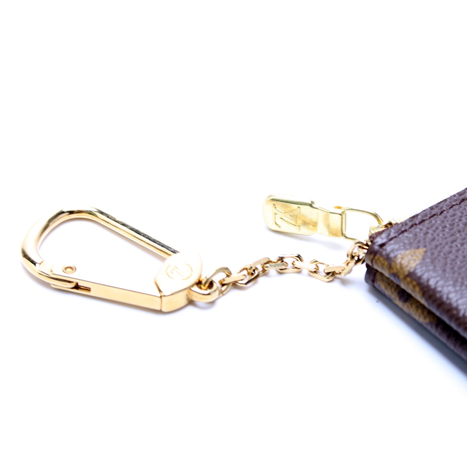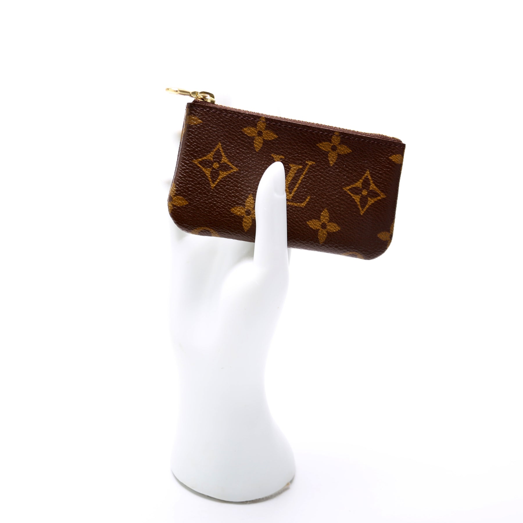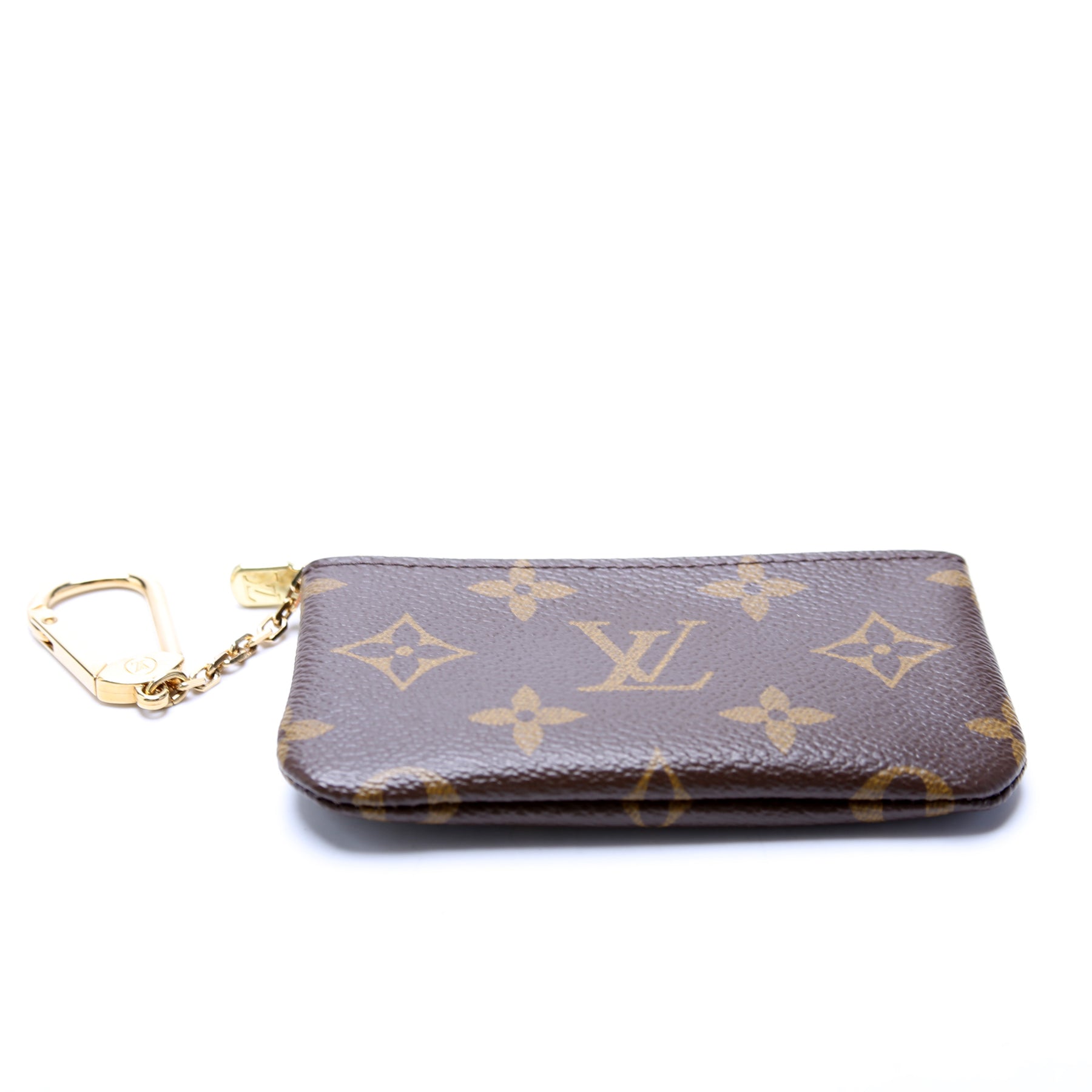 This pre-owned Louis Vuitton Pochette Cles is guaranteed 100% authentic. The exterior is in the classic Louis Vuitton Monogram coated canvas.