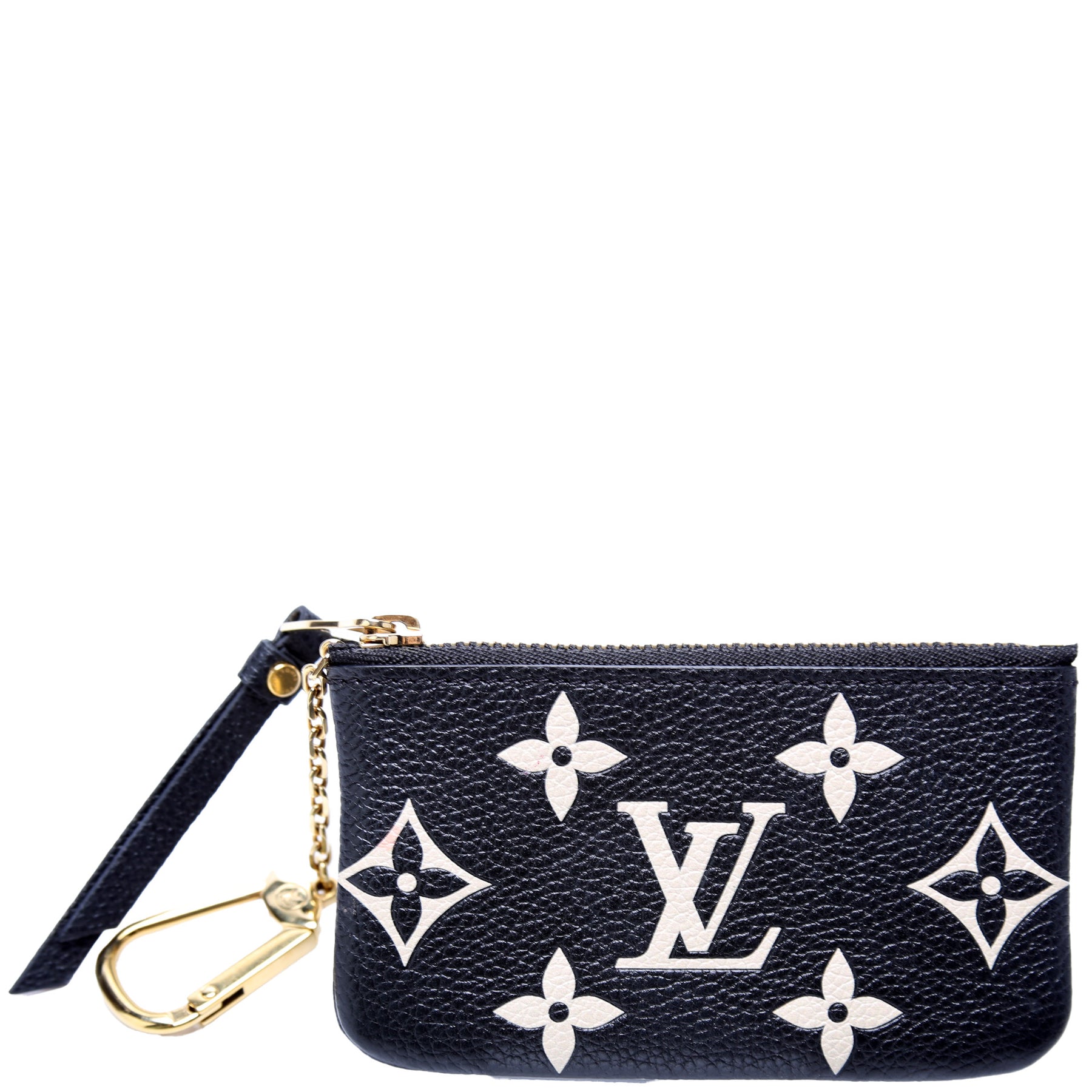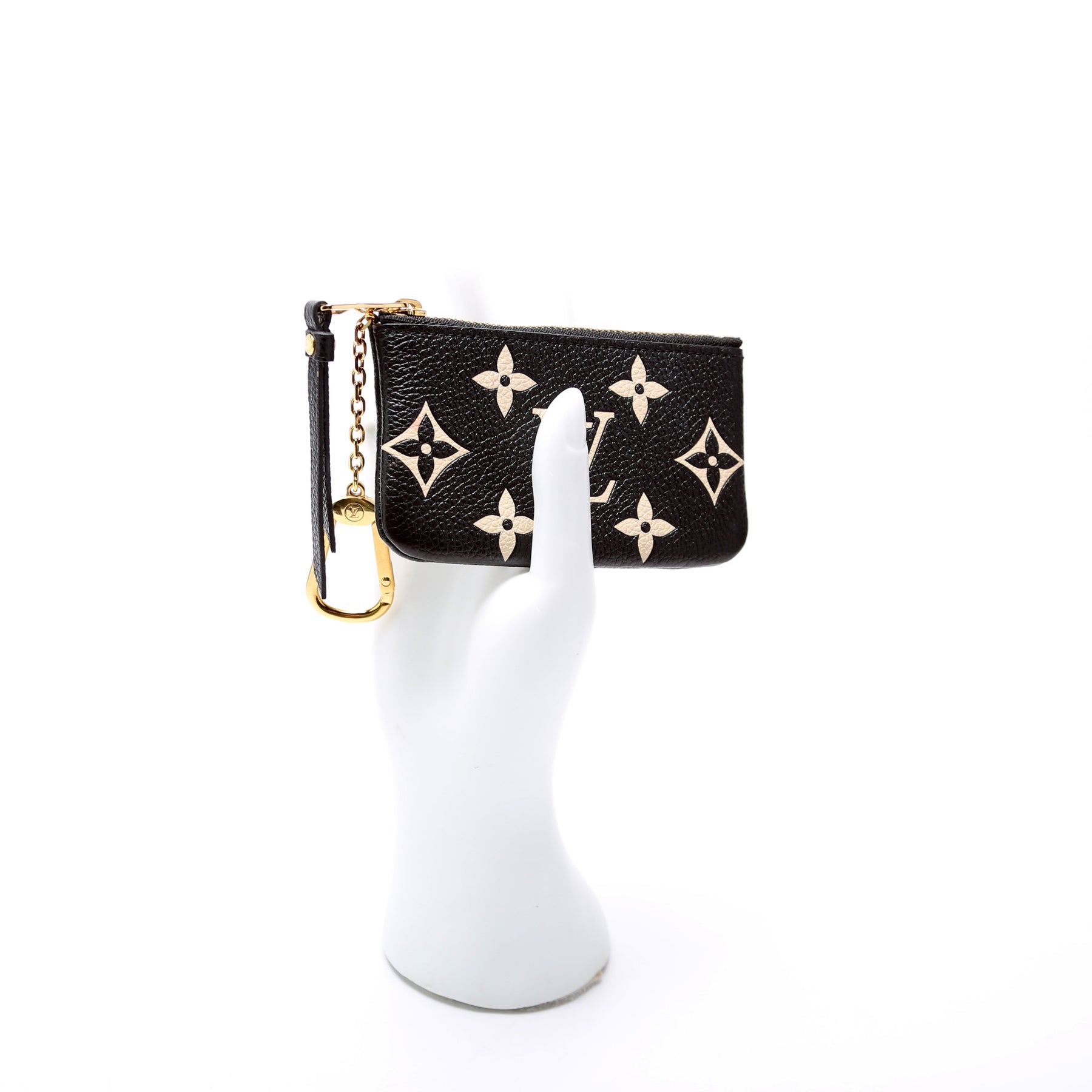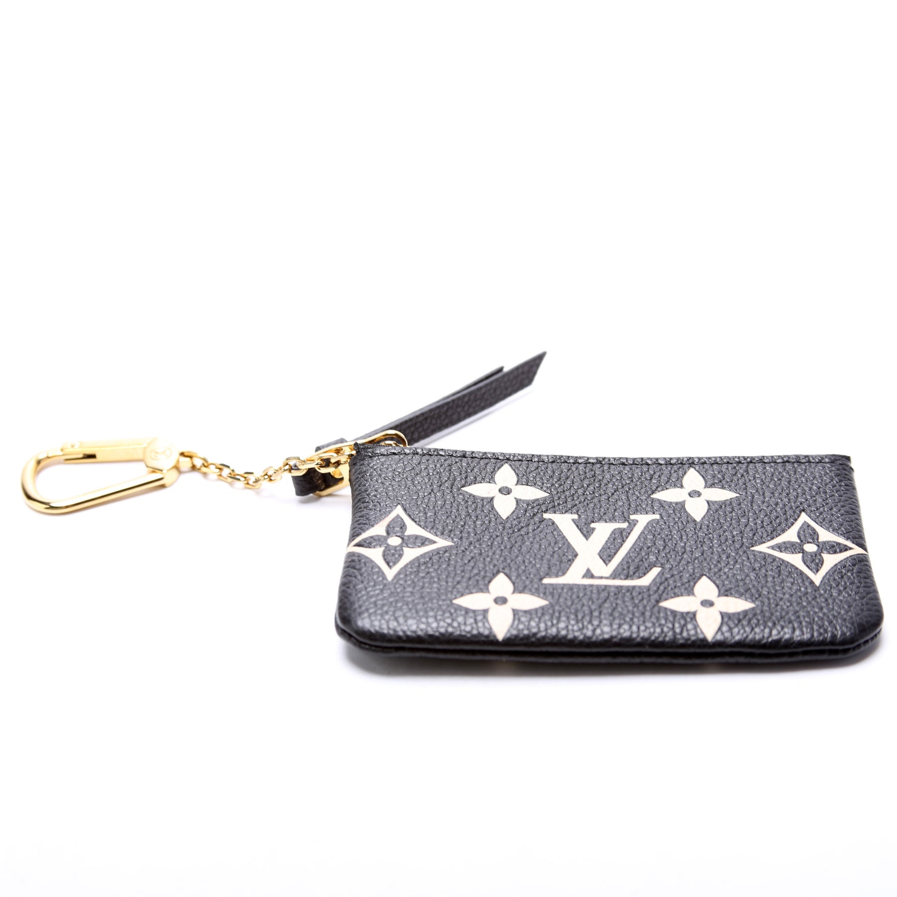 This pre-owned Louis Vuitton Pochette Cles NM Bicolor is guaranteed 100% authentic. The exterior is in the classic Louis Vuitton Empreinte leather.
