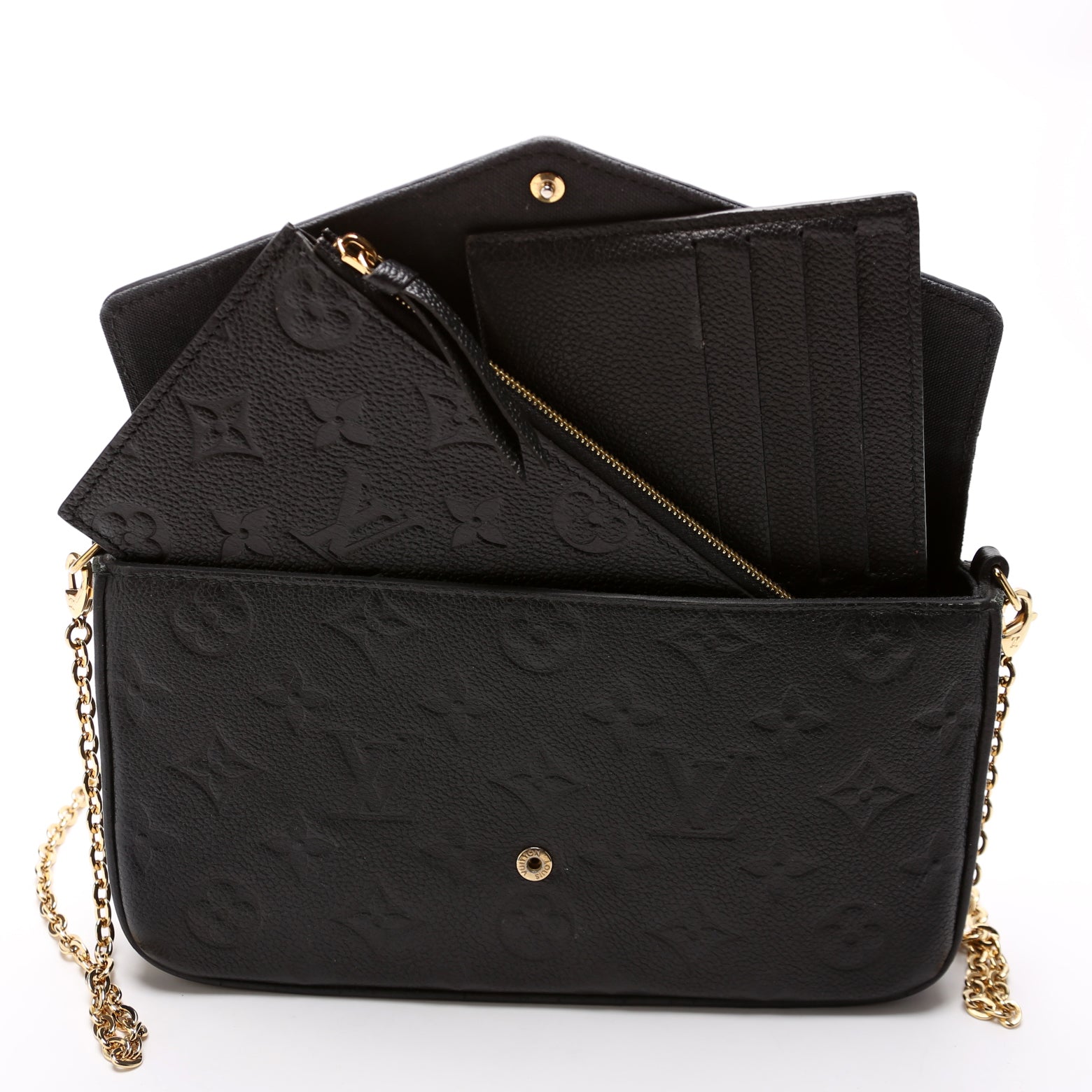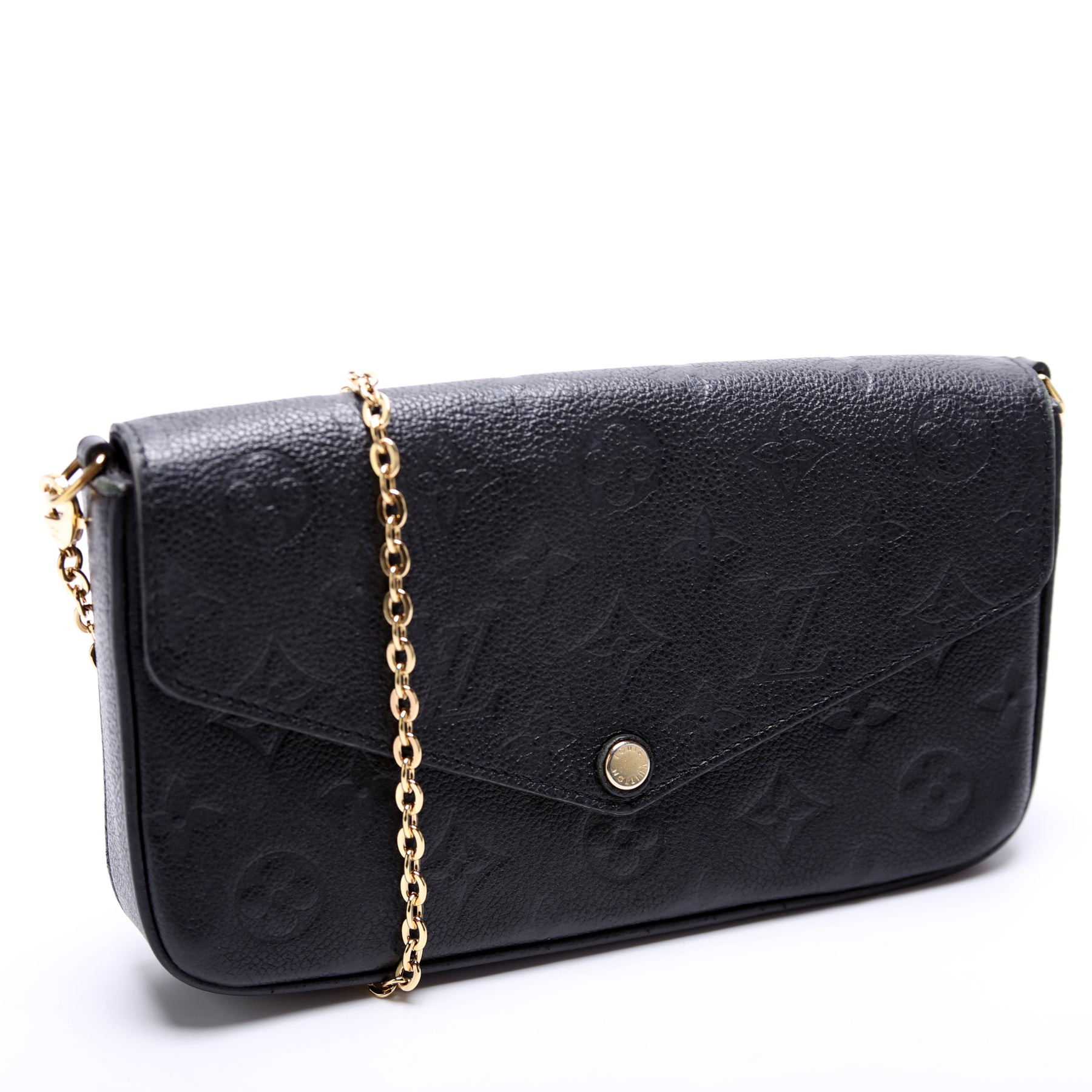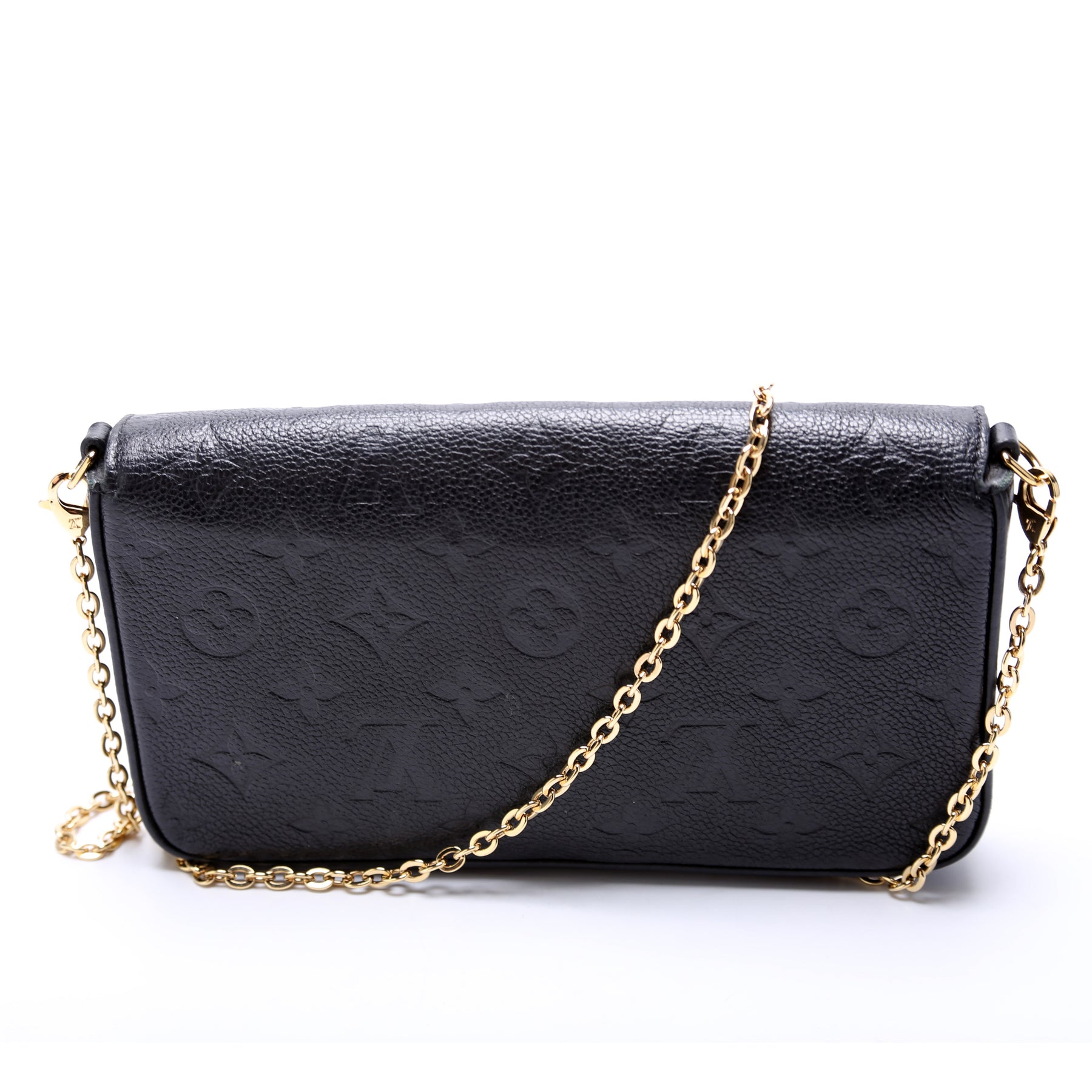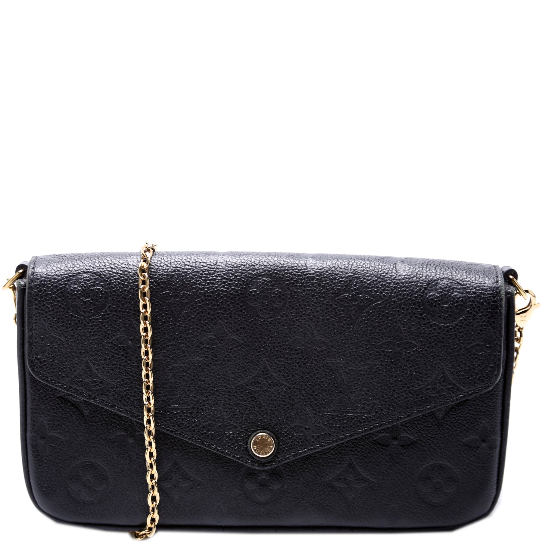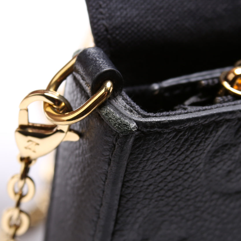 This pre-owned Louis Vuitton Pochette Felicie is guaranteed 100% authentic. The exterior is in the classic Louis Vuitton Empreinte leather.