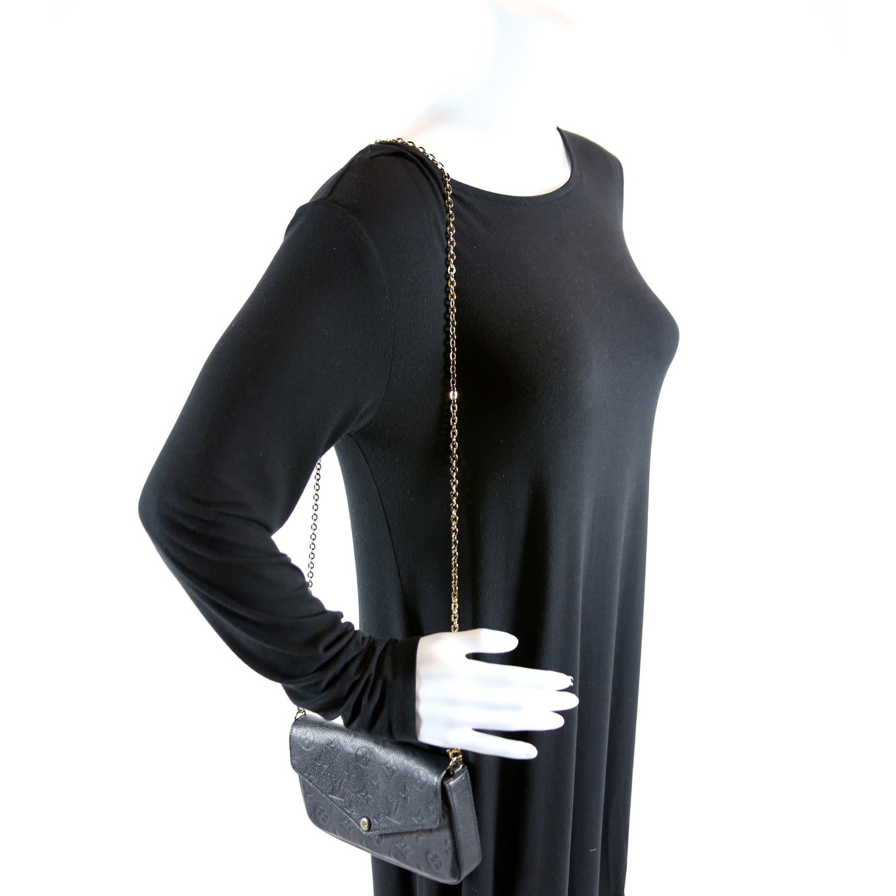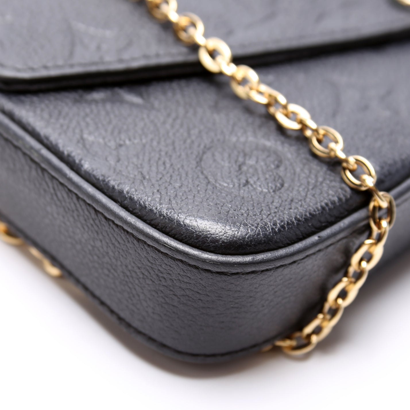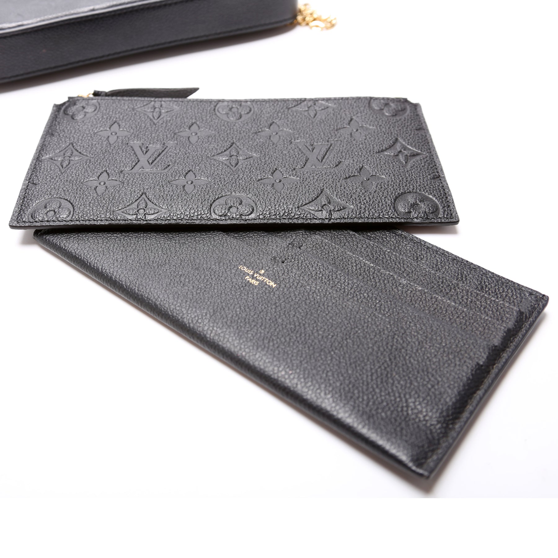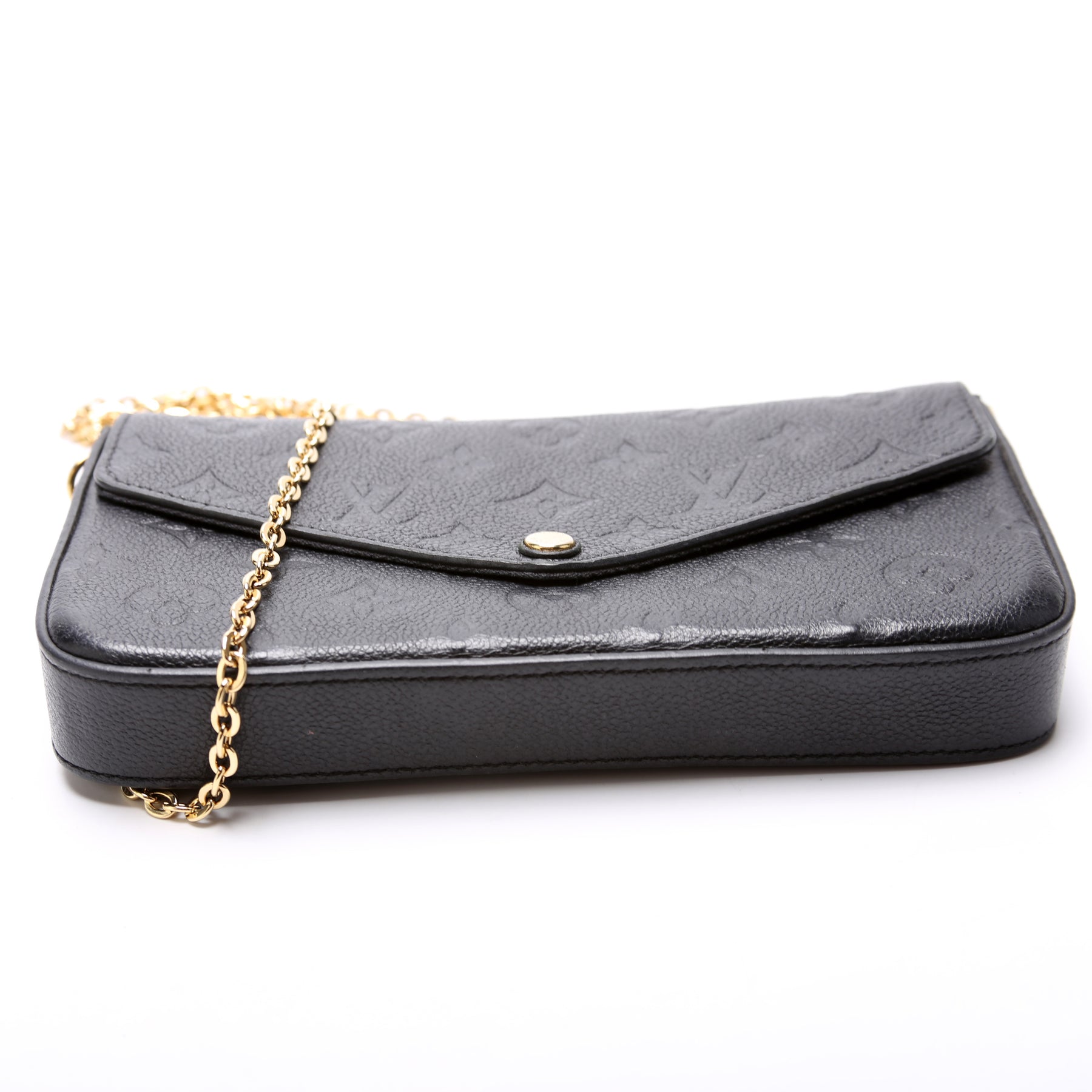 This pre-owned Louis Vuitton Pochette Felicie is guaranteed 100% authentic. The exterior is in the classic Louis Vuitton Empreinte leather.