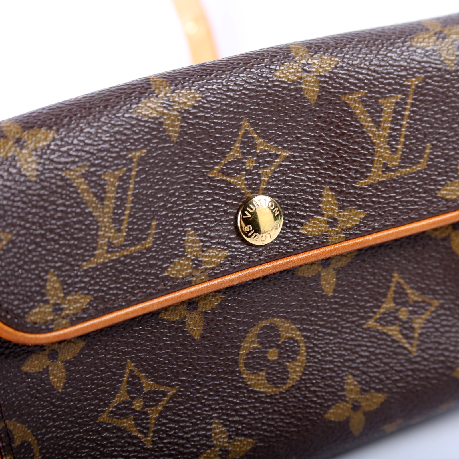 This pre-owned Pochette Florentine is guaranteed 100% authentic. The exterior is in the classic Louis Vuitton Monogram coated canvas.