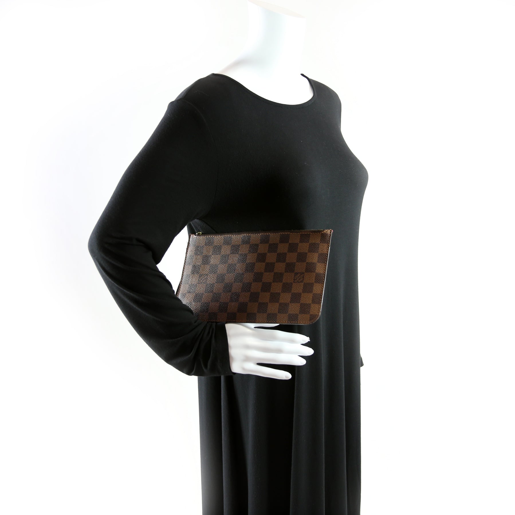 This pre-owned Louis Vuitton Pochette Only Neverfull is guaranteed 100% authentic. The exterior is in the classic Louis Vuitton Damier Ebene coated canvas.