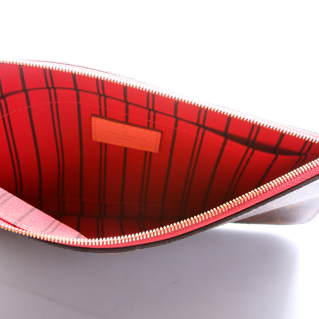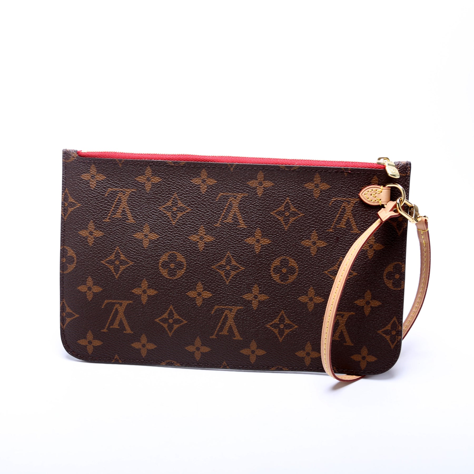 This pre-owned Louis Vuitton Pochette Only Neverfull is guaranteed 100% authentic. The exterior is in the classic Louis Vuitton Monogram coated canvas.