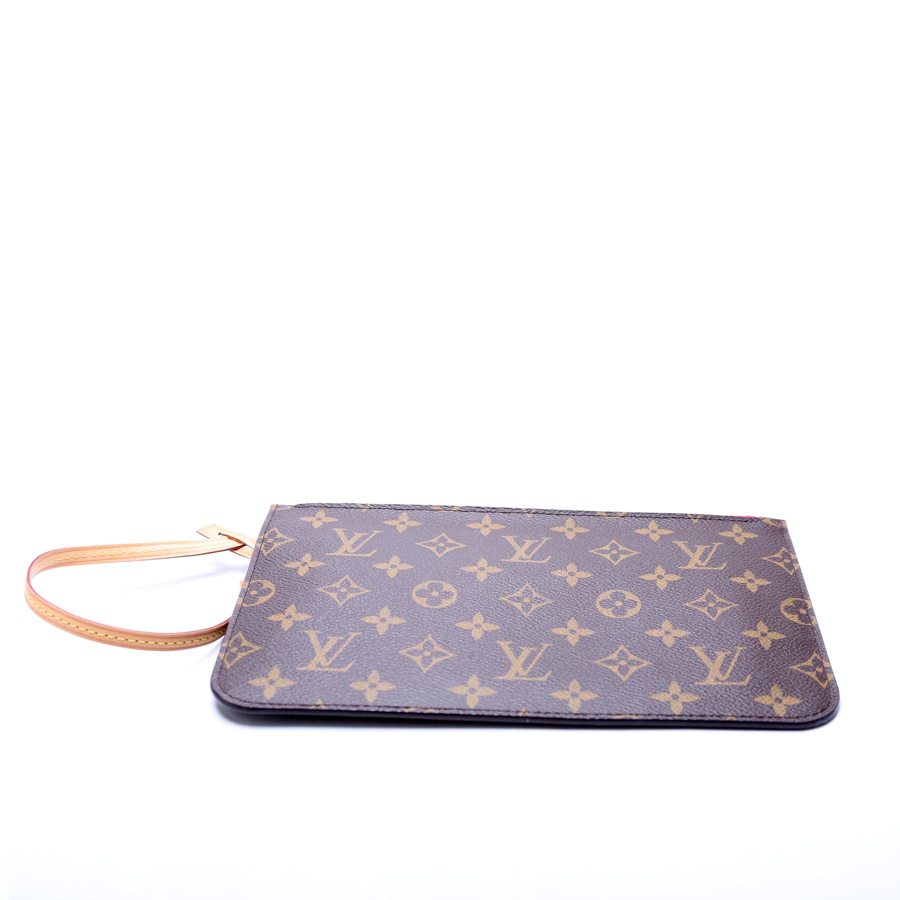 This pre-owned Louis Vuitton Pochette Only Neverfull is guaranteed 100% authentic. The exterior is in the classic Louis Vuitton Monogram coated canvas.