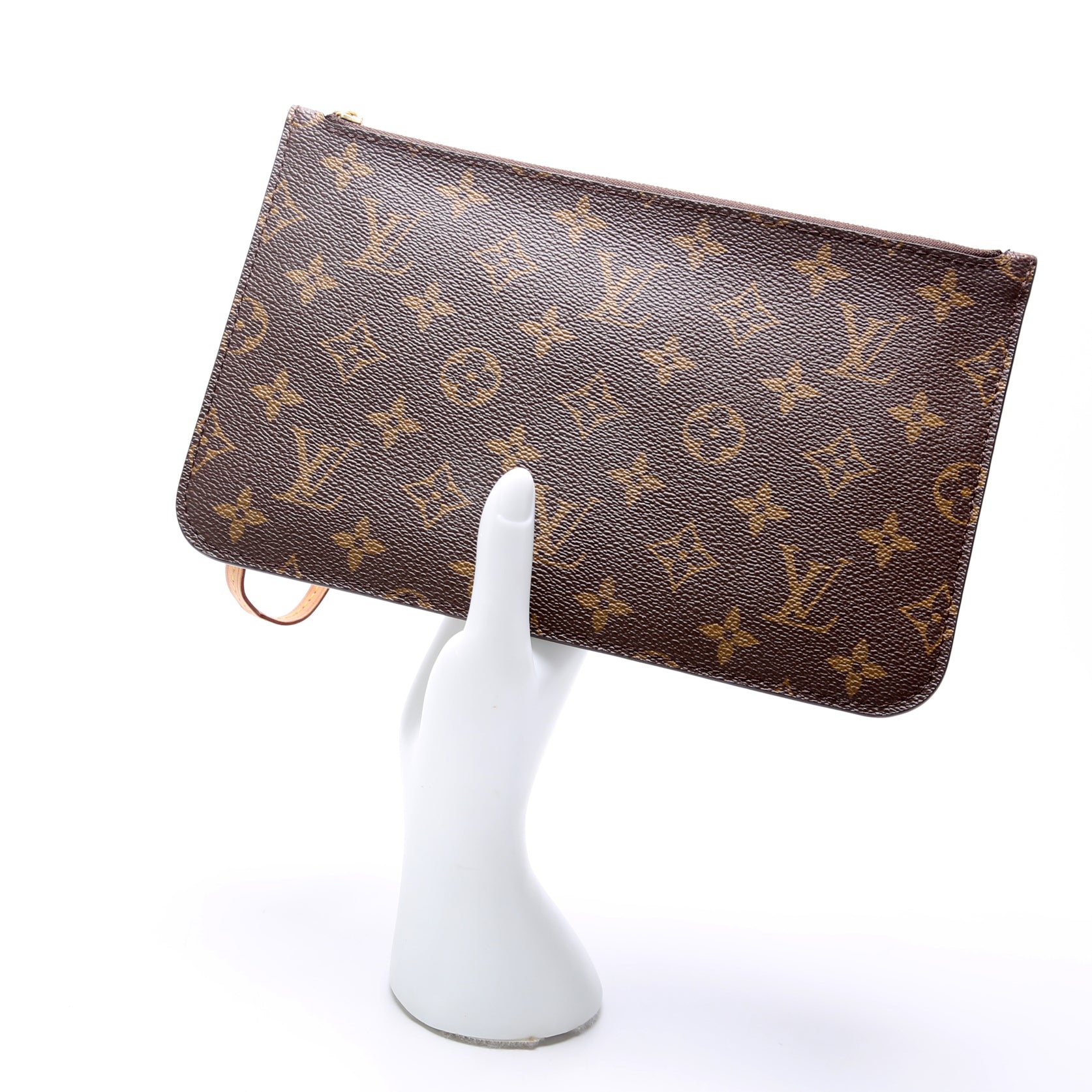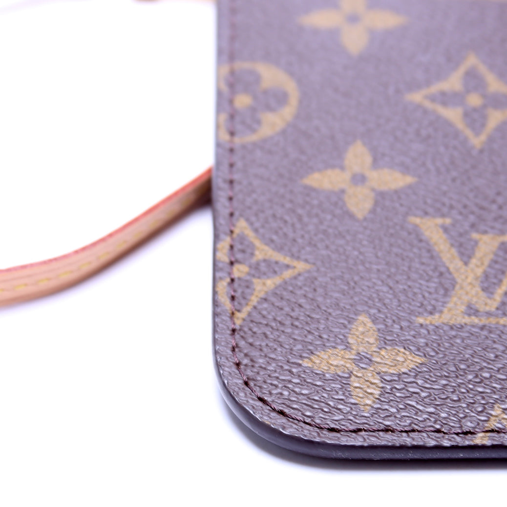 This pre-owned Louis Vuitton Pochette Only Neverfull is guaranteed 100% authentic. The exterior is in the classic Louis Vuitton Monogram coated canvas.