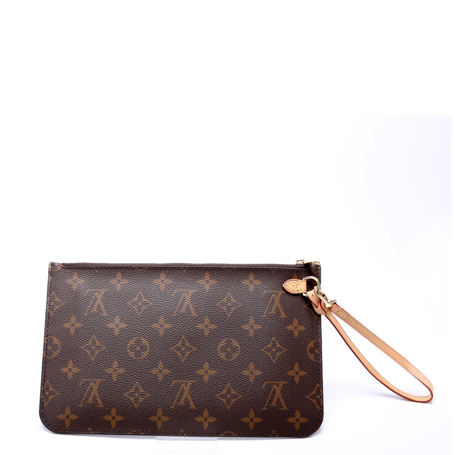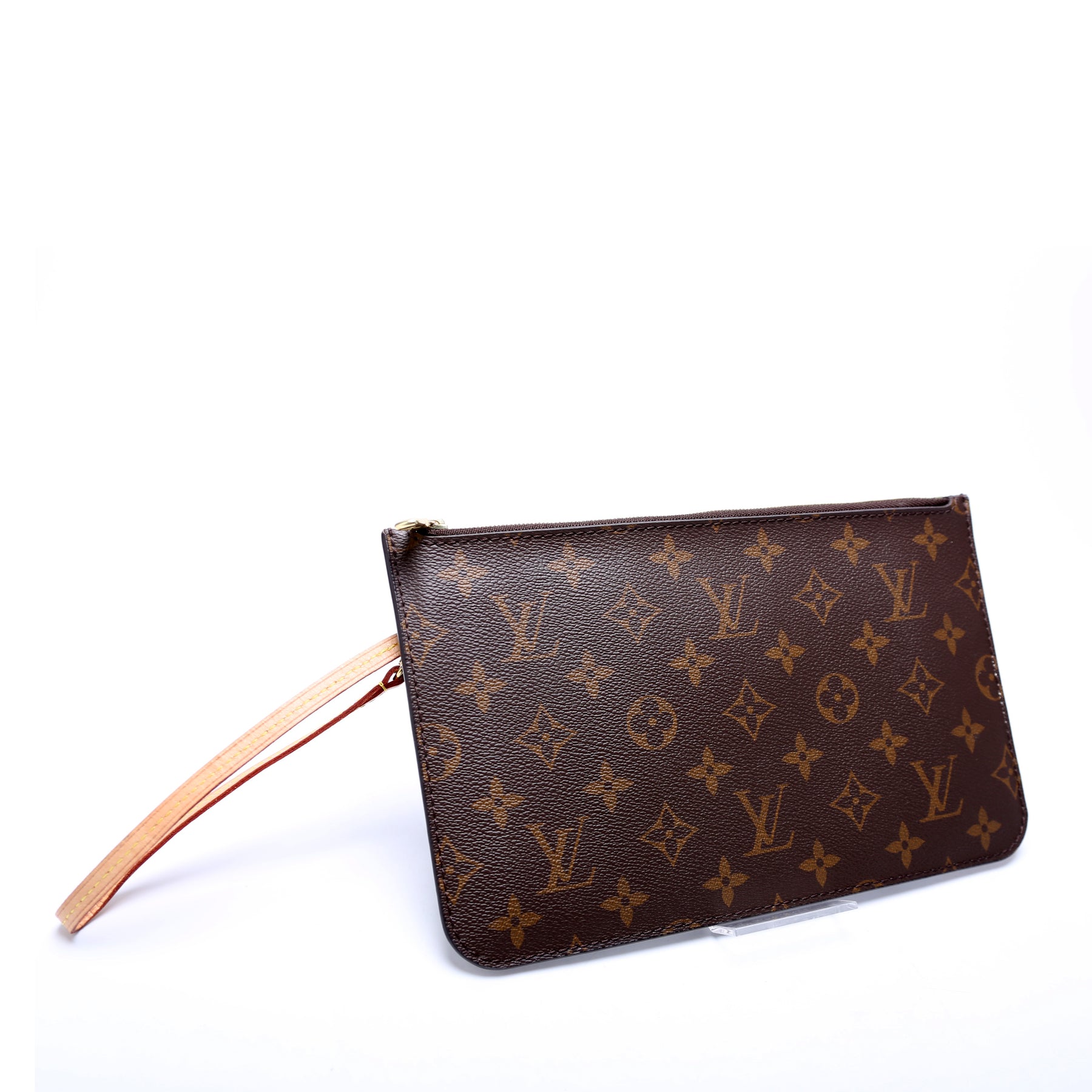 This pre-owned Louis Vuitton Pochette Only Neverfull is guaranteed 100% authentic. The exterior is in the classic Louis Vuitton Monogram coated canvas.