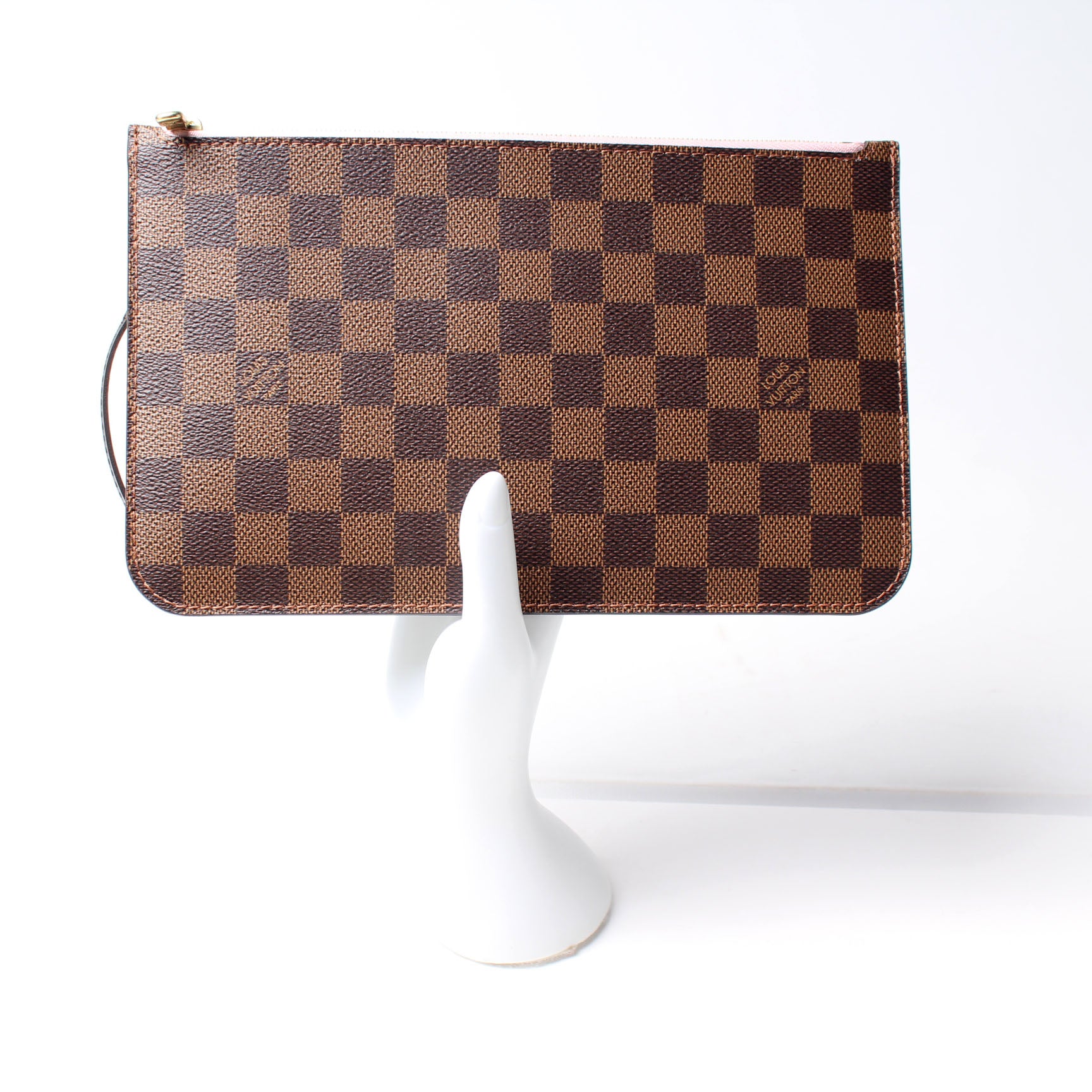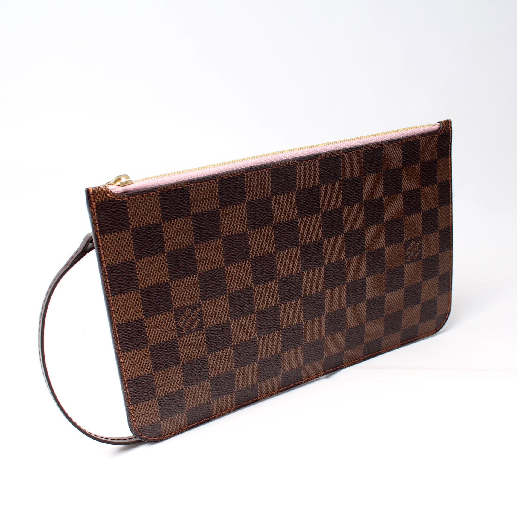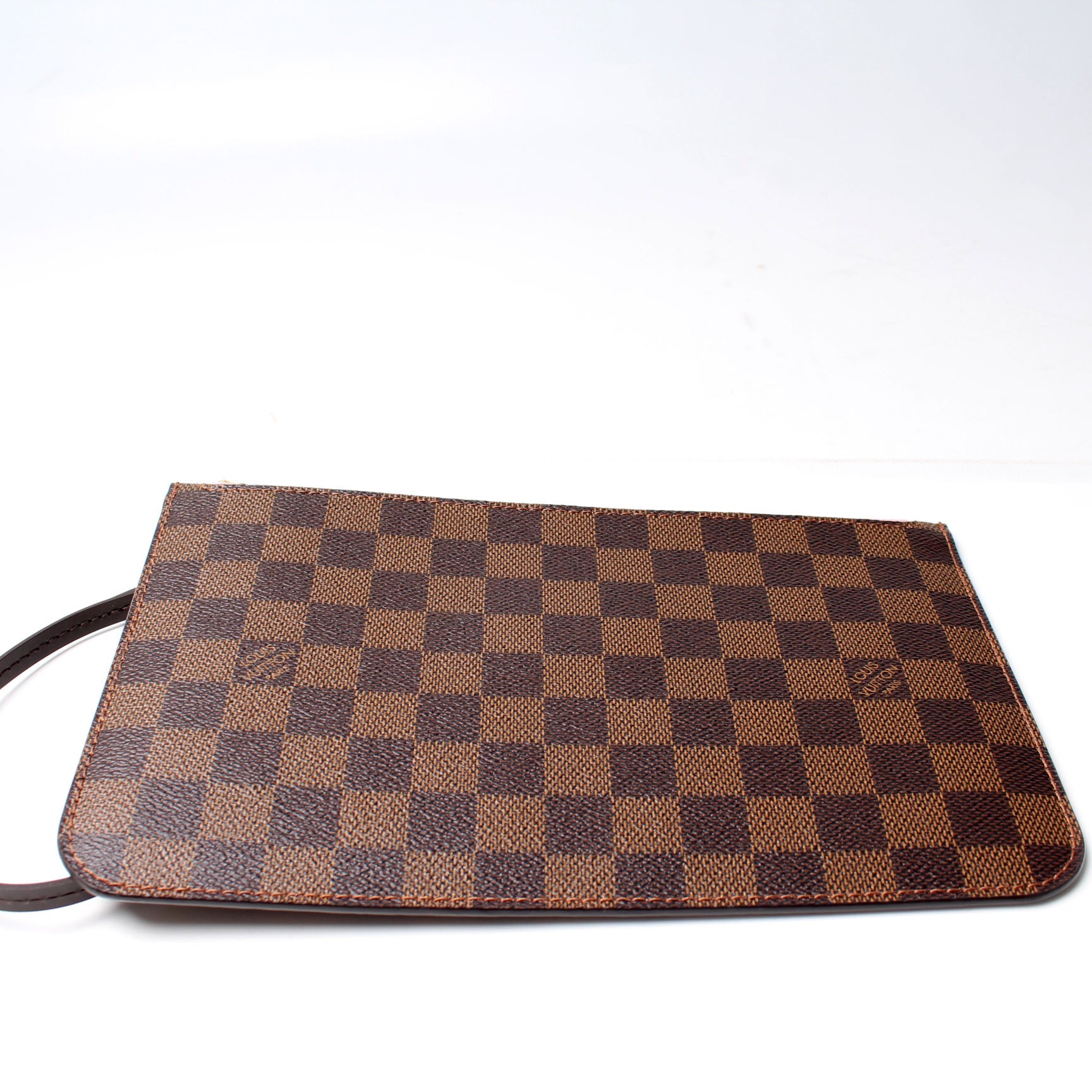 This pre-owned Louis Vuitton Pochette Only Neverfull is guaranteed 100% authentic. The exterior is in the classic Louis Vuitton Damier Ebene coated canvas.