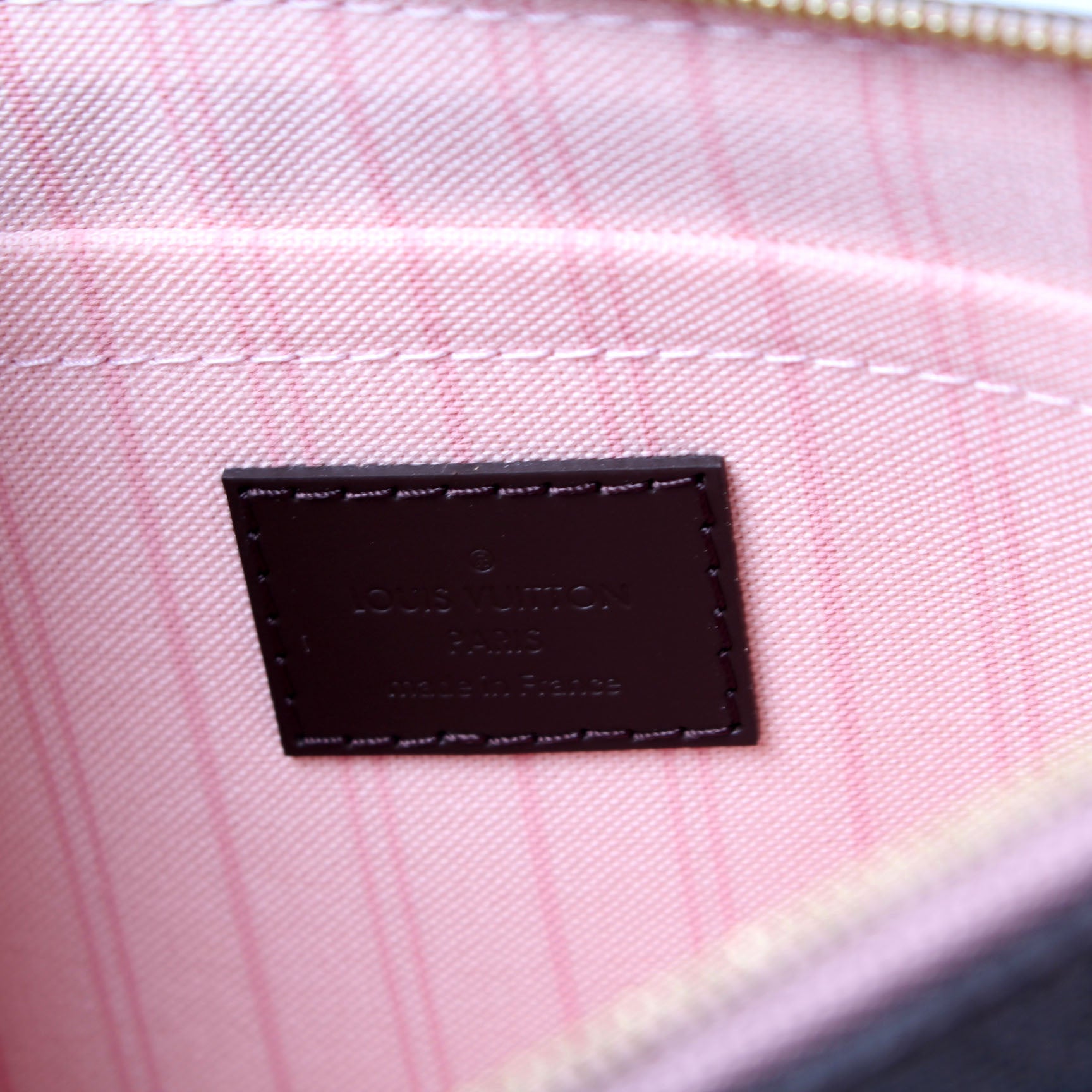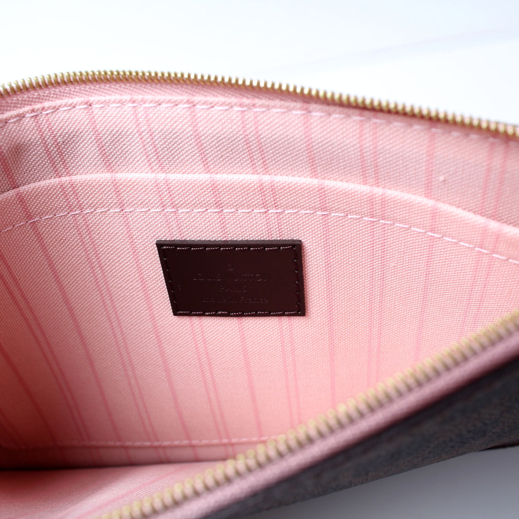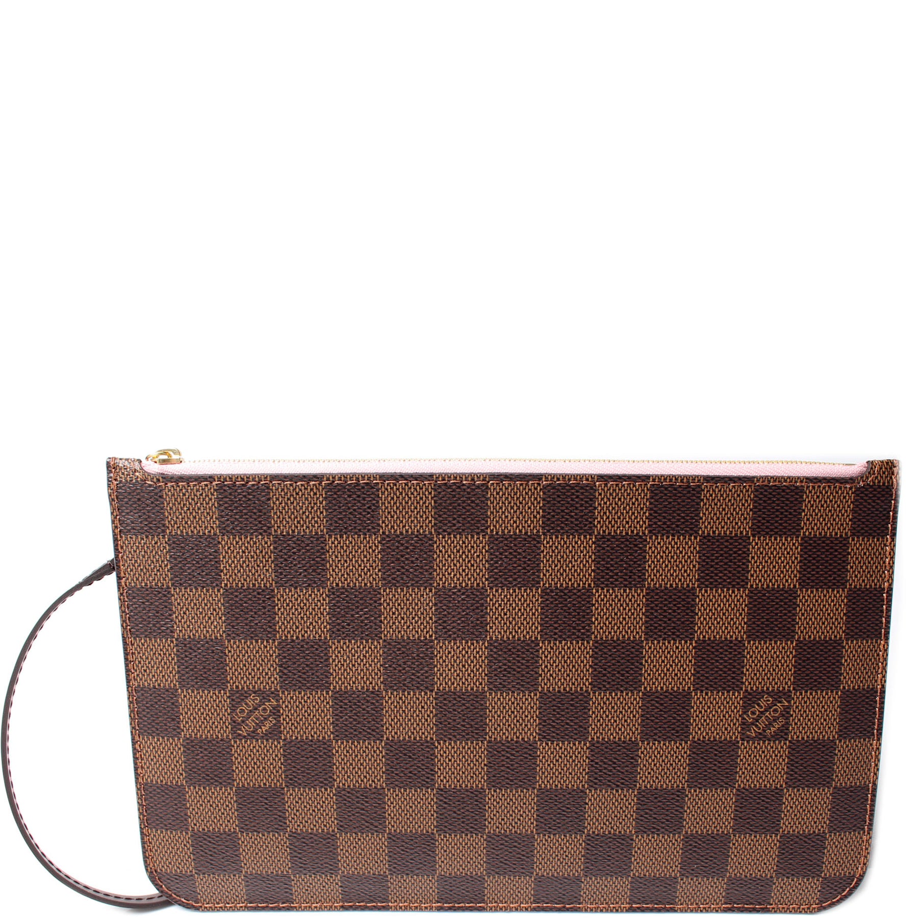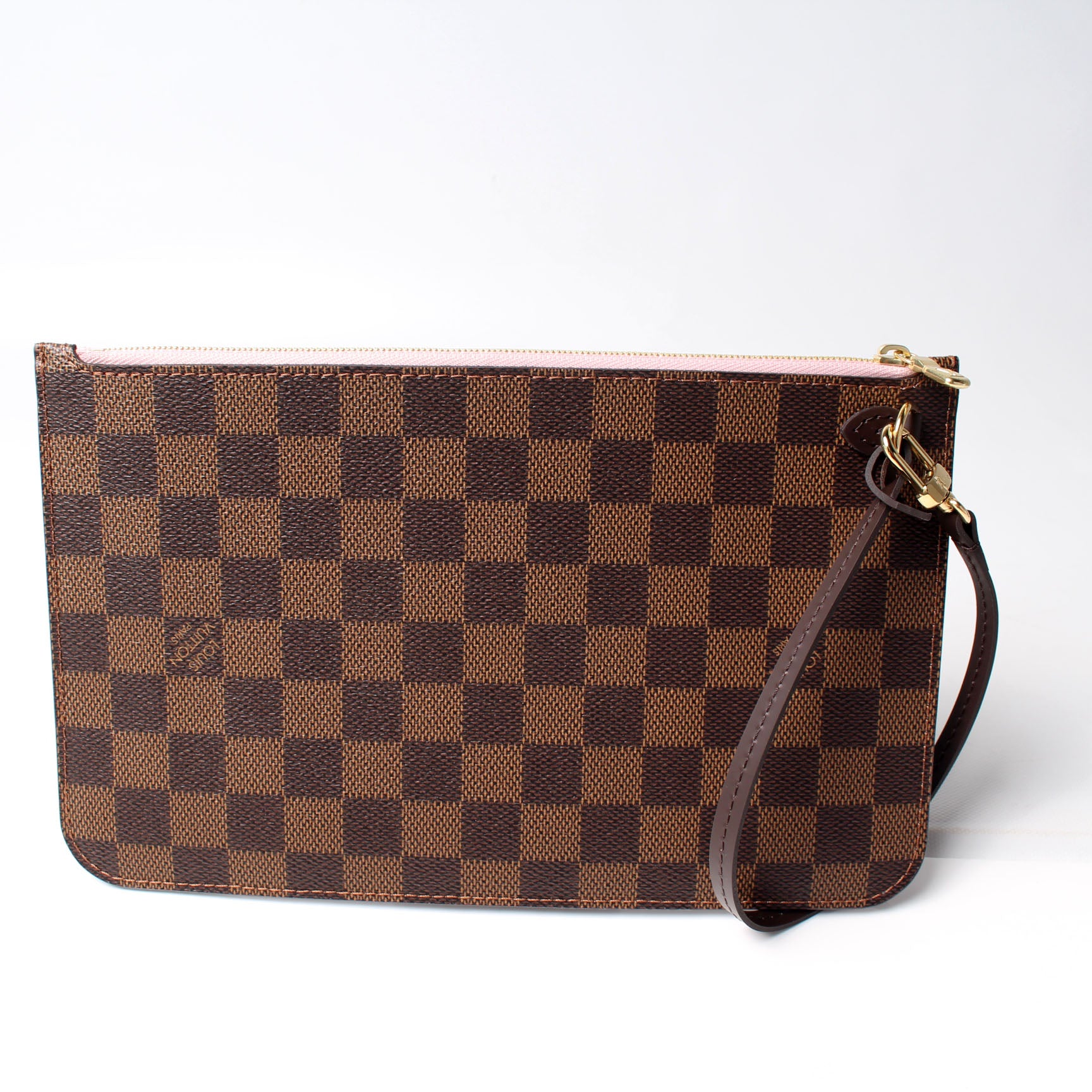This pre-owned Louis Vuitton Pochette Only Neverfull is guaranteed 100% authentic. The exterior is in the classic Louis Vuitton Damier Ebene coated canvas.