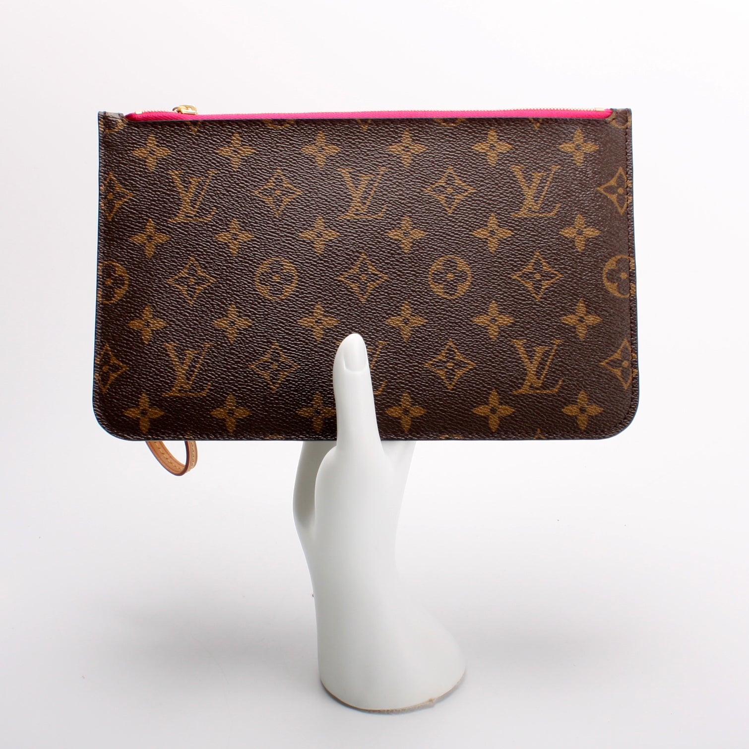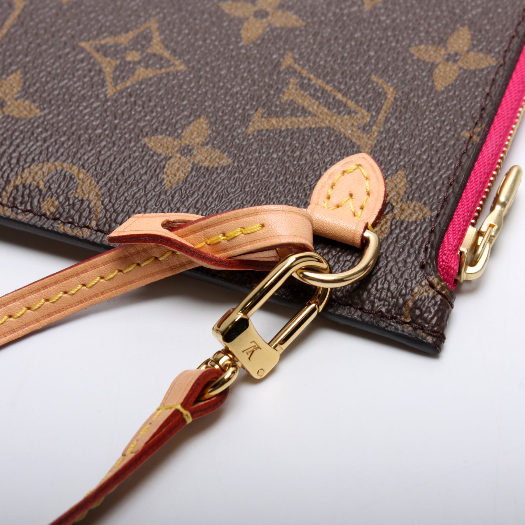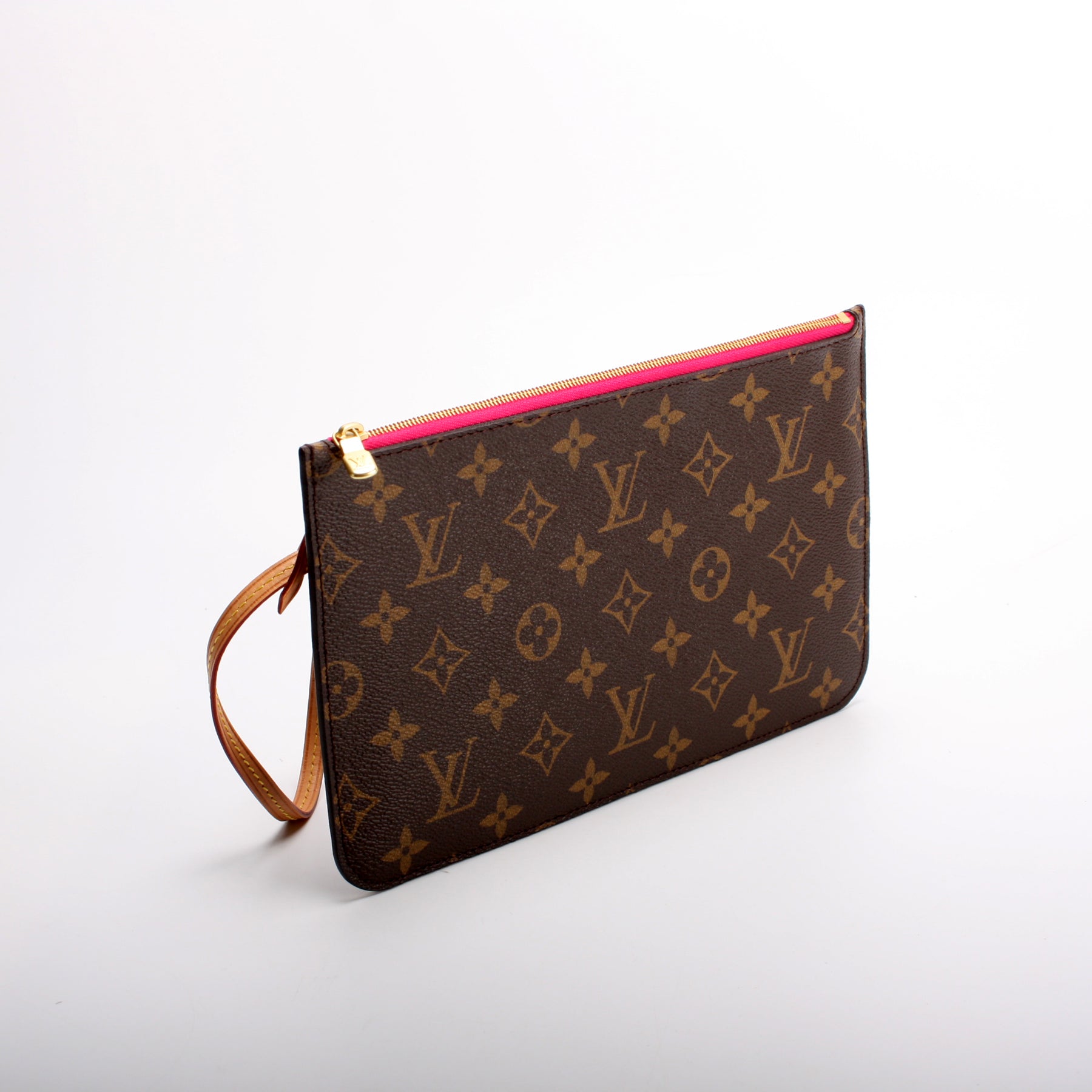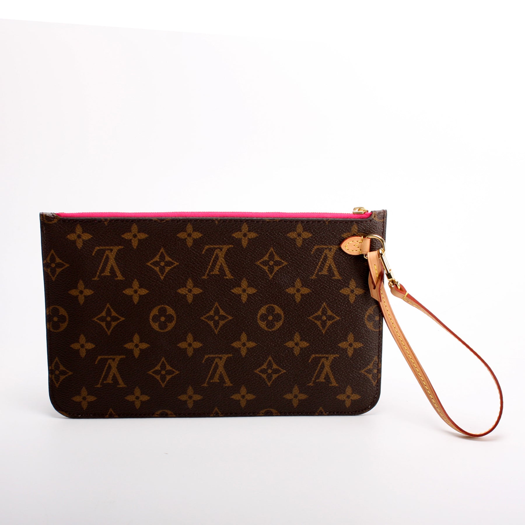This pre-owned Louis Vuitton Pochette Only Neverfull is guaranteed 100% authentic. The exterior is in the classic Louis Vuitton Monogram coated canvas.