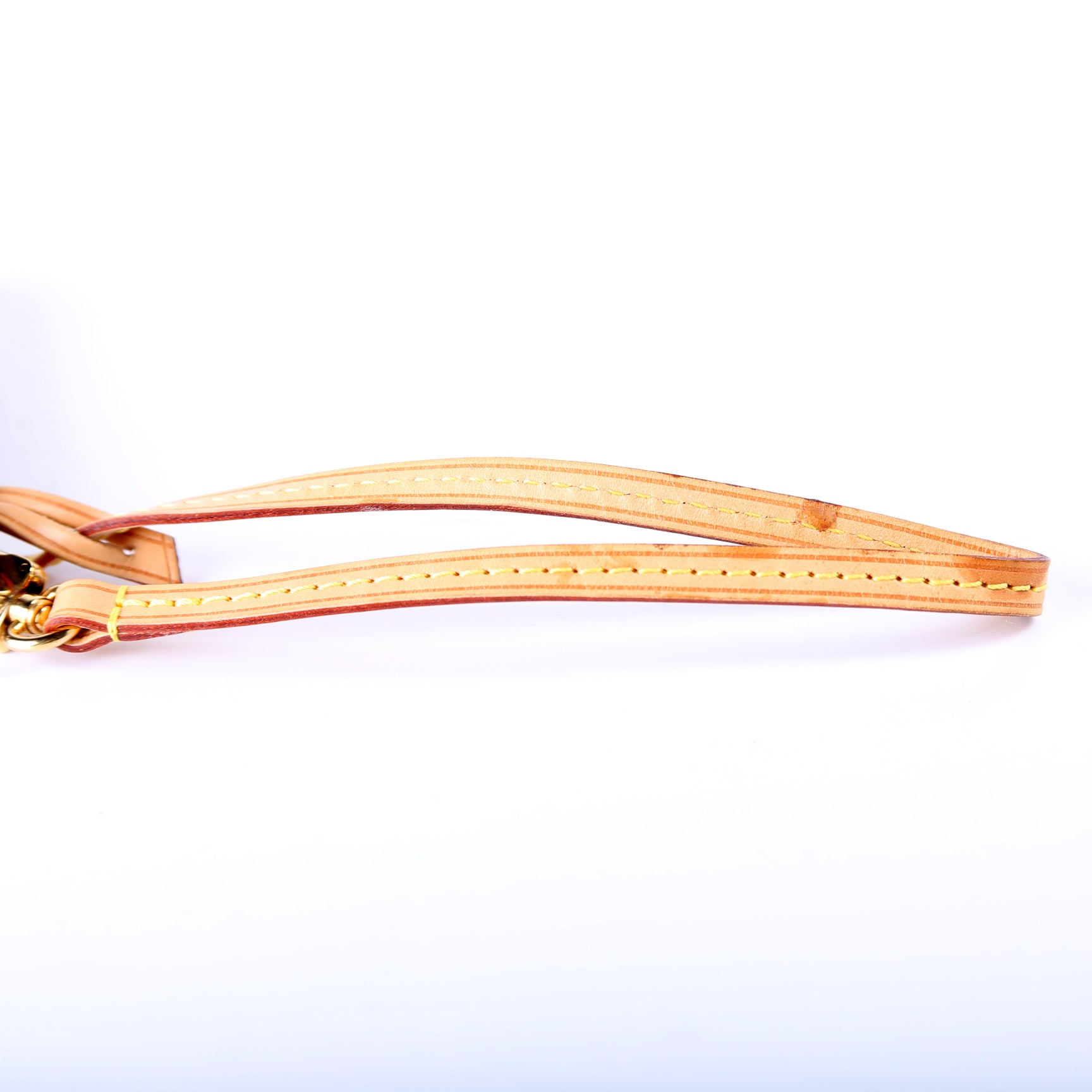 Handle: The leather handle shows minor wear and discoloration.