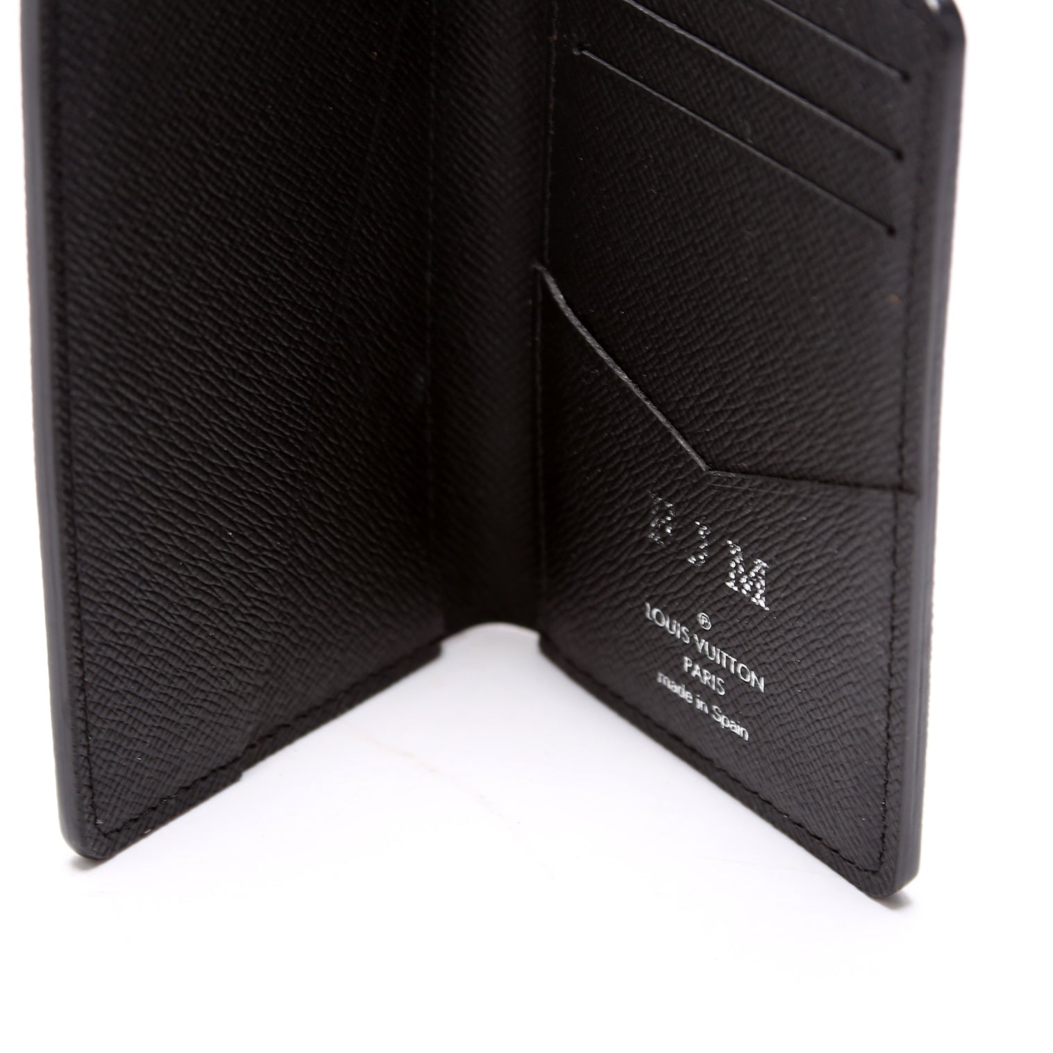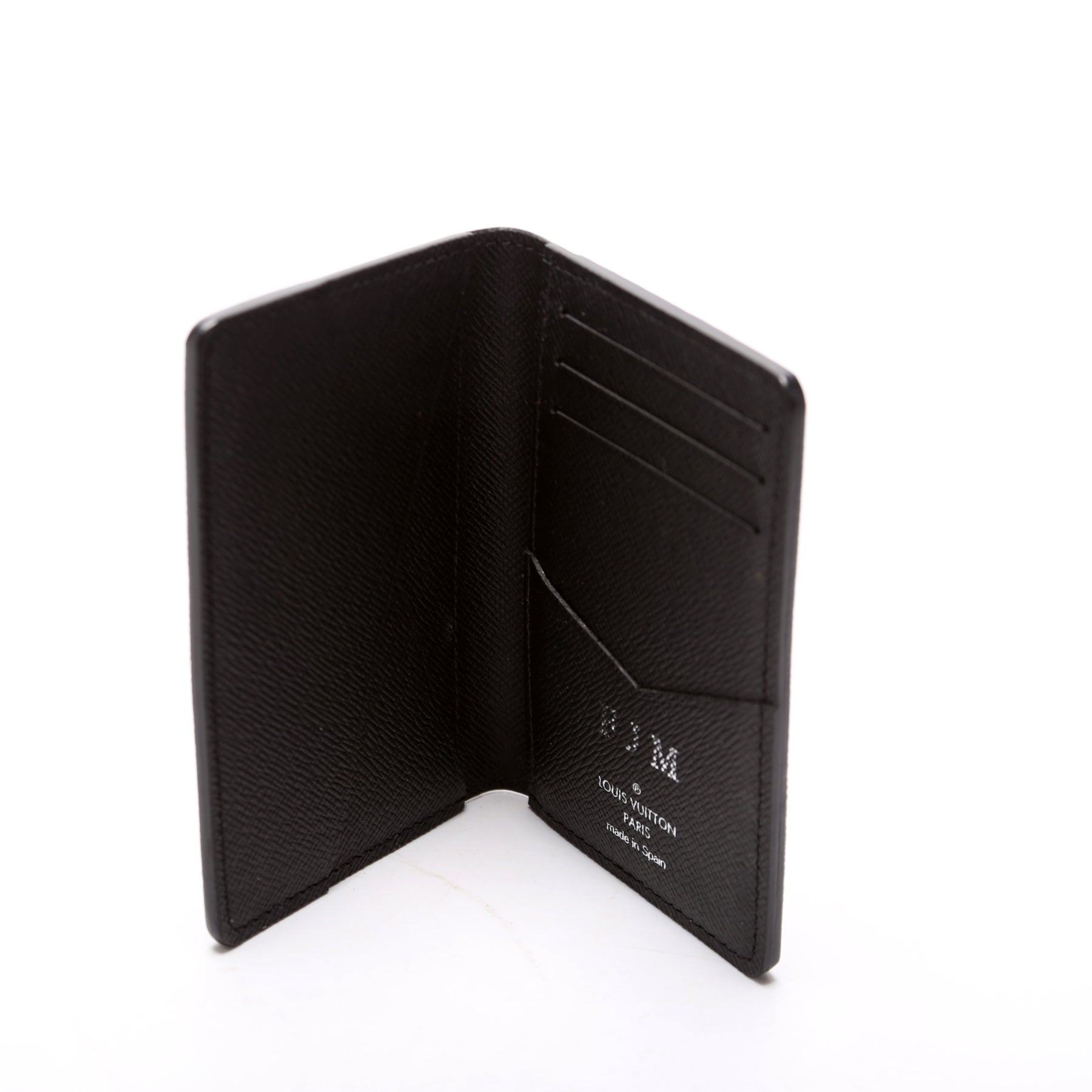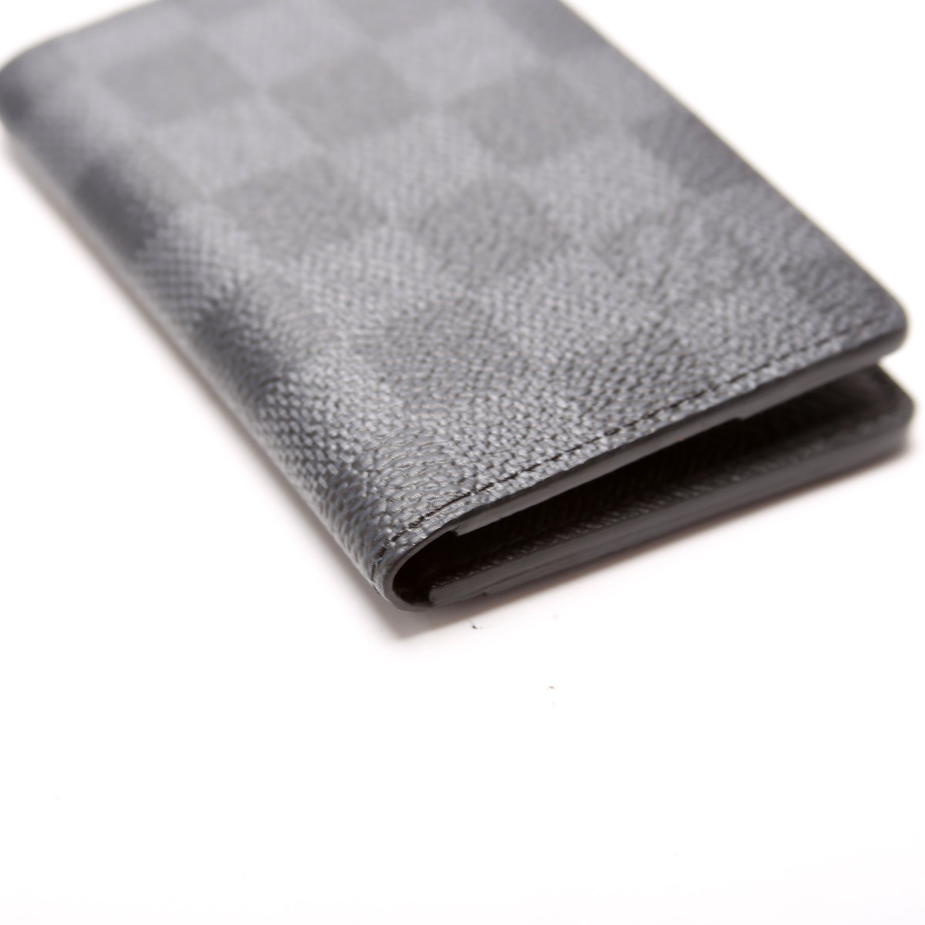 This pre-owned Louis Vuitton Pocket Organizer NM is guaranteed 100% authentic. The exterior is in the classic Louis Vuitton Damier Graphite coated canvas.