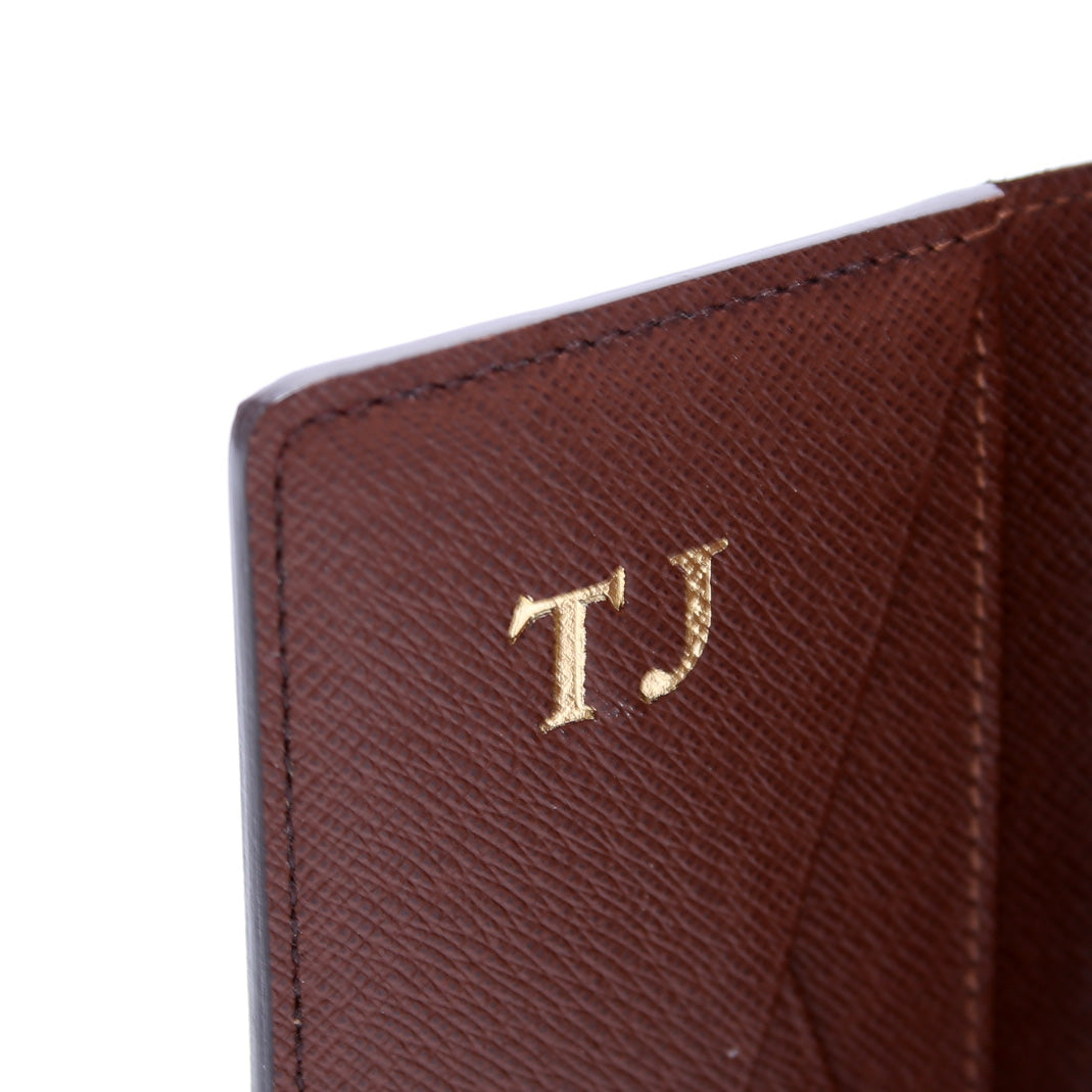 Interior: The interior is clean and free of rips or tears. The interior features eight card slots. The interior has embossed initials.