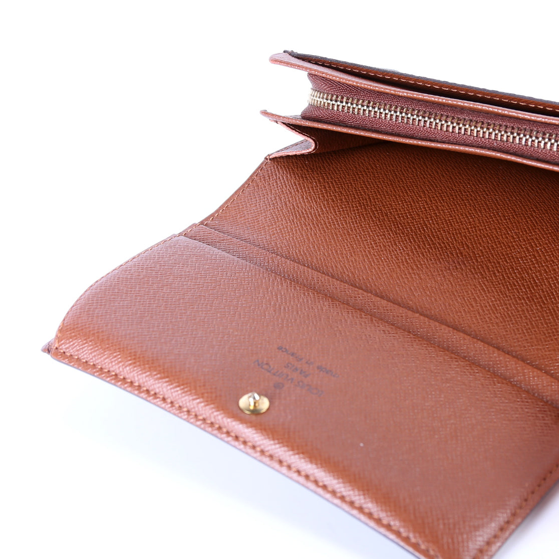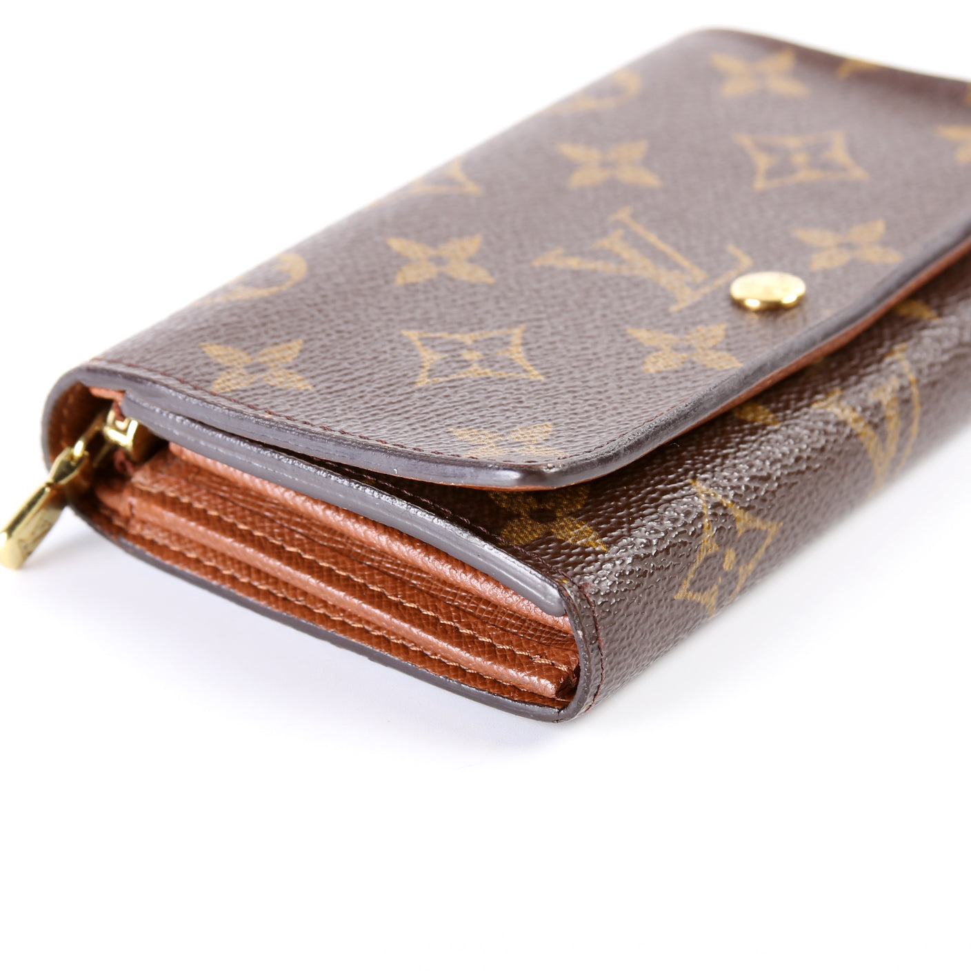 This pre-owned Louis Vuitton Porte Monnaie Billiets is guaranteed 100% authentic. The exterior is in the classic Louis Vuitton Monogram coated canvas.