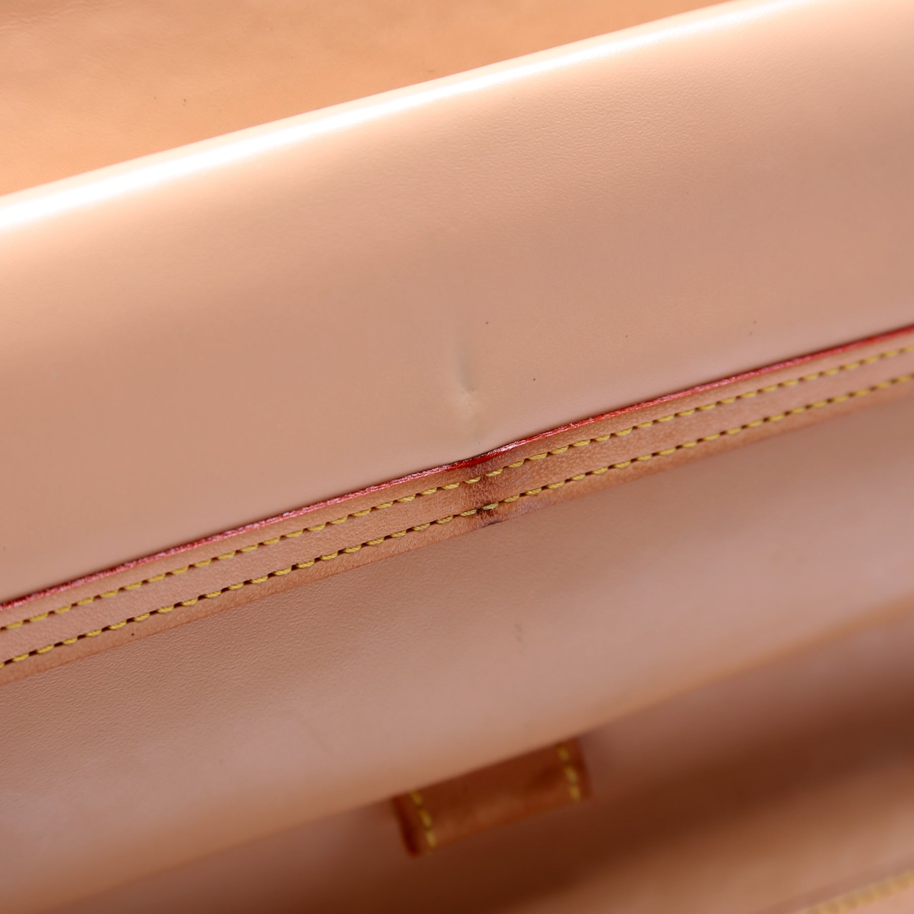 Exterior: The exterior canvas is free of any cracking. There is minor rubbing throughout. The leather trim shows wear and discoloration.