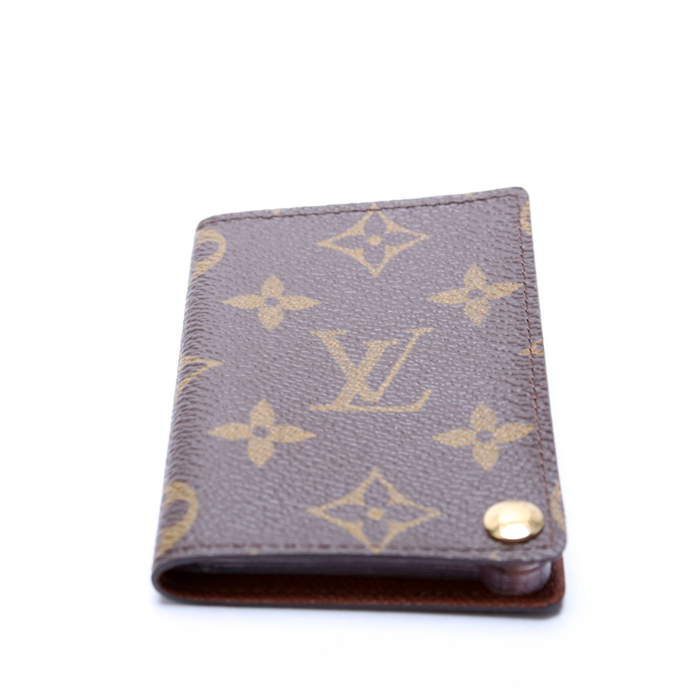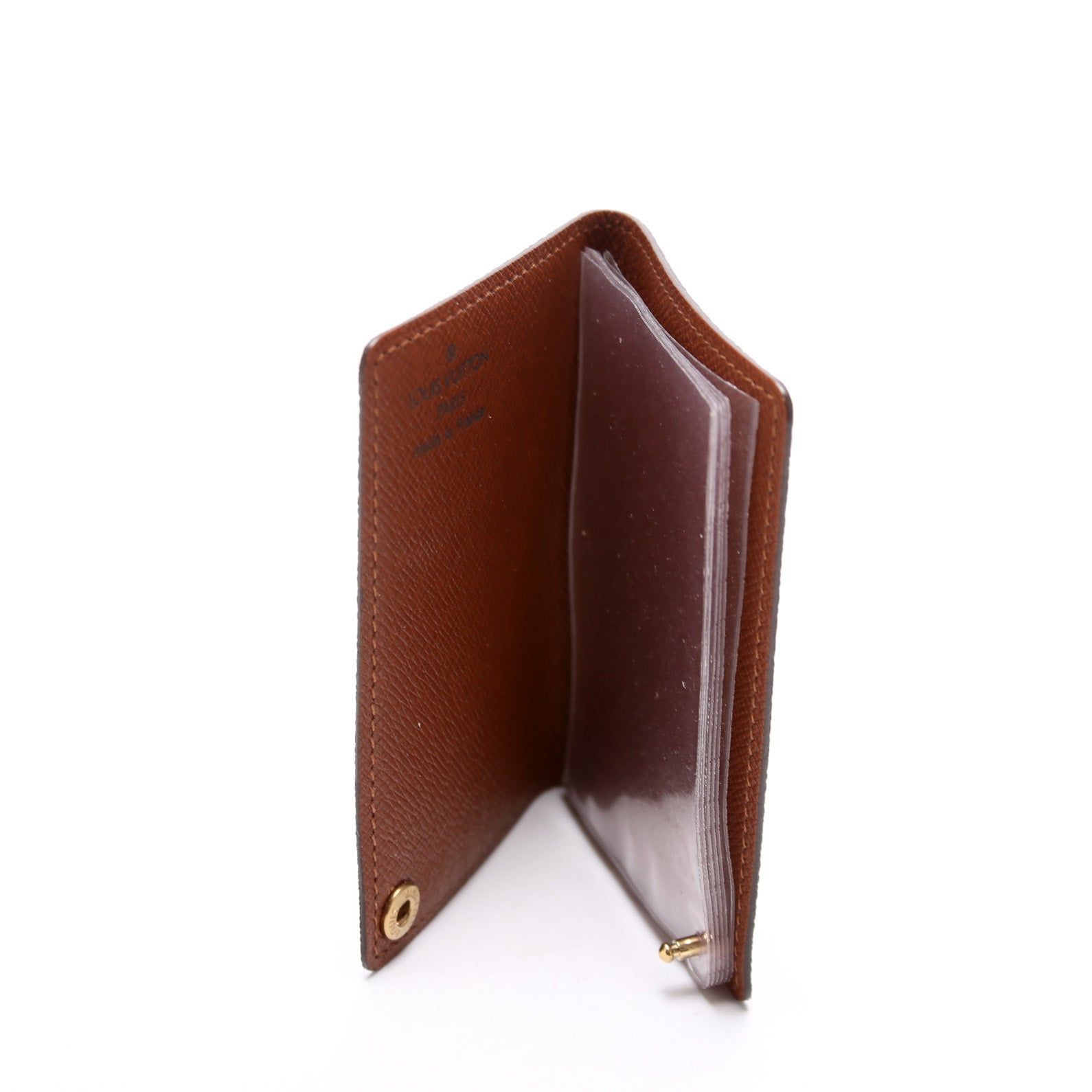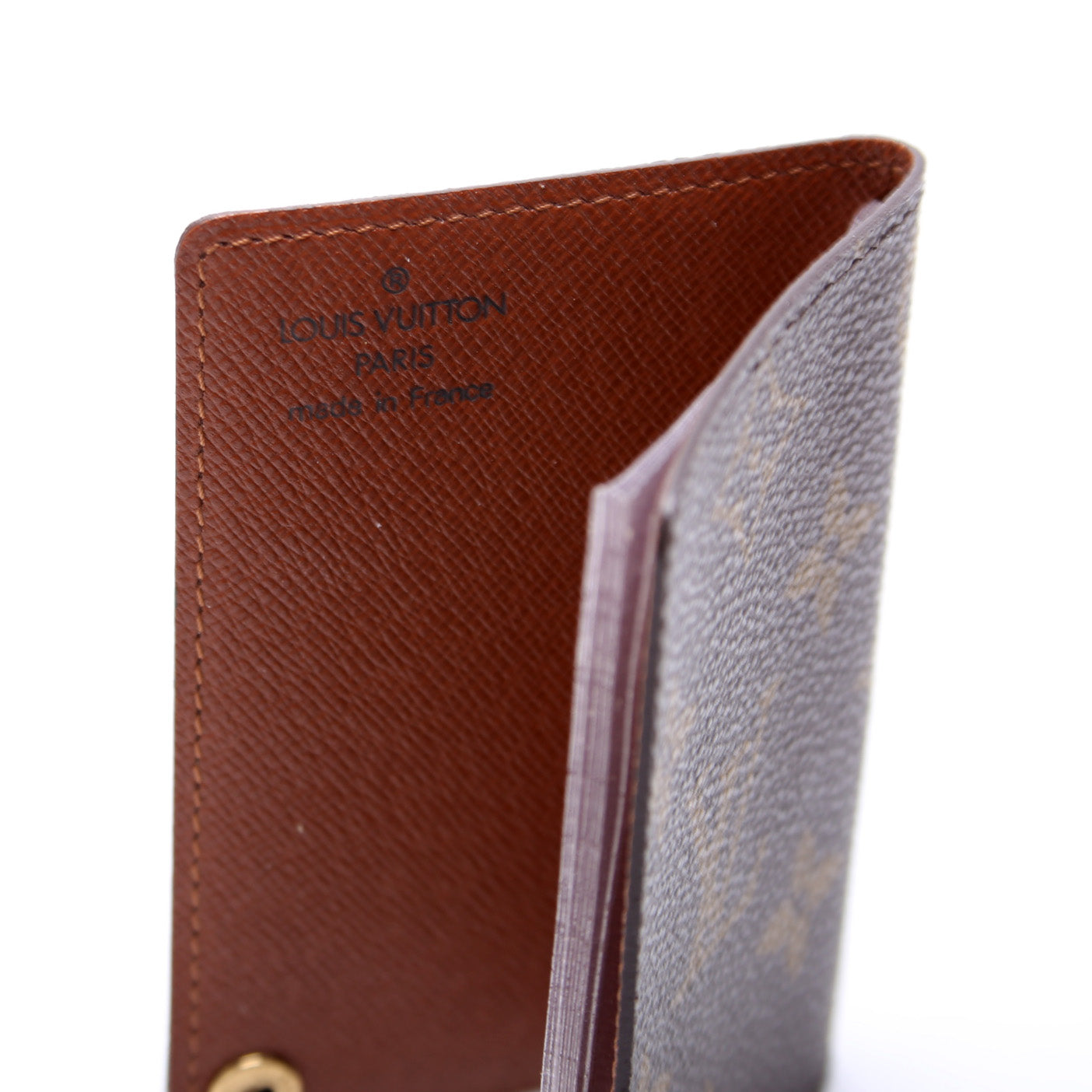 This pre-owned Louis Vuitton Pression Card Holder is guaranteed 100% authentic. The exterior is in the classic Louis Vuitton Monogram coated canvas.