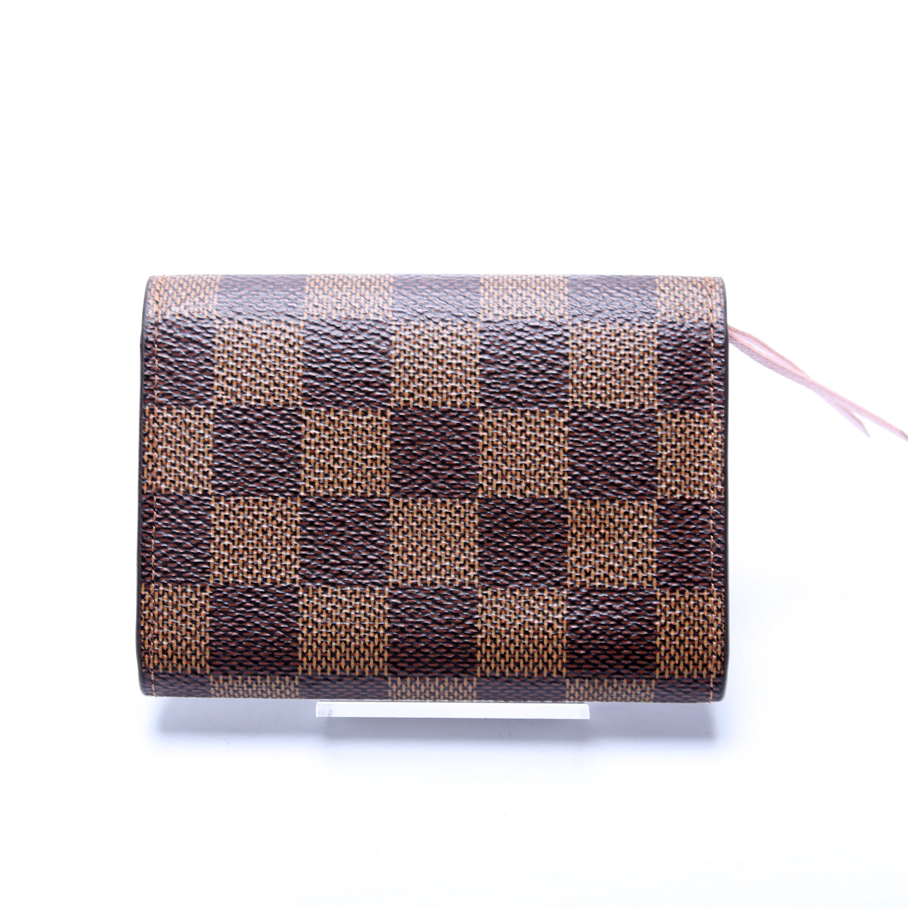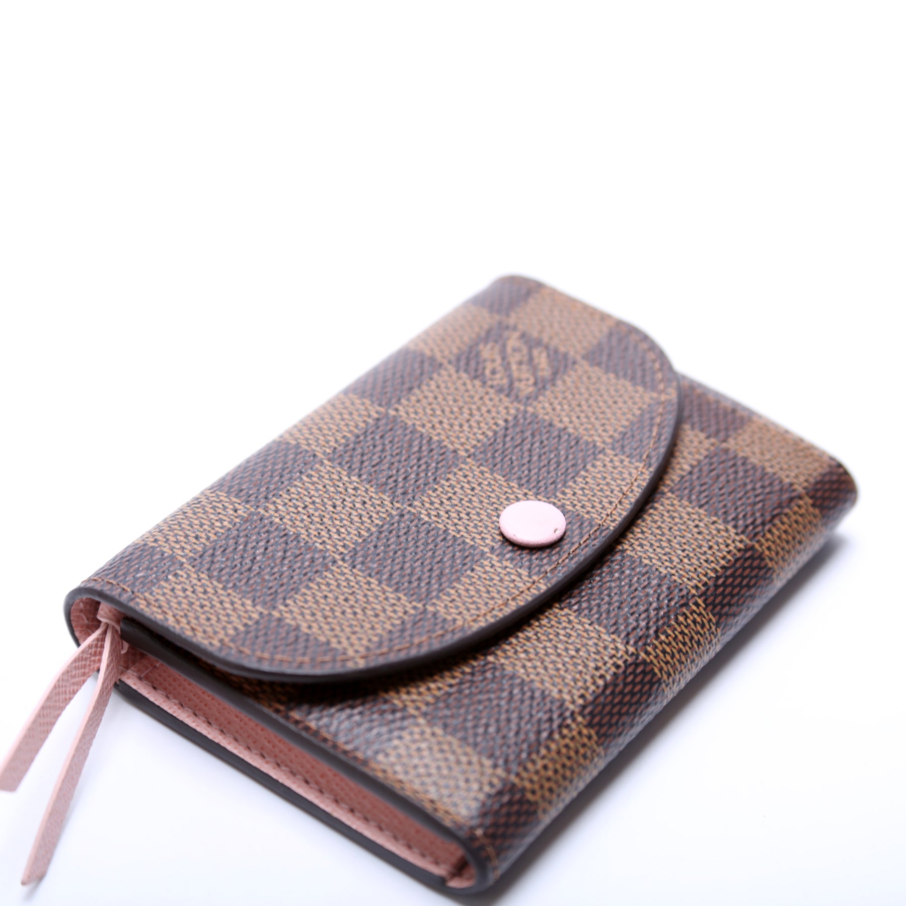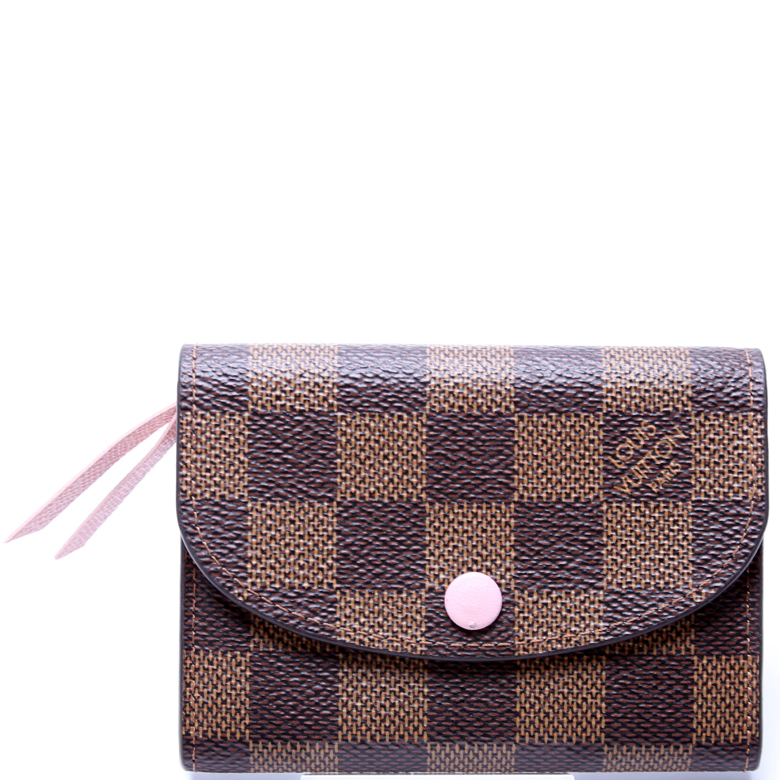 This pre-owned Louis Vuitton Rosalie Coin Purse is guaranteed 100% authentic. The exterior is in the classic Louis Vuitton Damier Ebene coated canvas.