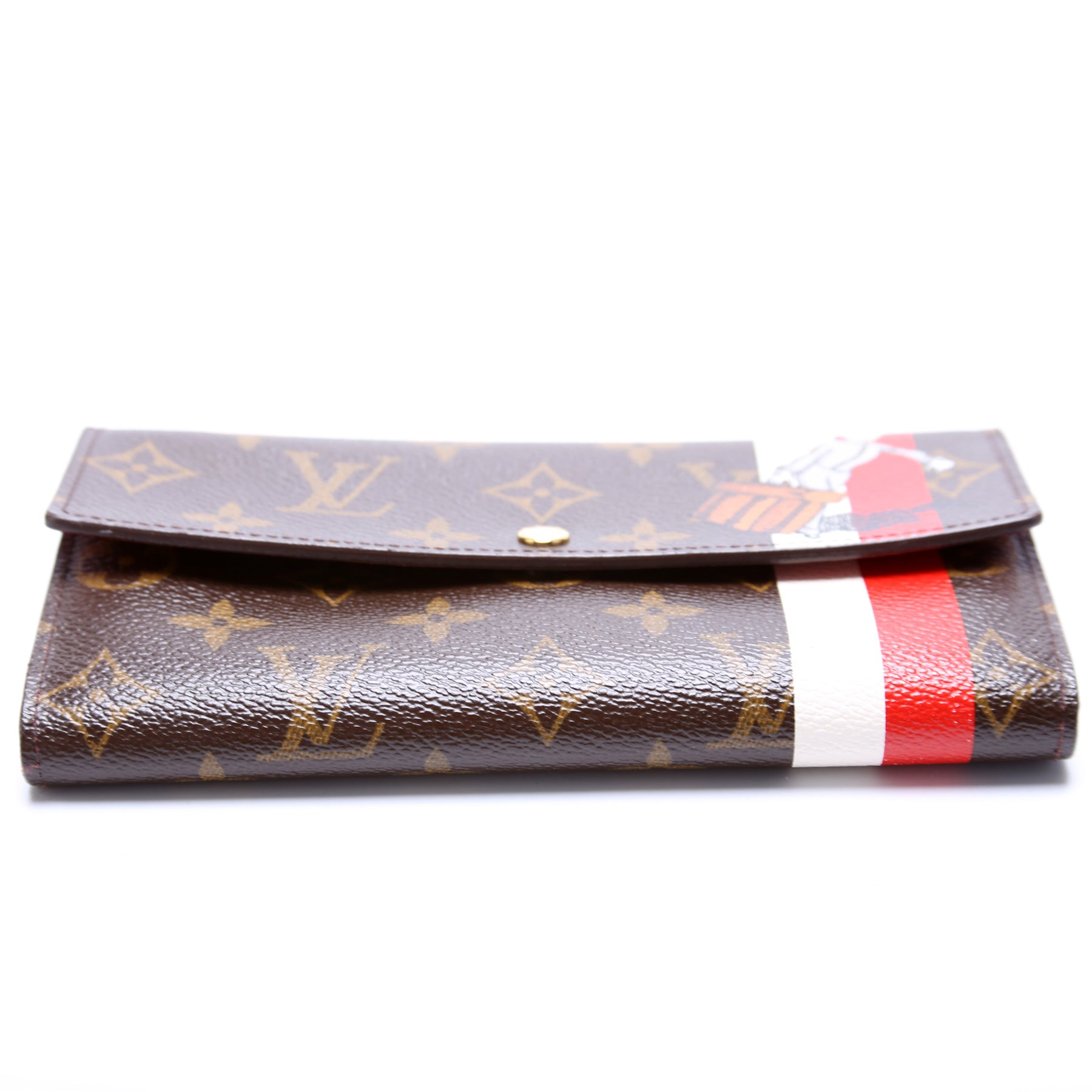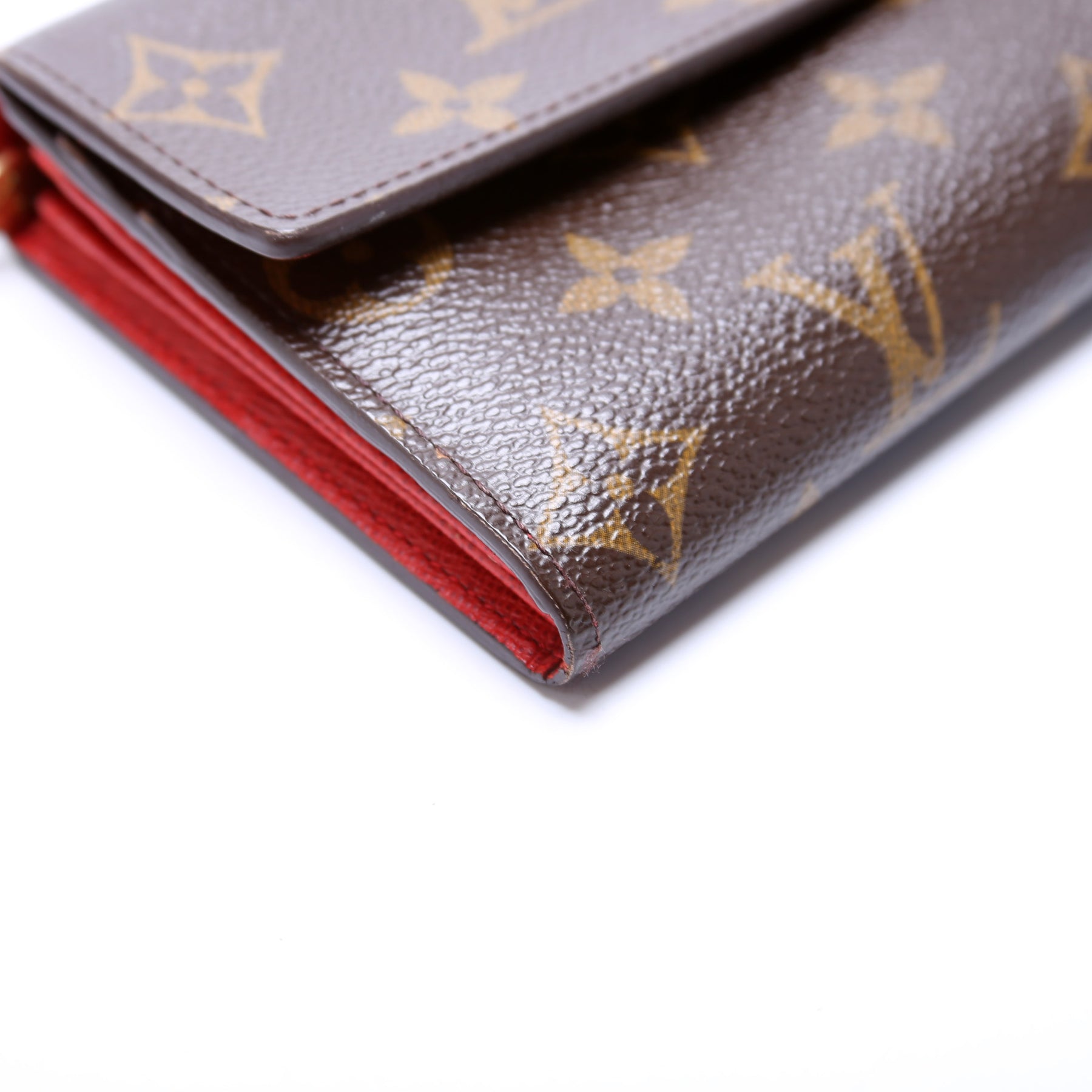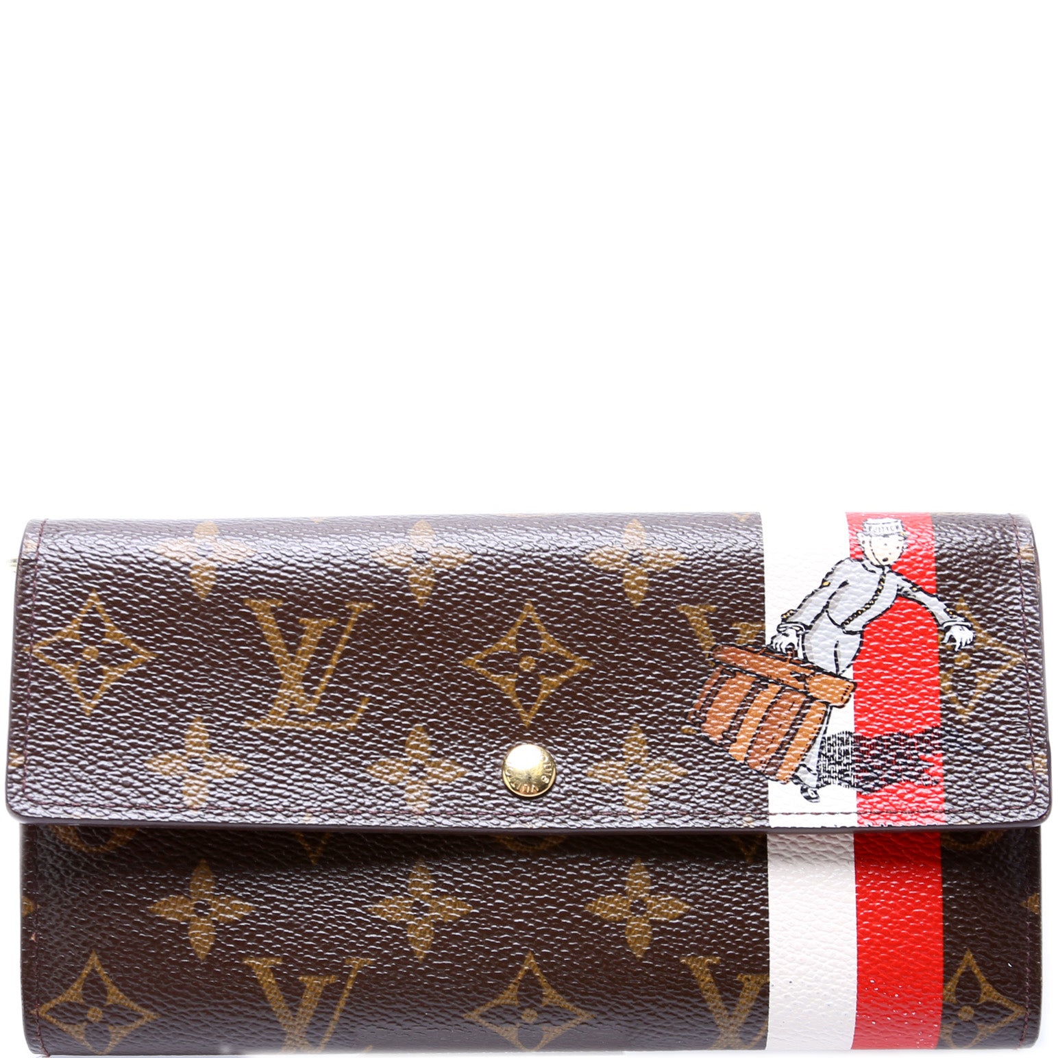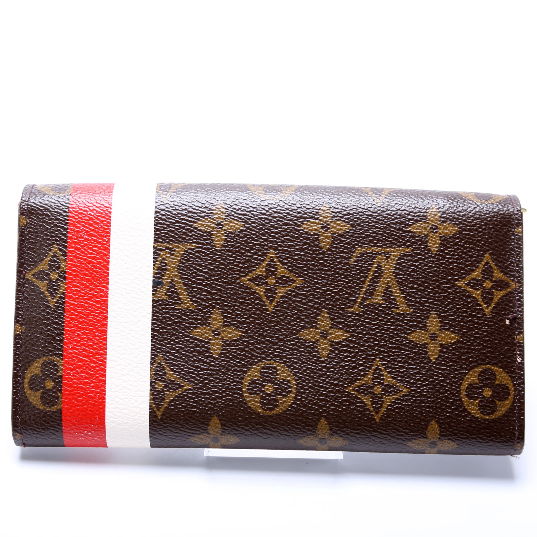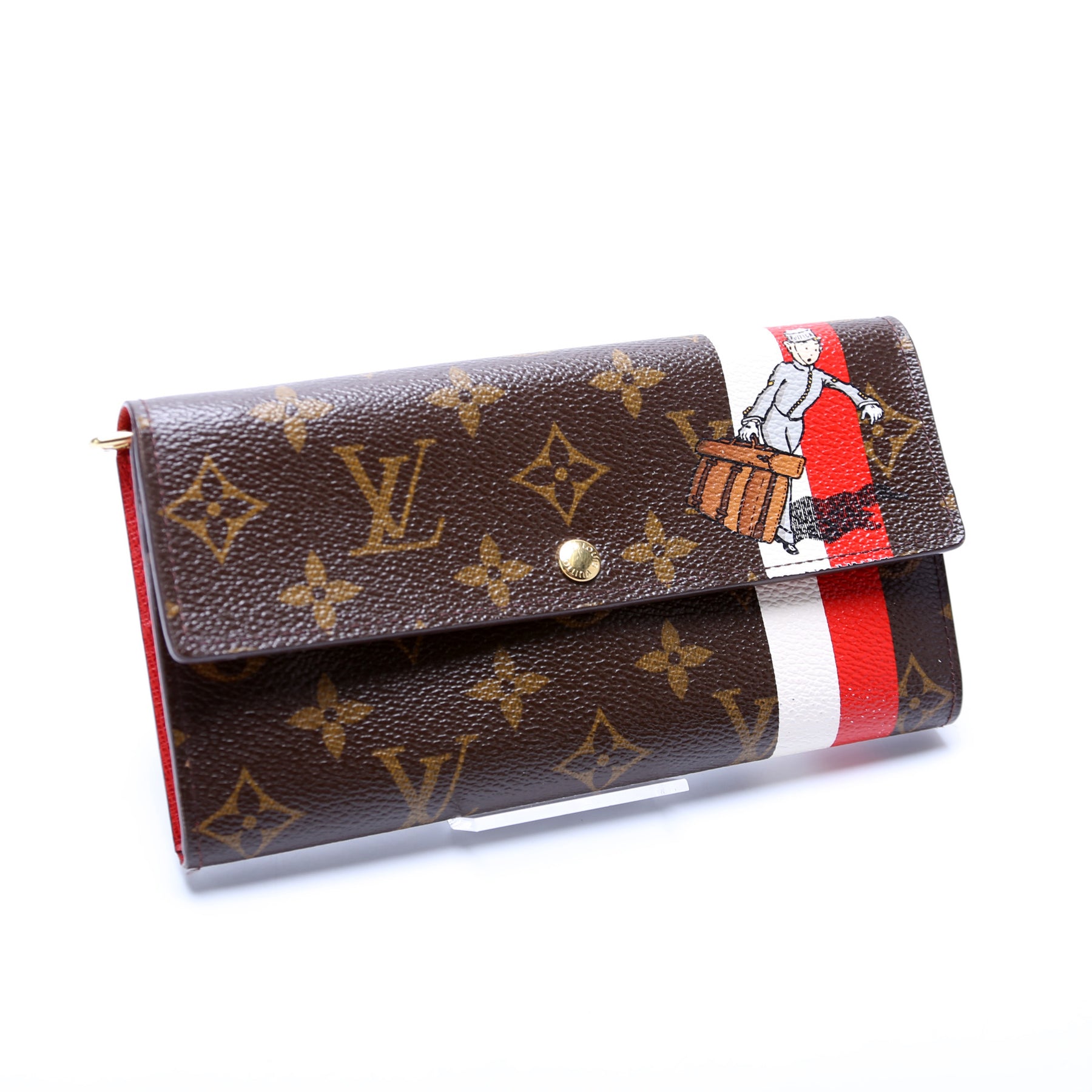 This pre-owned Louis Vuitton Sarah Wallet Bell Hop is guaranteed 100% authentic. The exterior is in the classic Louis Vuitton Monogram coated canvas.