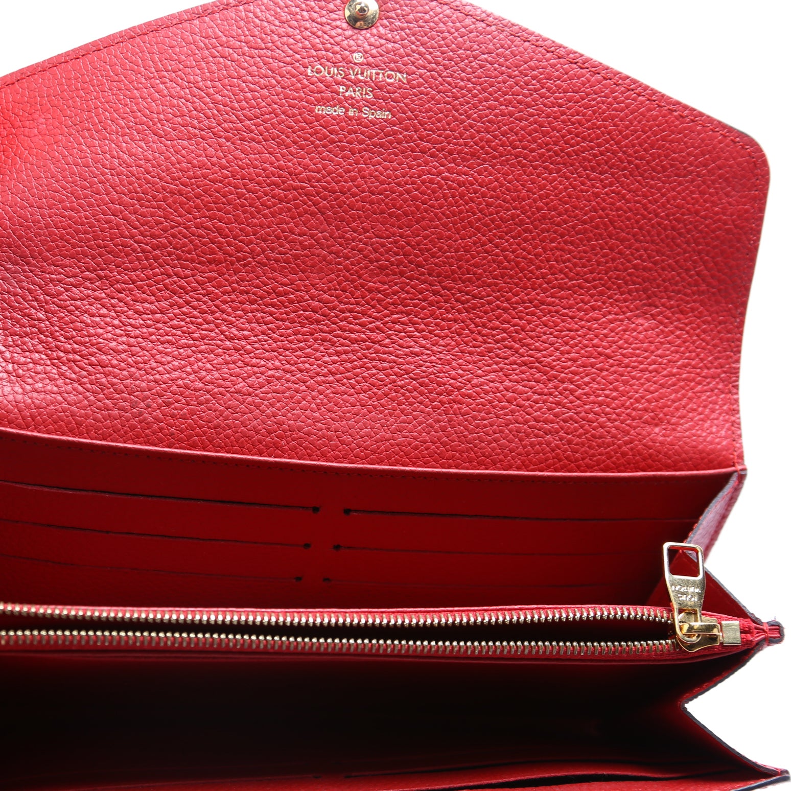This pre-owned Louis Vuitton Sarah Wallet is guaranteed 100% authentic. The exterior is in the classic Louis Vuitton Empreinte leather.