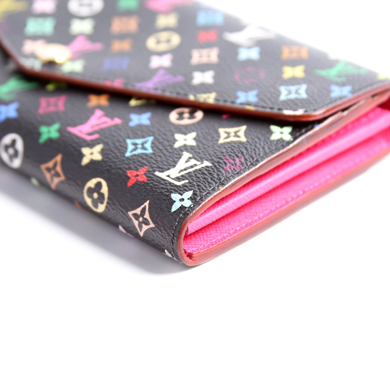 This pre-owned Louis Vuitton Sarah Wallet NM is guaranteed 100% authentic. The exterior is in the classic Louis Vuitton Multicolor Monogram coated canvas.
